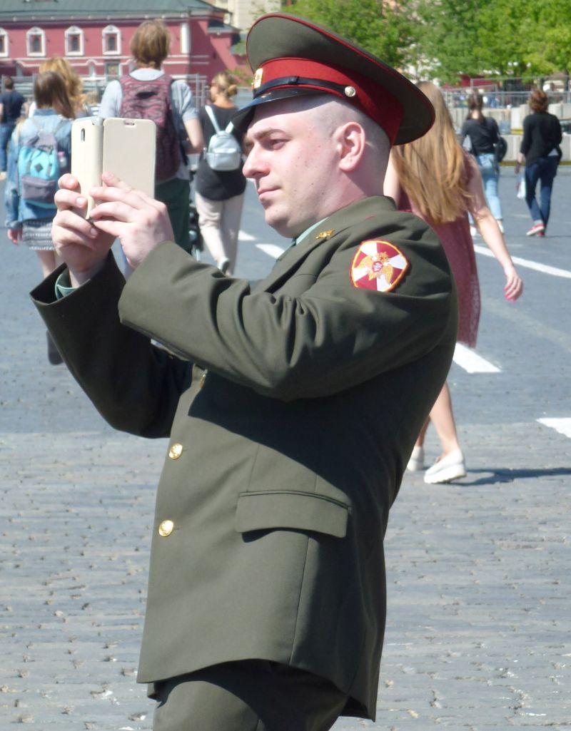 Stefan konnte bei seiner Mittagspause in einem Café am TV ein wenig von der Parade in Moskau sehen, zusammen mit vielen anderen Gästen im Lokal.