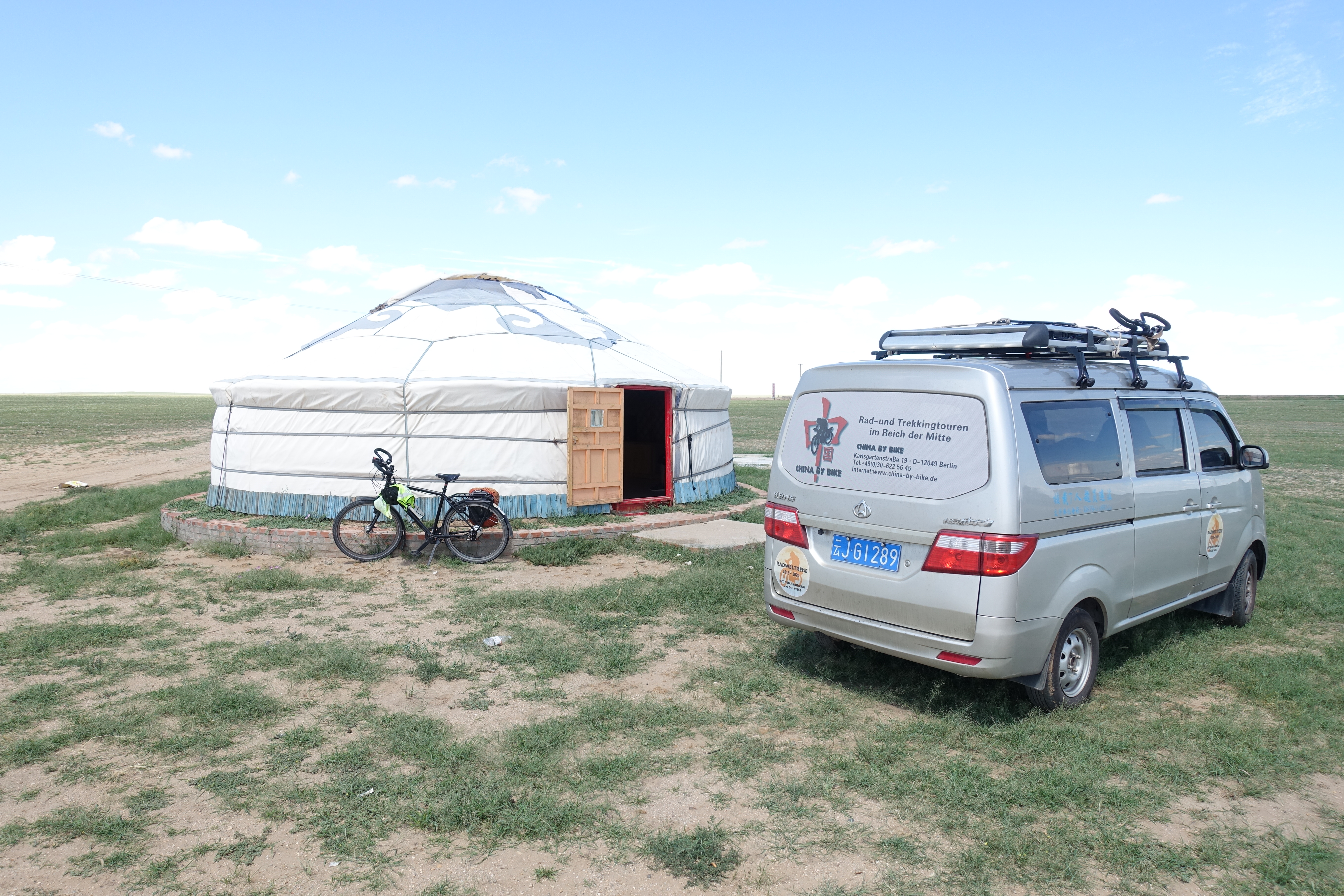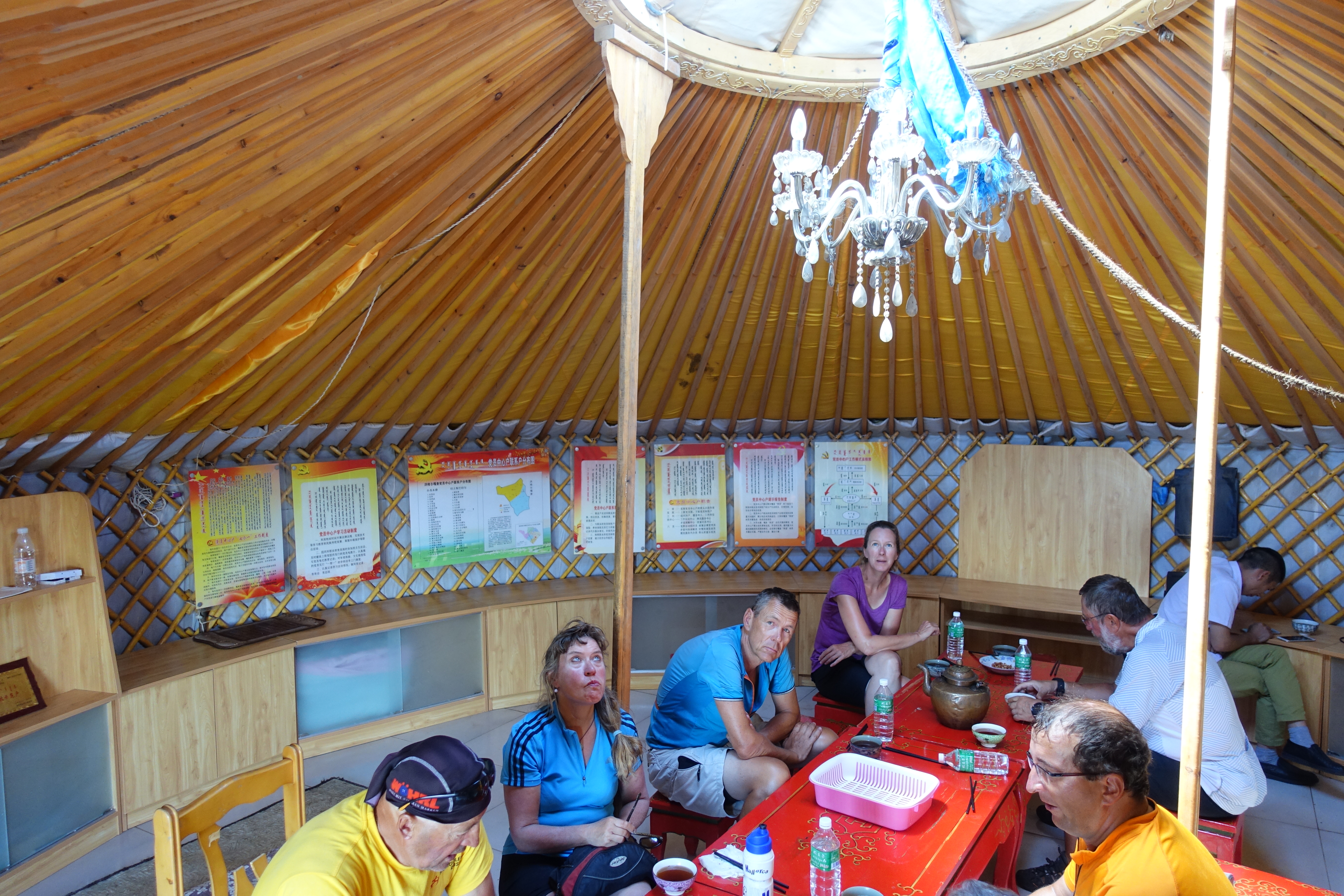 Am heutigen 137. Reisetag (15.08.2018) passierten wir hinter dem Stadtgebiet gleich mehrere Händler, die kleine Schlagzeuge aus Plastik anboten. In den Dörfern waren deutliche Zeichen der Landflucht zu erkennen und erst als wir mehrere Sonnenblumenfelder und Honighändler später die prunkvolle Einfahrt nach Jining (Teil der Großstadt Wulanchabu) passierten, spürten wir, dass unserer heutiges Ziel eindeutig eine größere Stadt ist. Da die Etappe nicht besonders lang war, stand uns der Nachmittag zur freien Verfügung. Das Abendessen nahmen wir in einem urigen Restaurant in der Nebenstraße ein.