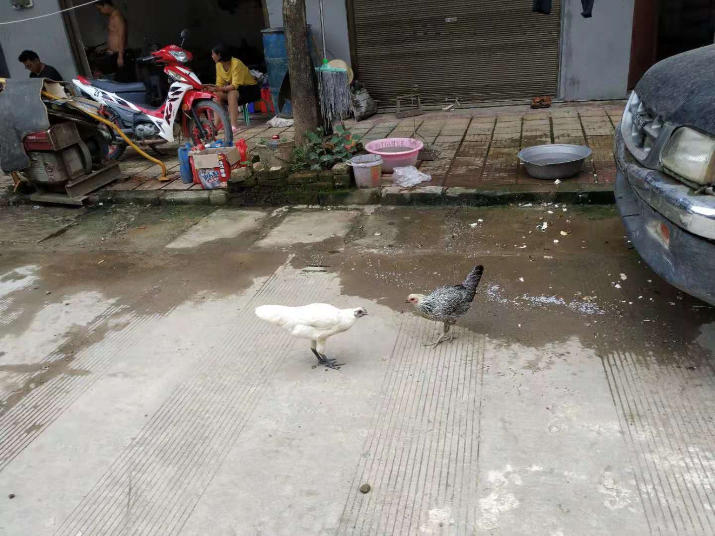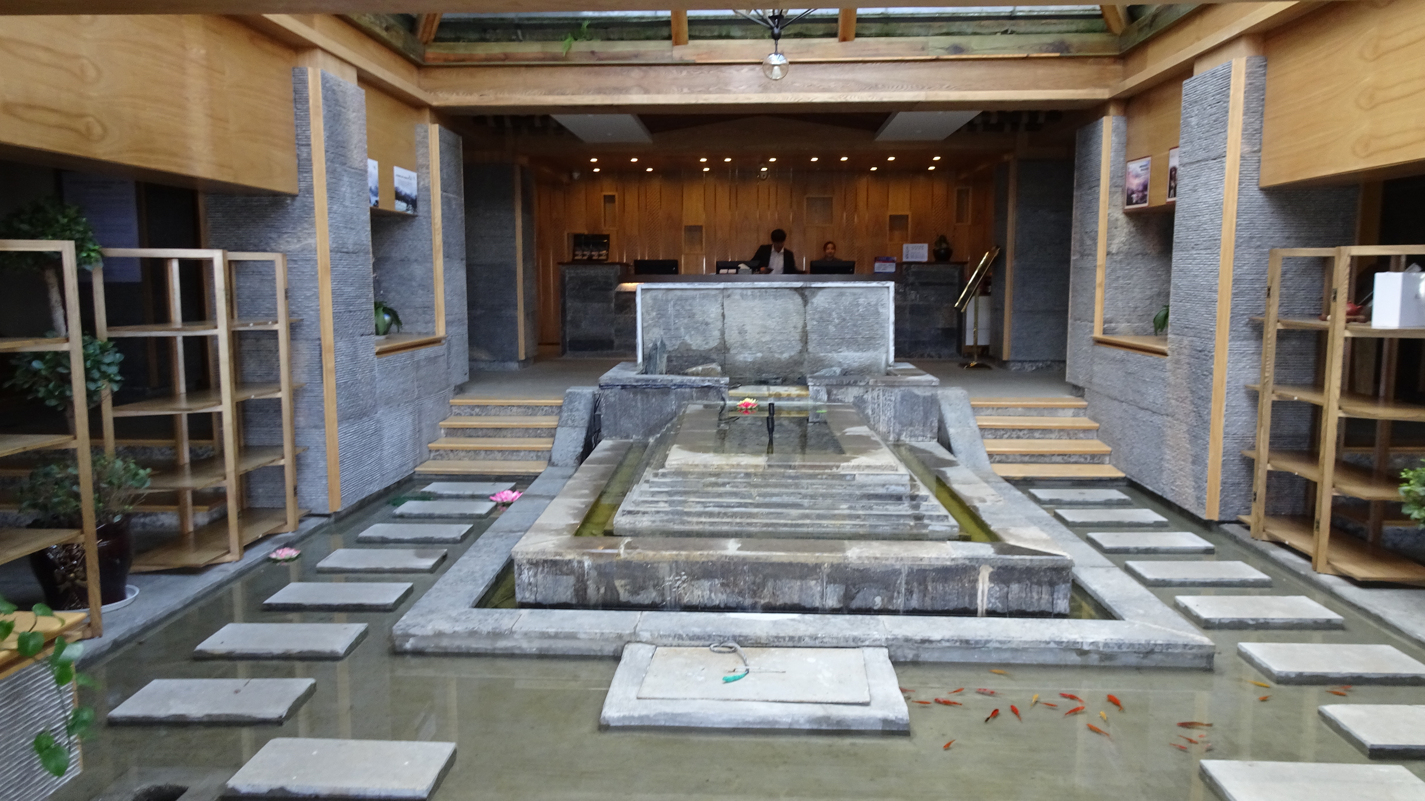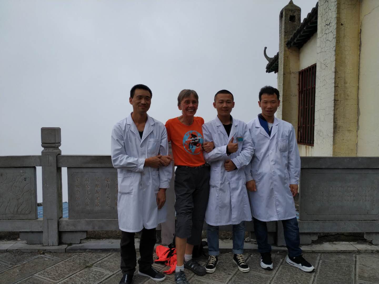 Erwacht vom Plätschern und Scheppern des starken Regens war eigentlich schon morgens klar, dass auch dieser Tag ein nasser werden würde. Dementsprechend wurde selbst unsere kleine, auf den späten Vormittag gelegte „Privattour“ für Peter und Hans, die am ersten Tag nicht mitkommen konnten, in der Hoffnung auf nachlassenden Wolkenguss um zwei Stunden verschoben. Der Himmel aber blieb uns ungnädig und so entschieden wir uns dafür, Xiao Leis Angebot, den kleinen Trip im Auto zu fahren, dankend anzunehmen und ließen uns im kalten Nass brummend übers Huppelpflaster fahren. (Man erinnere sich: Dasselbe Huppelpflaster, das Ingemarie und co. auf dem Fahrrad bis in die Haarwurzeln durchdrang! „Je weiter wir kommen, umso weniger bereue ich, diese Strecke nicht mit dem Fahrrad gefahren zu sein“, kommentierte Peter ganz passend.)