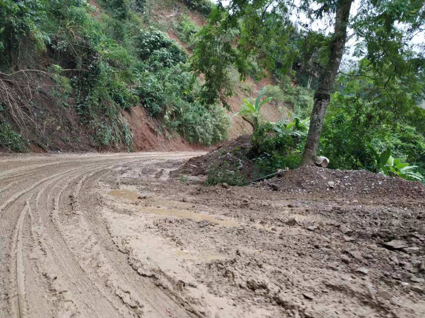 Später dann machten wir uns mit Transporthilfe eines örtlichen Minibusfahrers auf den Weg in den nächstgelegenen Ort, wo ich ein für einige etwas schmerzhaftes (da ziemlich chililastiges) Essen bestellt hatte. Meiner Meinung nach köstlich, aber ab Morgen dann wieder etwas mund- und verdauungsfreundlicher! Unser interessantes Gericht heute wohl das Innere des Bananenbaumstammes. Morgen geht es dann wohl auskuriert auf den Weg nach Lüchun. Hoffentlich regenfrei!