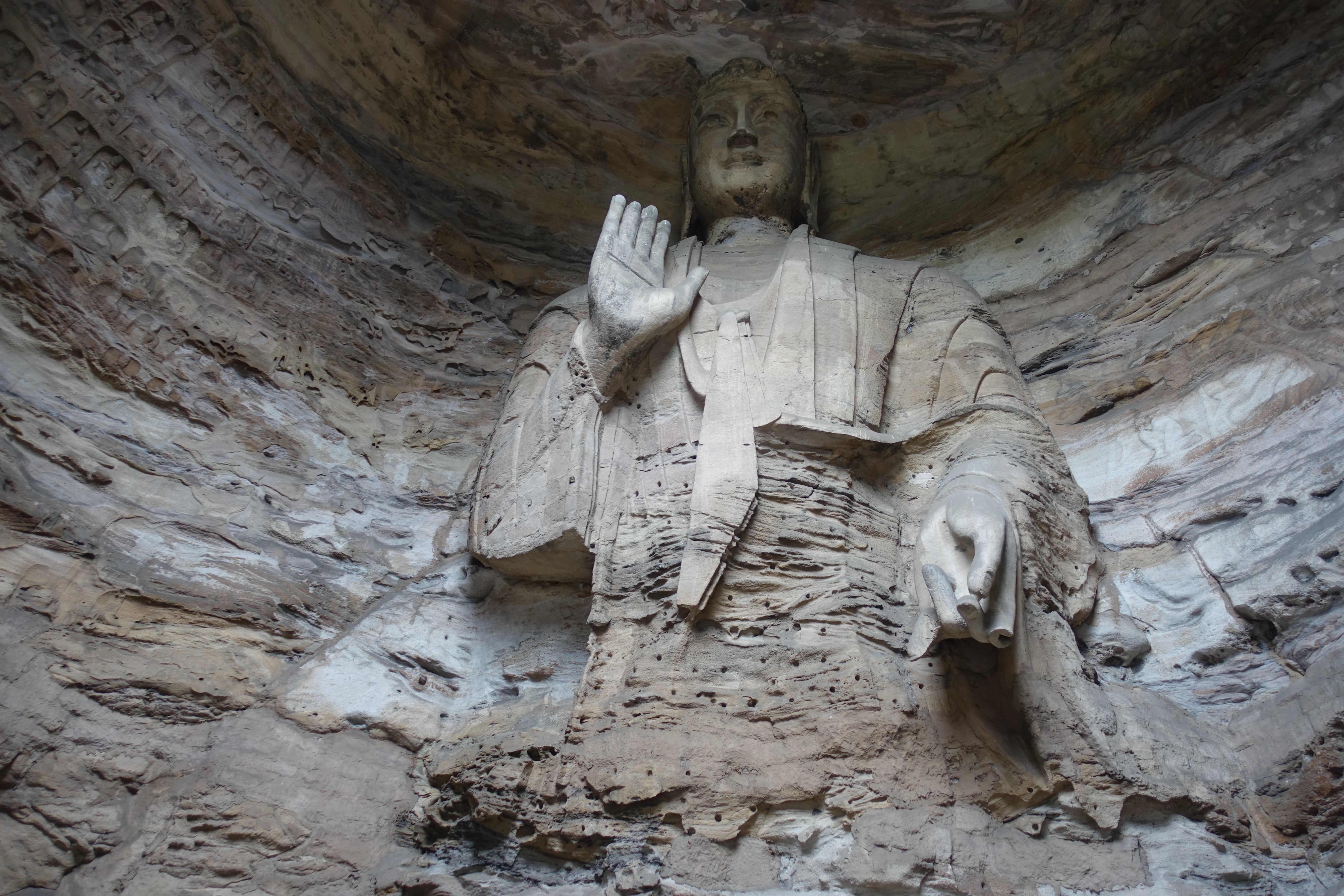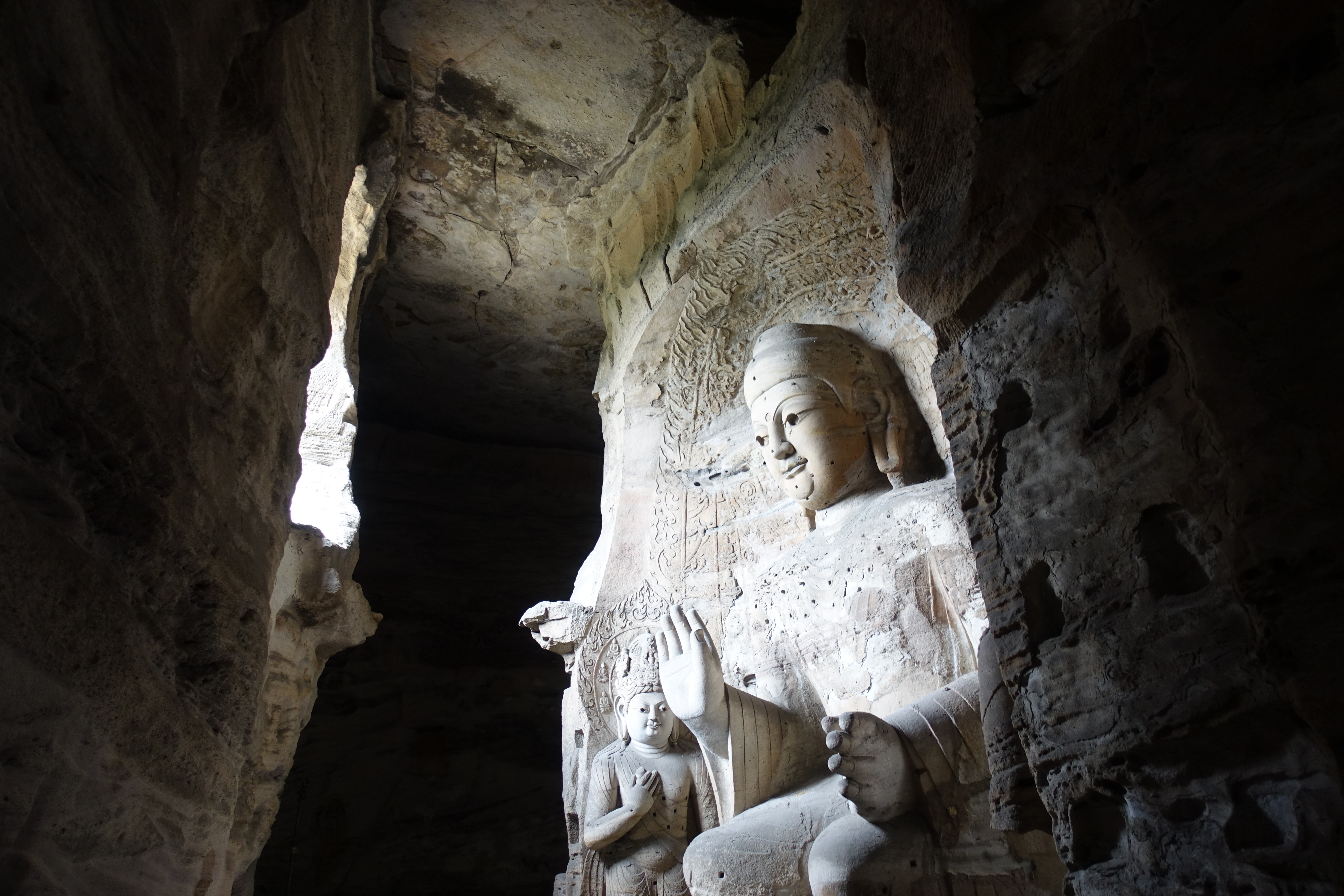 Wir sind in der kleinen Stadt Taihuai, die aus dem gleichnamigen Dorf enstanden ist. Das Dorf wurde 2008–13 abgebrochen und verlegt, um die innere Welterbestätte (der Tempelanlagen) von Siedlungen frei zu machen. So entstand eine Art Nationalpark. Den entschädigten Bewohnern wurden 23 km entfernt neue Häuser zur Verfügung gestellt.
