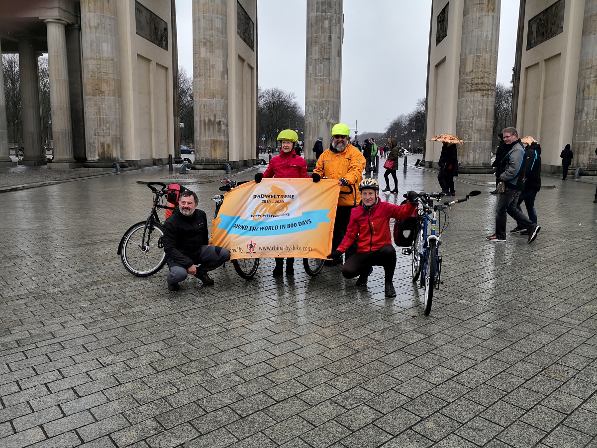 Trotzdem hatten sich neben den offiziellen Radweltreiseradlern noch acht Leute gefunden, die uns begleitet haben. Ein Stück aus Berlin hinaus, dort, wo die ostdeutsche Platte in Marzahner Hochhaus übergeht. Einige Mutige sogar bis Strausberg, wo wir das Eckcafé Kunze gestürmt und das Kuchenbuffet leer gefressen haben, obwohl wir uns eigentlich nur aufwärmen wollten.