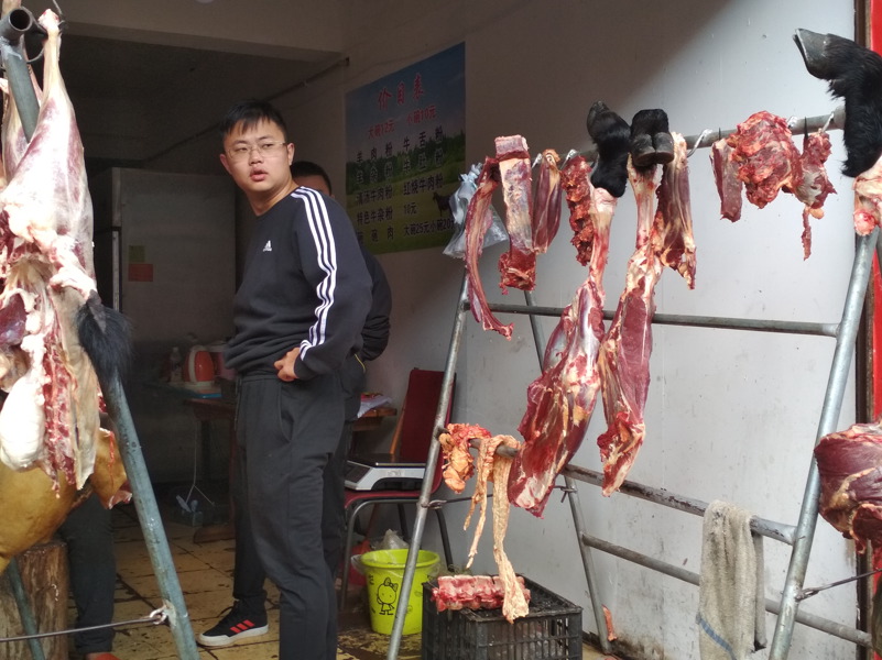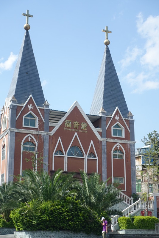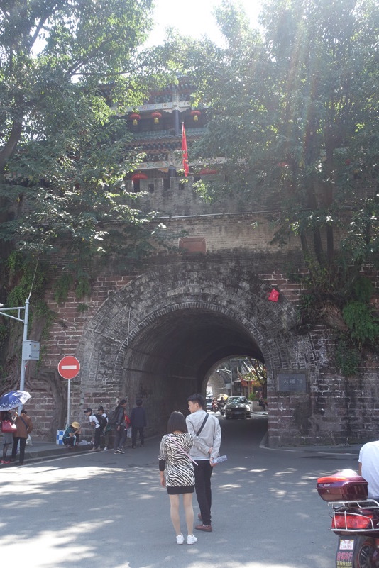 Heute lassen wir es gemütlich angehen. Das haben wir uns nach den letzten Etappen auch verdient. Um neun Uhr stürzen wir uns ins geschäftige Treiben auf der Straße vor unserer Herberge und fallen hungrig in einer der reichlich vertretenen Frühstückslokale ein. Es gibt luftige Mantou, Baozi, Youtiao und Nudelsuppe natürlich. Besonders gut kommen die Fladen mit Taro-Füllung an. Allein die Wirtin und ihr Mann scheinen mit der Vielzahl an Gästen ein wenig überfordert. Wir hoffen sehr, dass sie morgen auf den Ansturm vorbereitet ist. Nachdem Frühstück begleitet Isabelle Hartmut in den Massage-Salon in der Hoffnung, dass seine Schmerzen dadurch ein wenig Linderung erfahren. Wir Übrigen machen uns auf die mingzeitliche (allerdings 2005 restaurierte) Stadtmauer zu erklimmen, um uns die Stadt von oben anzusehen. Auf Höhe des Hotels fängt uns allerdings die Dame des Hauses ab. Wir müssen noch einmal zurück. Die örtliche Polizei ist besorgt um unsere Sicherheit und spielt mit dem Gedanken, uns auf die Mauer zu begleiten. Zu unserem Schutz, versteht sich. Ein kleiner Wortwechsel mit den beiden freundlichen Beamten und unserer Zusicherung, dass es uns gut geht und wir uns bei Problemen umgehend bei der Polizei melden, reichen aus und wir erhalten die Erlaubnis alleine die Mauer zu besichtigen.