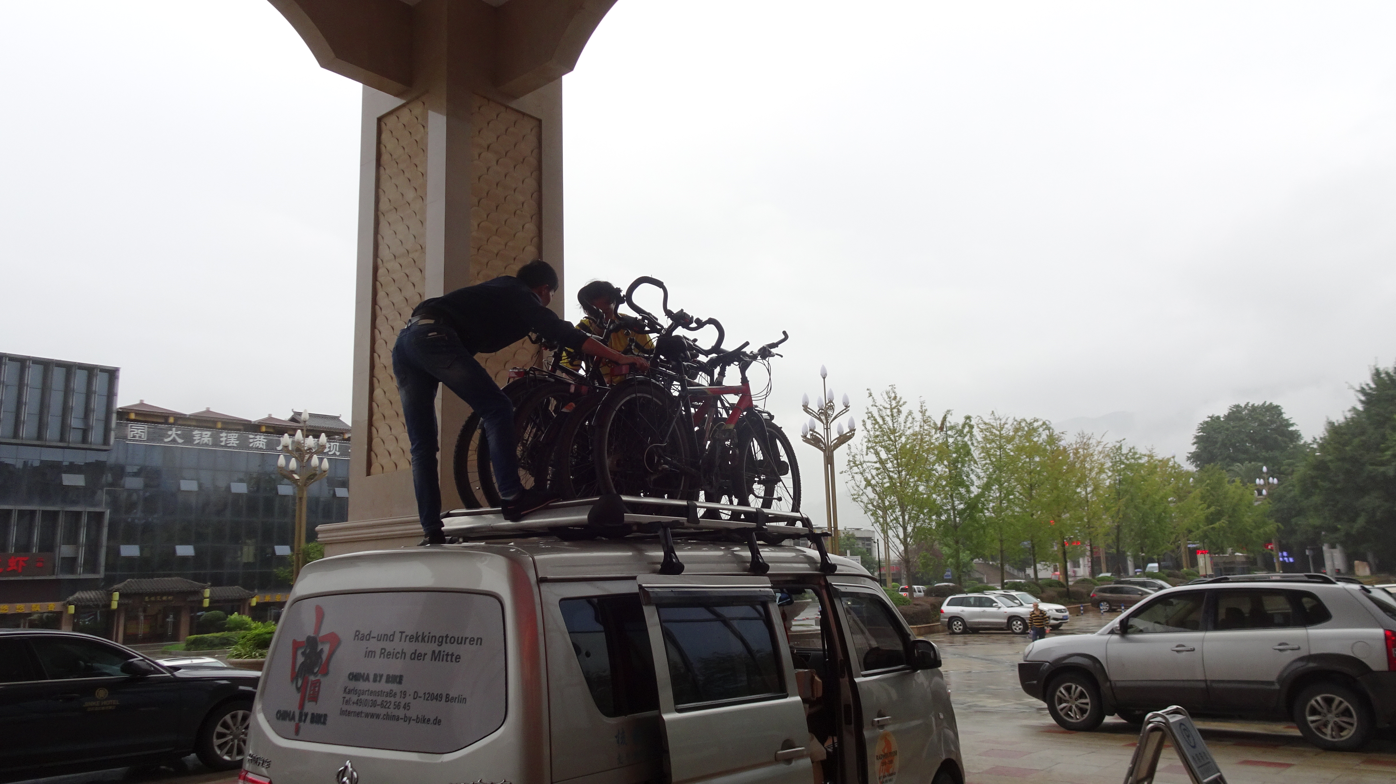 Die Fahrzeug-Crew mußte erst Gepäck und heute nicht benötigte Fahrräder nach Chongqing bringen und dann zurück zu den tapferen Pedaleuren und -innen fahren. Andreas schreibt sicher im anderen Teilblog auf, wie das geklappt hat.
