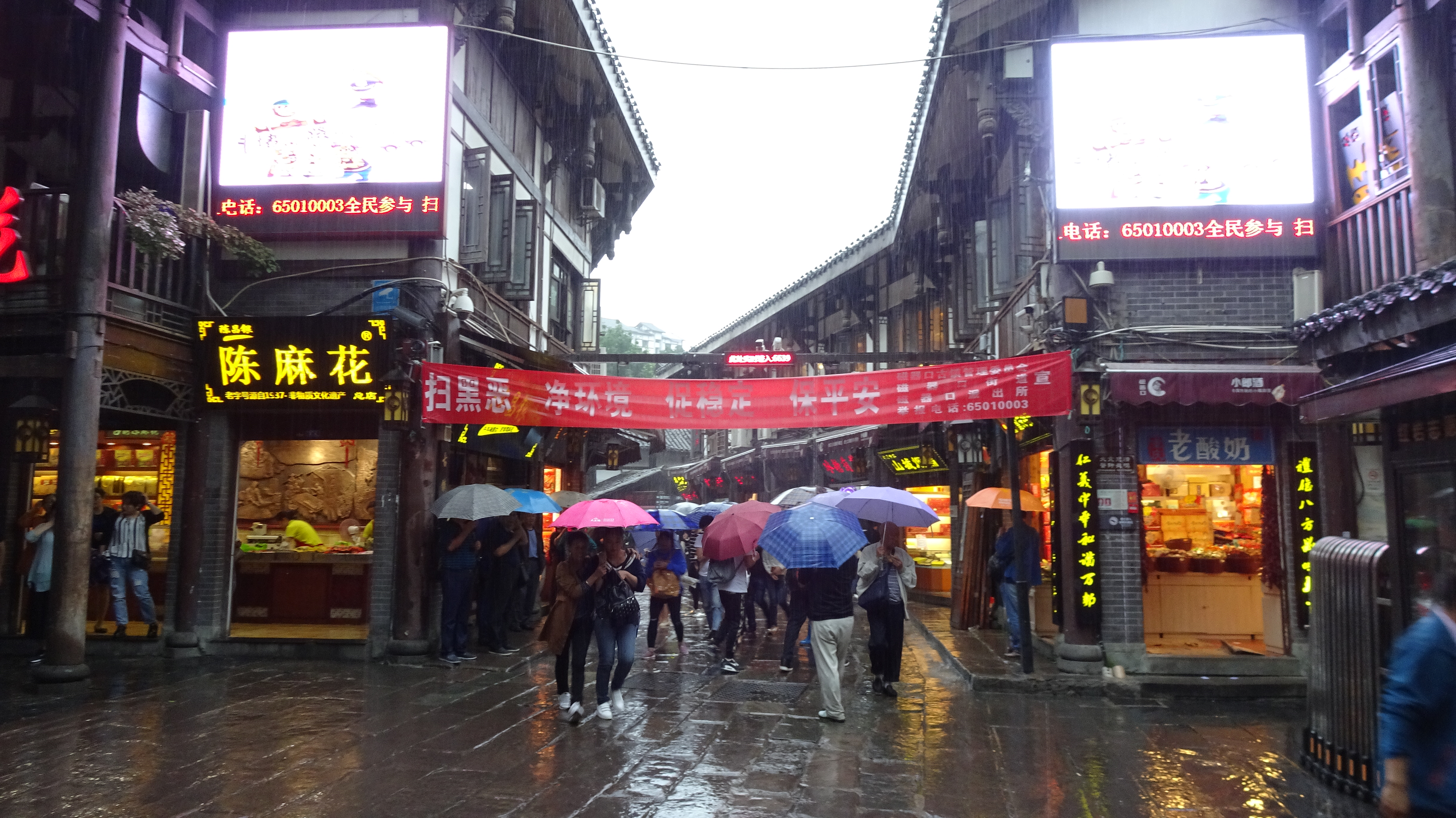 Die letzten Meter kämpfen wir uns im Dauerregen durch die enge Gasse der von Händlern und Shops gesäumten sowie von vielen vielen Regenschirm tragenden Menschen verstopften HistorischenAltstadtMall bis zum „View Hotel“ am Flußufer. Geschafft! Unser Gepäck steht dort schon bereit und wir beziehen unsere Zimmer für die Tage bis zur Weiterrreise am Freitag.