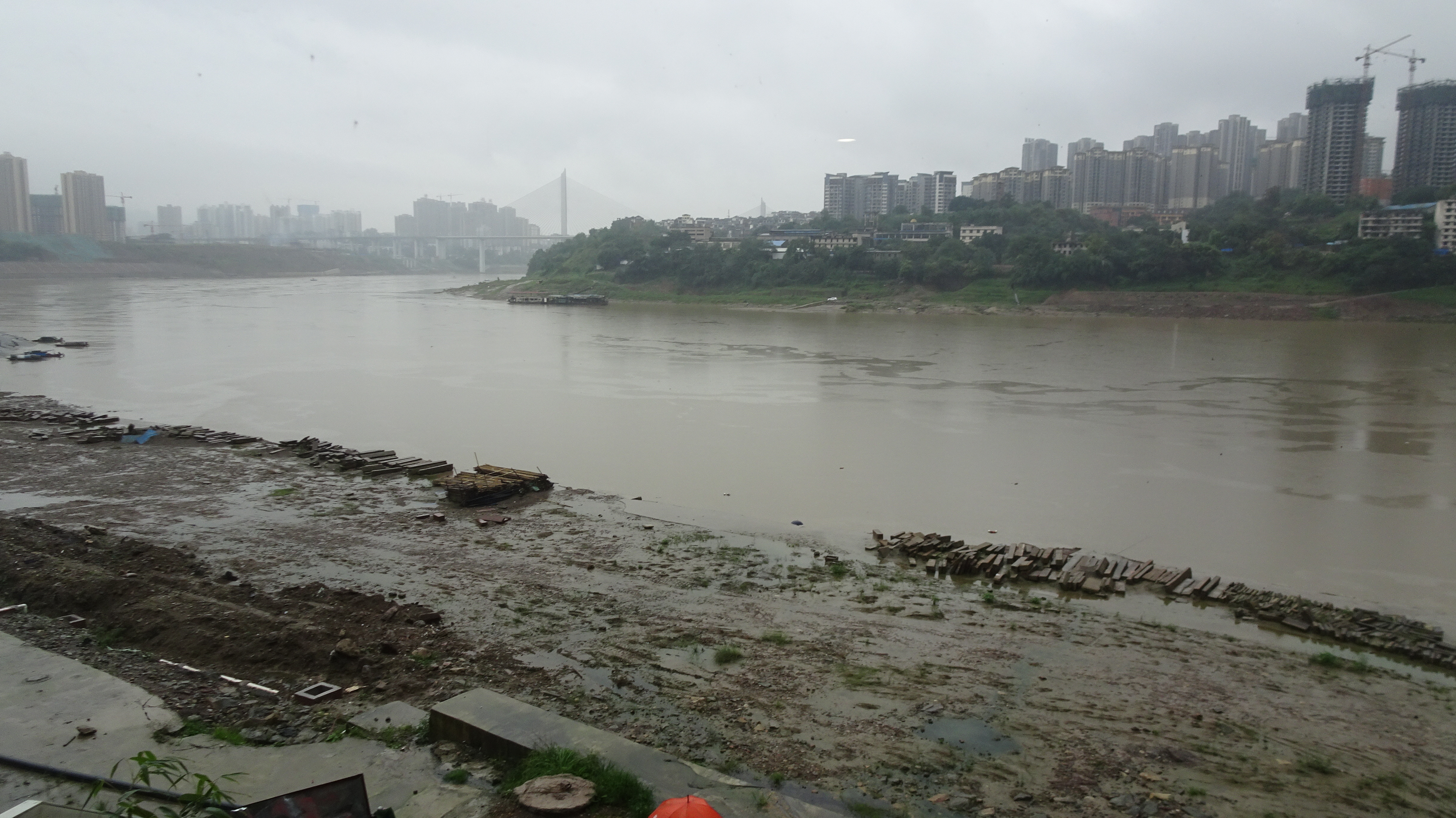 Tag 178 der Weltreise: 118 km via Taxi und Bahn von Fuling nach Chongqing (+1108m, -1031m) bei max. 20°C und erneut z.T. heftigem Regen