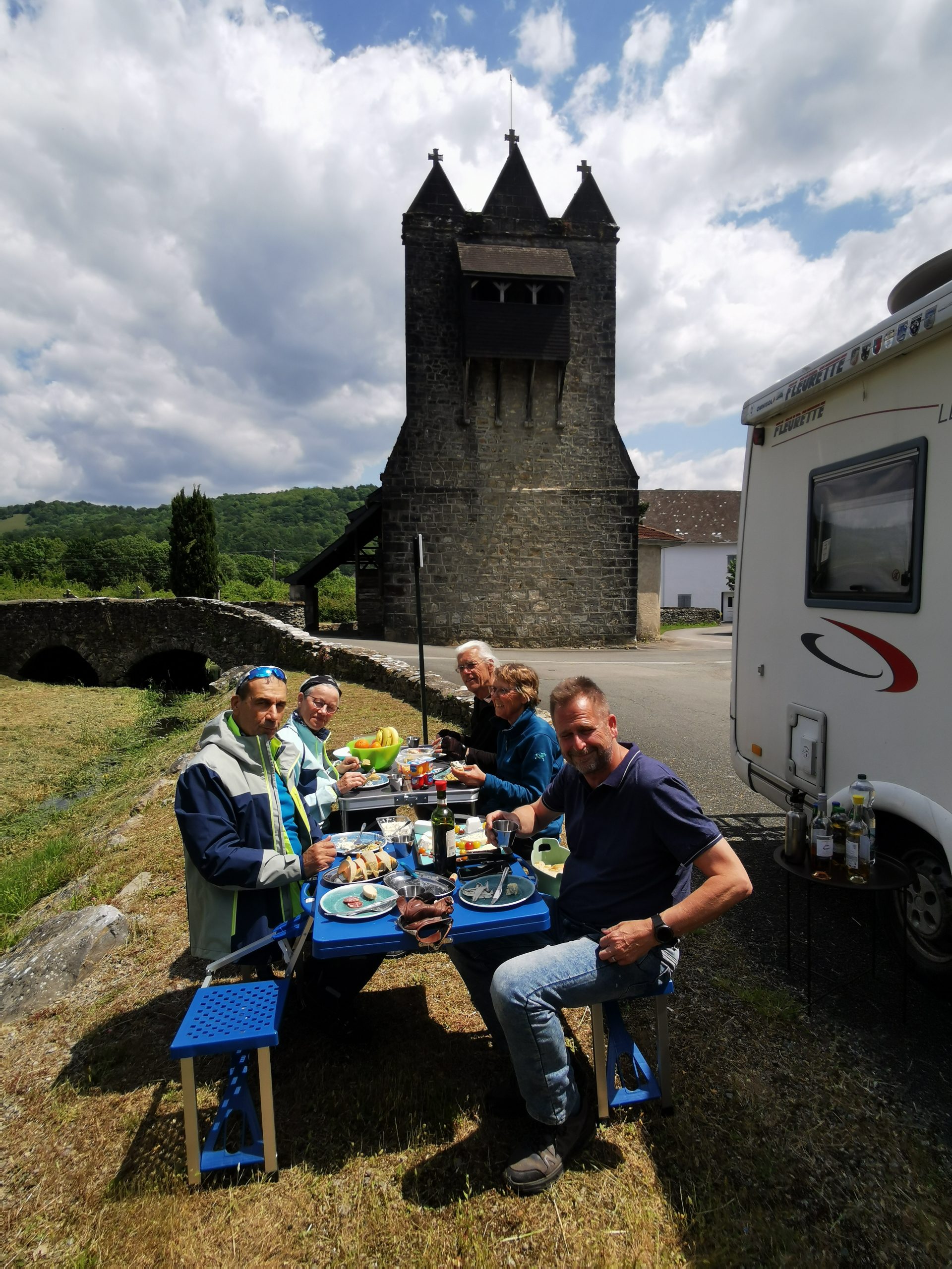 Ein wunderschöner Tag mit leidlich gutem Wetter, tollen Aussichten, dem schönsten Picknickplatz der Tour (und die Konkurrenz ist groß!) und einem vorgezogenen Schmutzbier in St. Jean-Pied-de-Port. Die letzten 12 Kilometer bereits auf dem Camino Frances für Fahrräder, von dem noch die Rede sein wird.