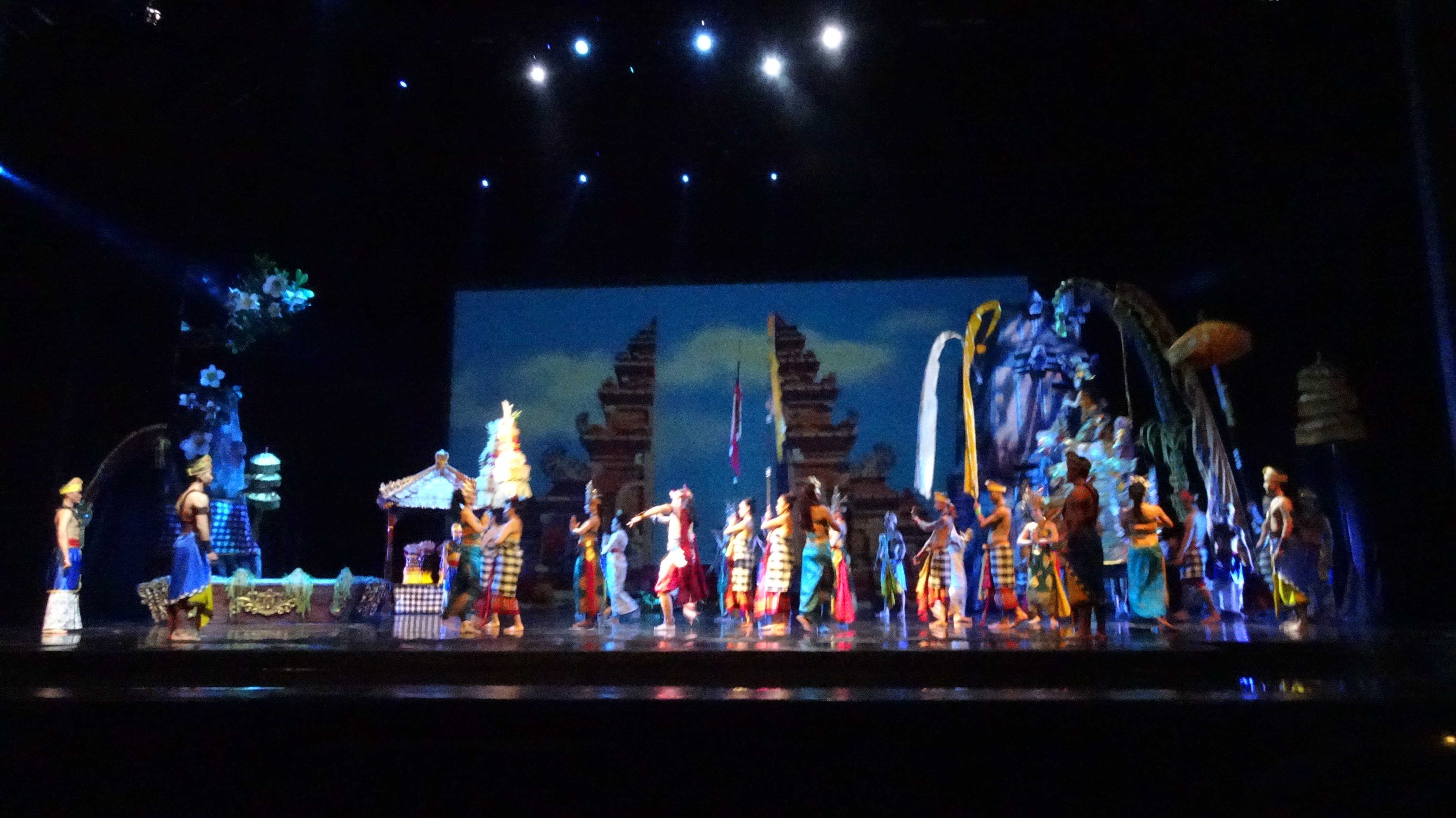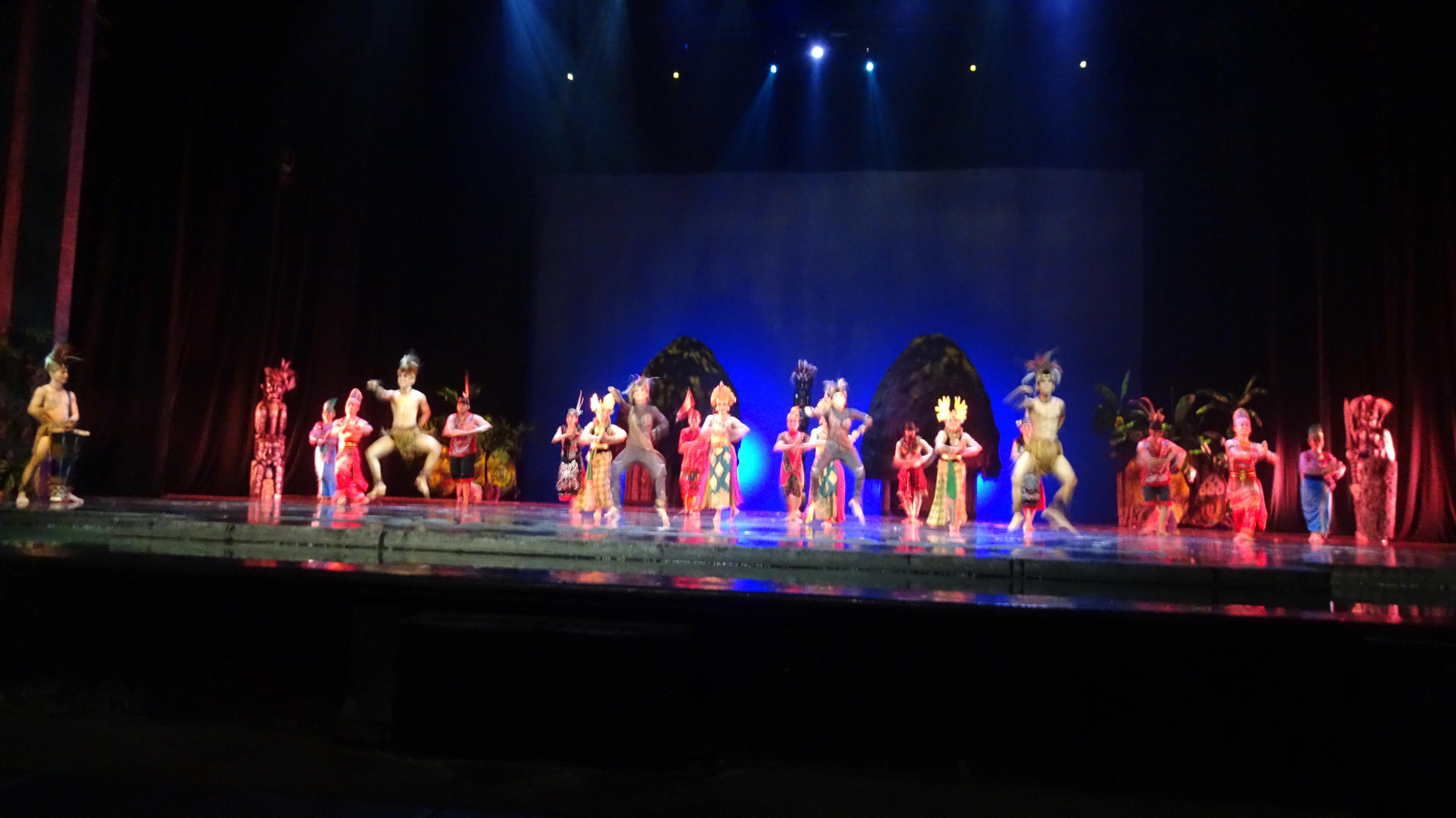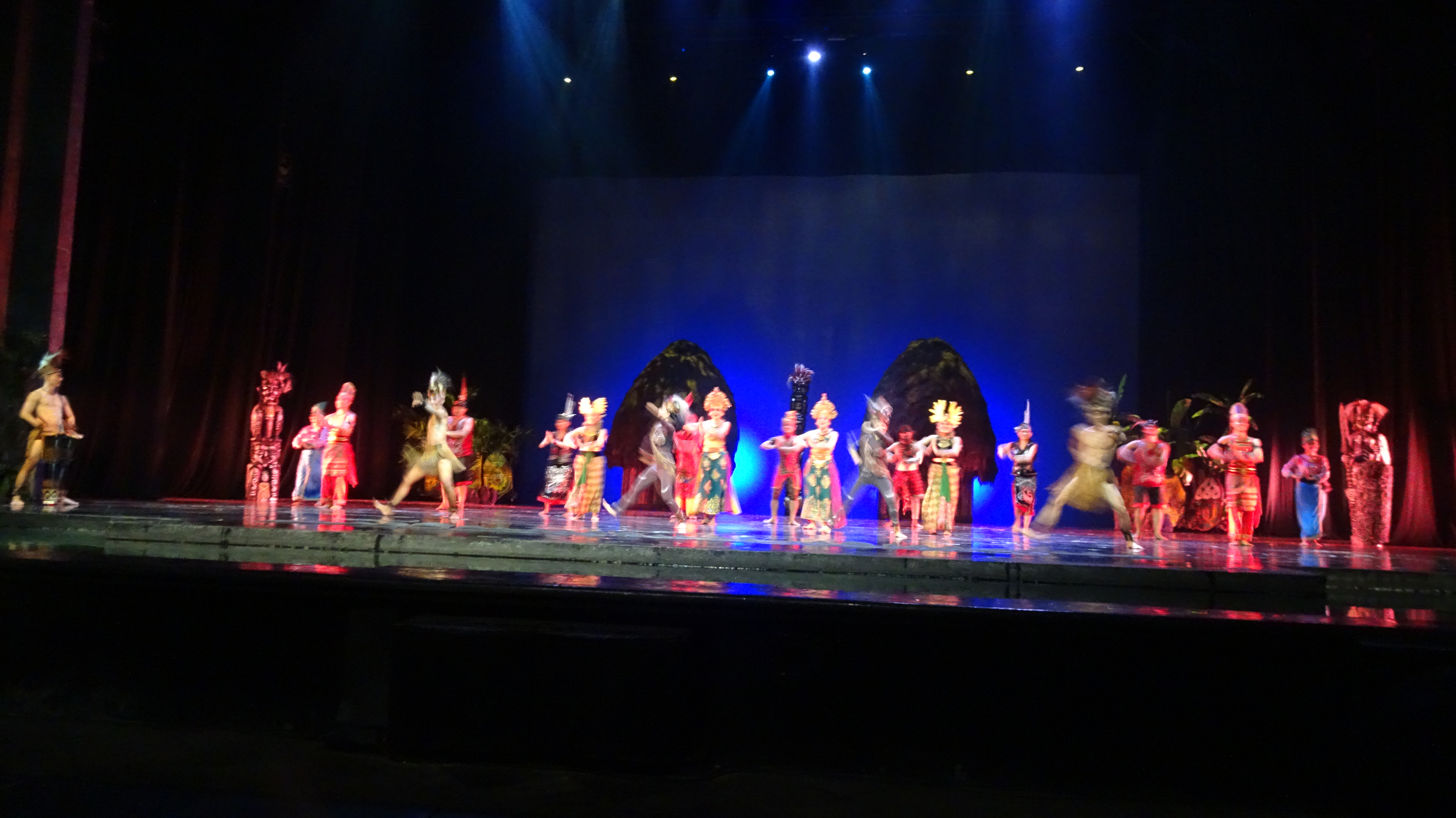 Bisher hatten wir uns vor allem traditionelle Tanz-Shows angesehen. Die DEVDAN-Show am Abend in Nusa Dua nimmt uns mit auf eine Reise in die Geschichte und die verschiedenen Regionen Indonesiens und interpretiert dabei die traditionellen Tänze auf moderne Art und kombiniert sie mit Akrobatik.