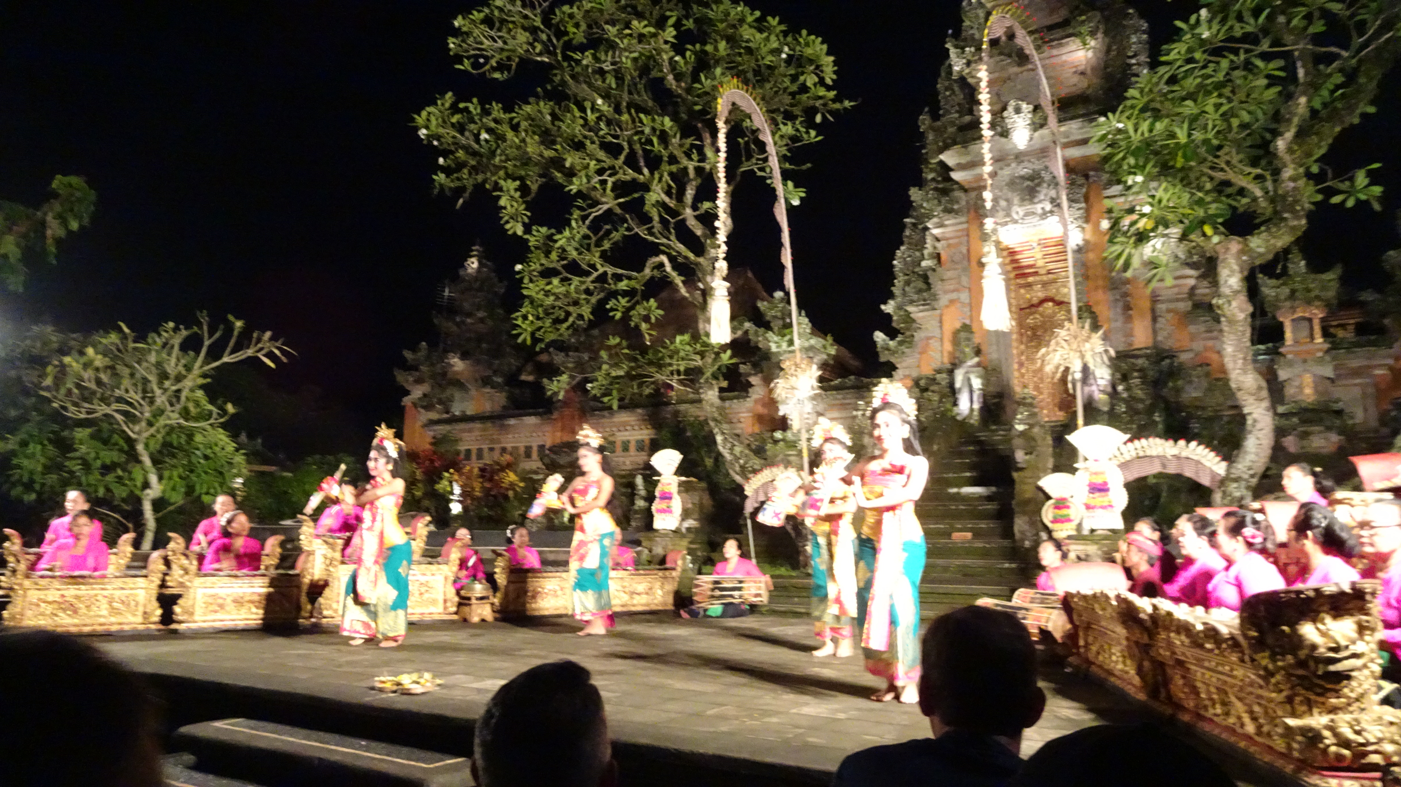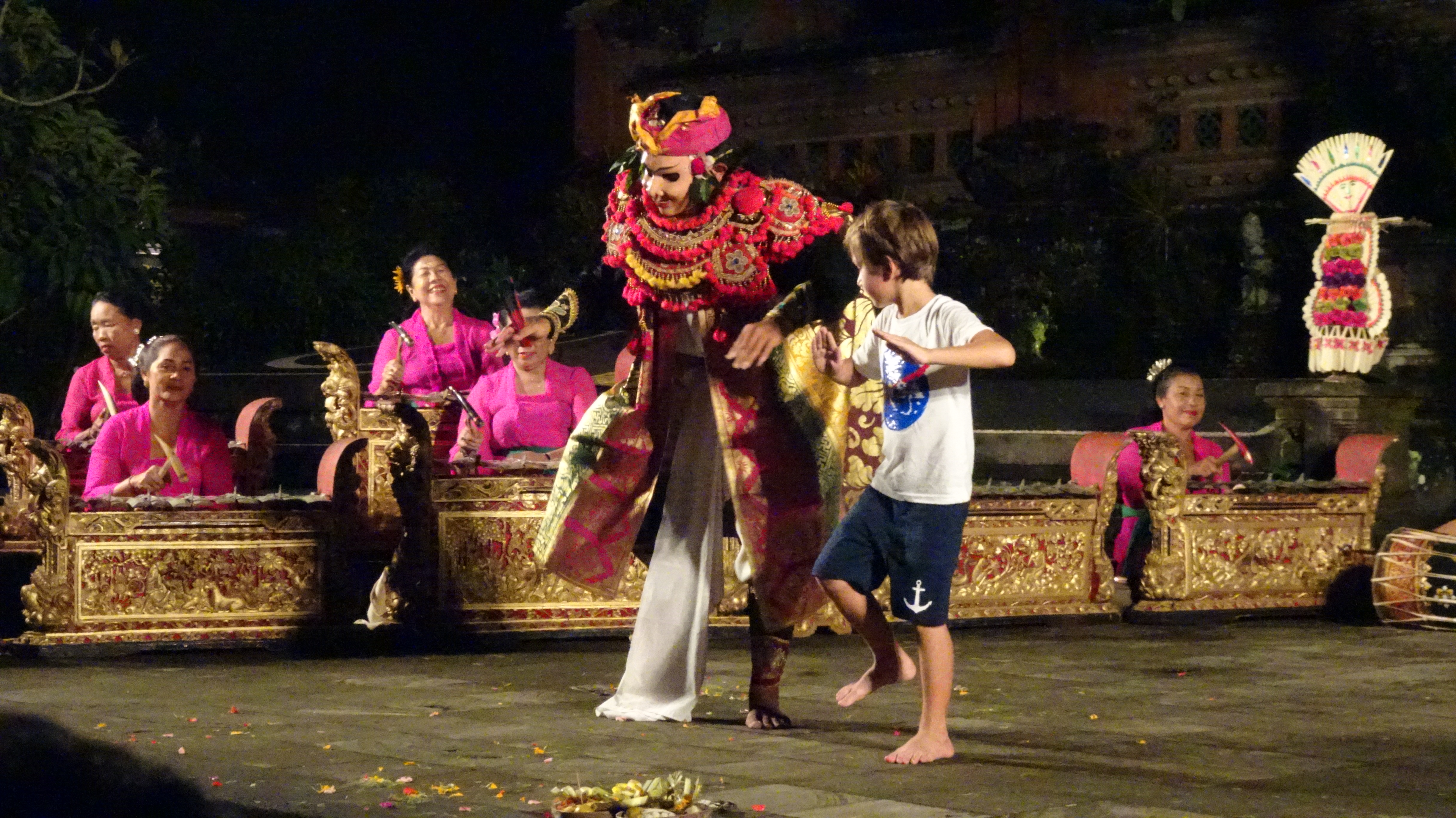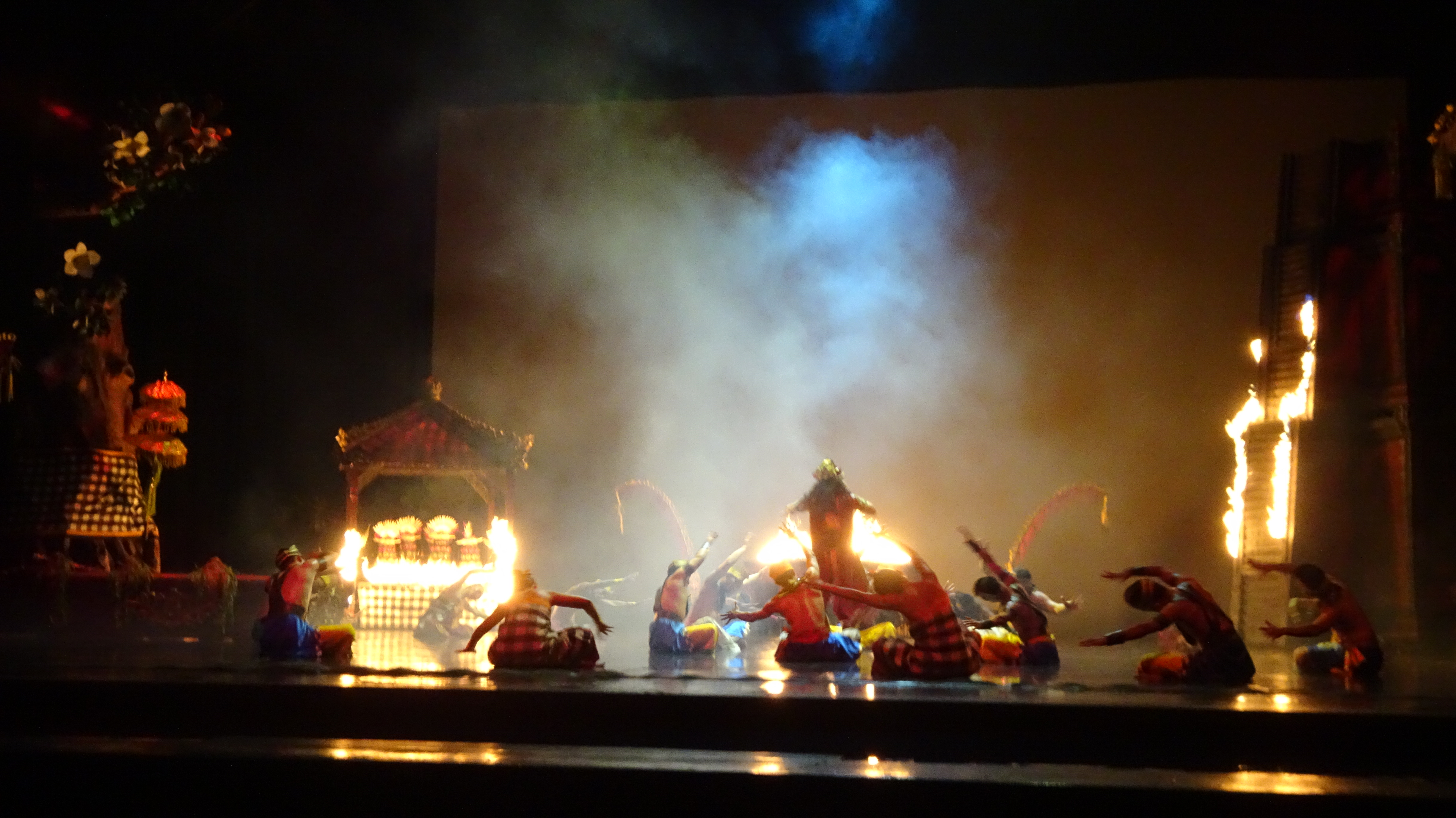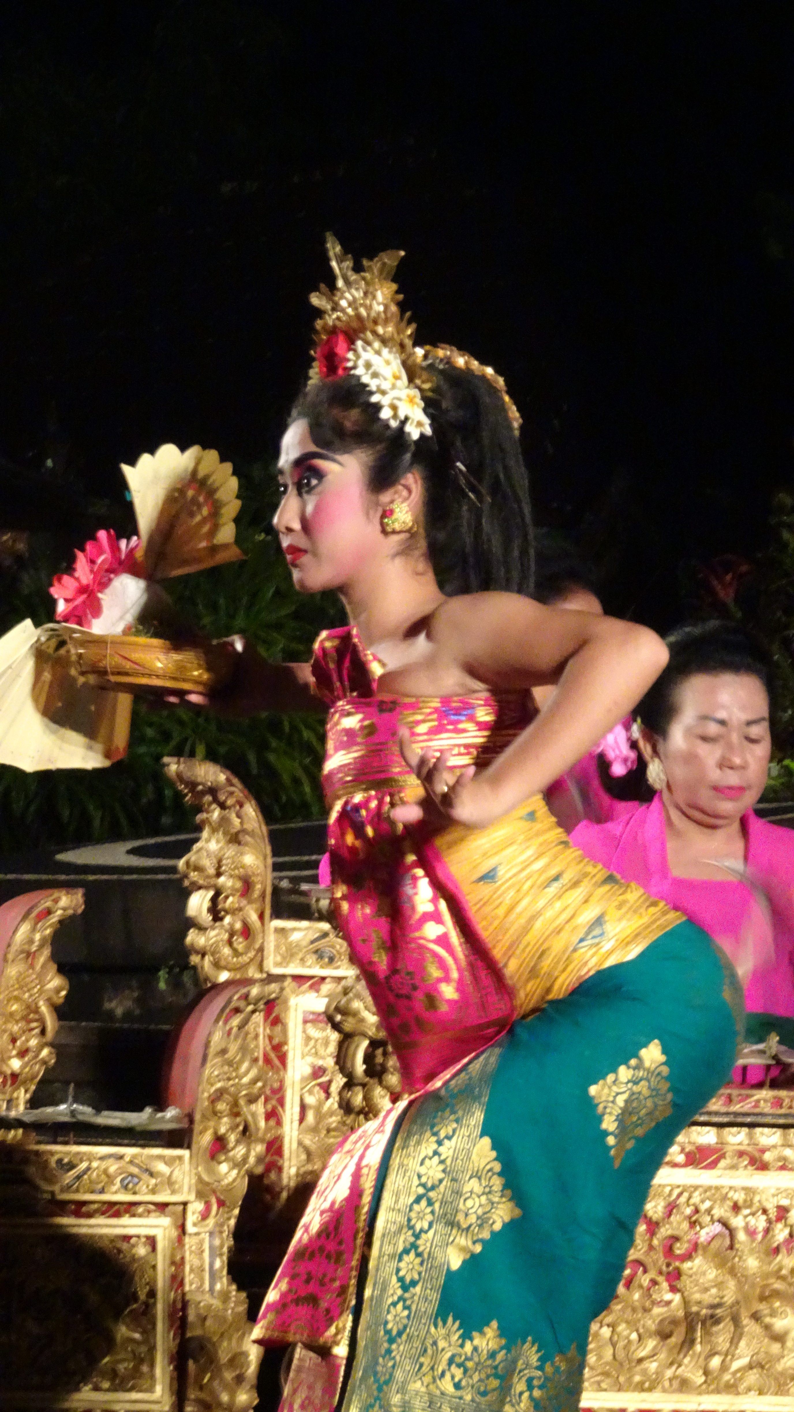 Bisher hatten wir uns vor allem traditionelle Tanz-Shows angesehen. Die DEVDAN-Show am Abend in Nusa Dua nimmt uns mit auf eine Reise in die Geschichte und die verschiedenen Regionen Indonesiens und interpretiert dabei die traditionellen Tänze auf moderne Art und kombiniert sie mit Akrobatik.