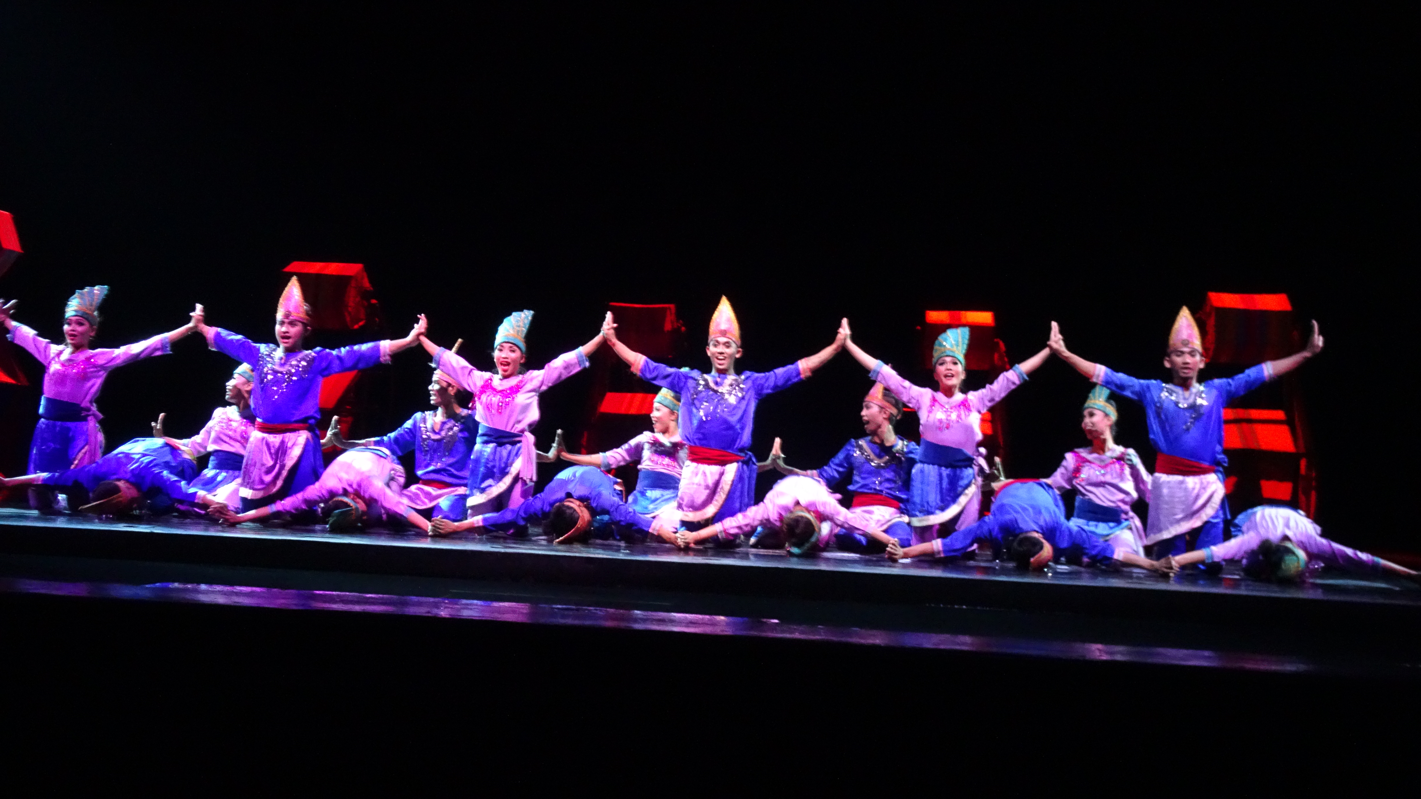 – Songket, die traditionell auf Sumatra gewebten Stoffe, repräsentieren diese Insel – dazu ein dörflicher Webertanz, ein Regentanz und Akrobatik an langen Stoffbahnen.