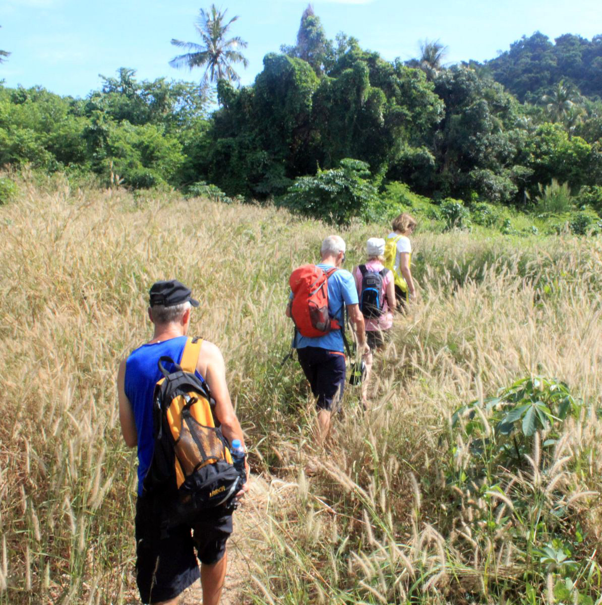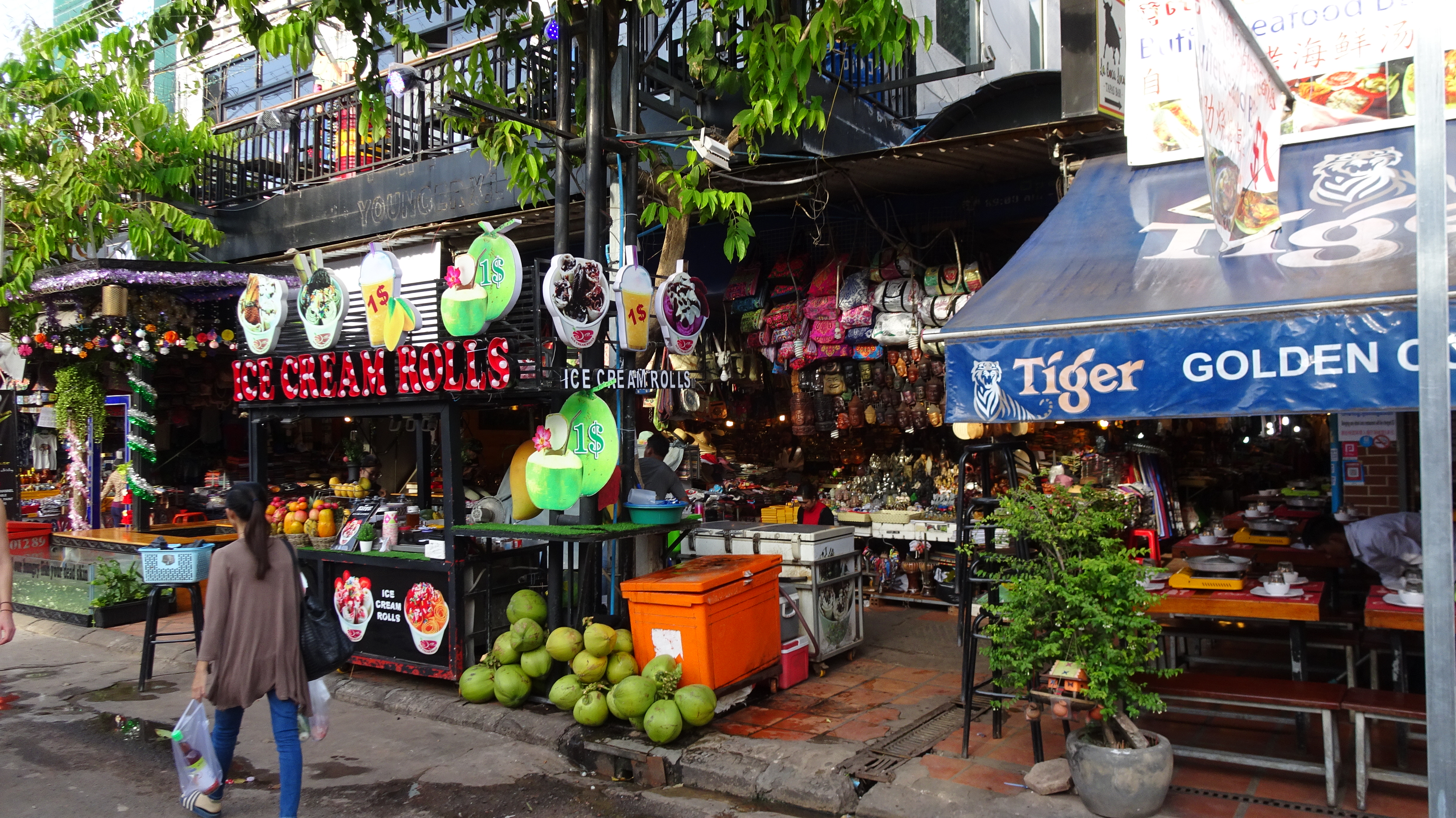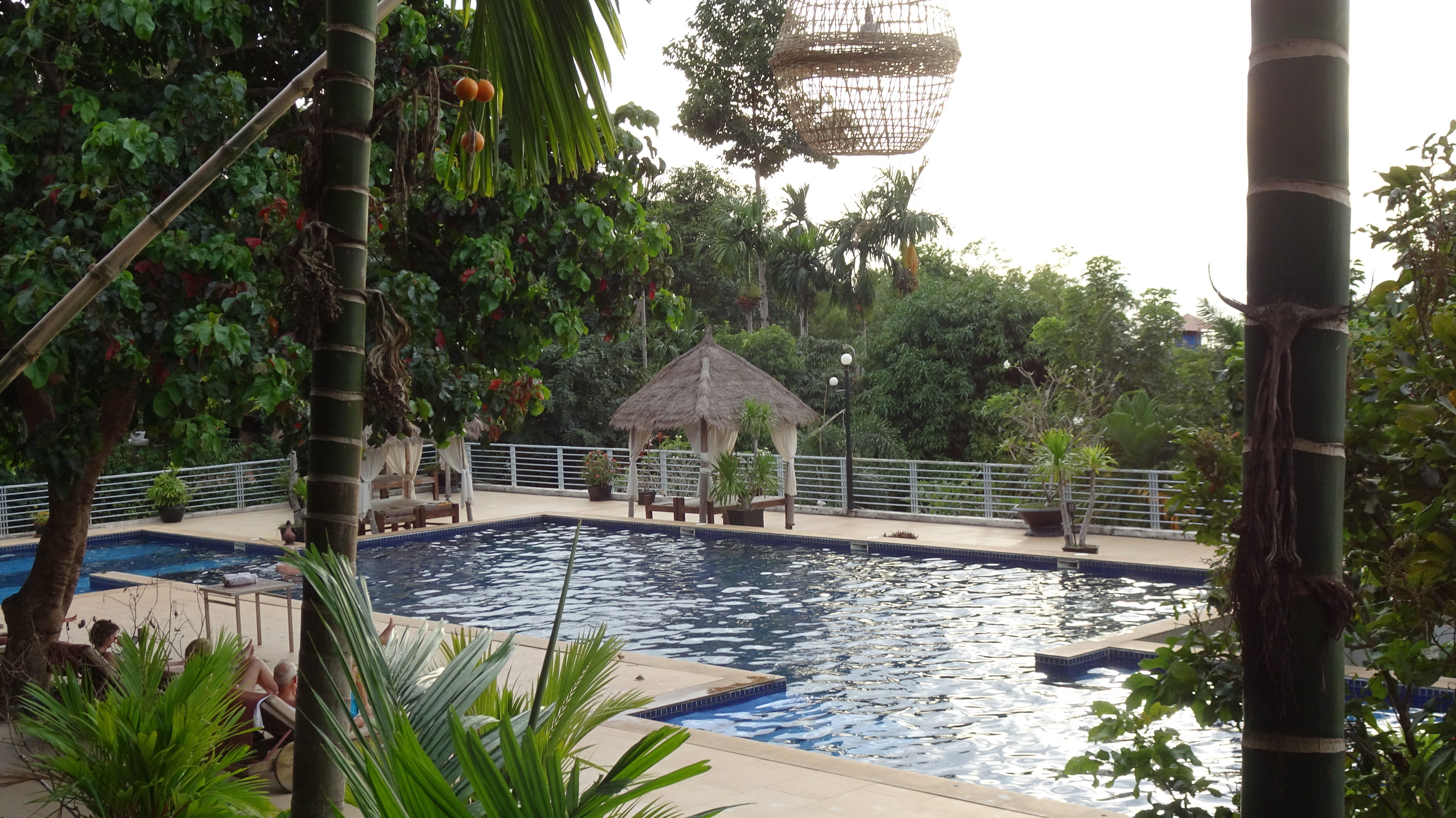Wir sind am heutigen Ruhetag auf Solo- und Kleingruppenpfaden unterwegs. Ich habe zum Beispiel statt der Tagesbootsfahrt zur nahen Insel mit den Sandstränden die nähere Umgebung um das malerisch am Hang gebaute „Vanna Hill Resort“ bewandert. Auf dem Krebsmarkt (sicher die Attraktion des Ortes) war auch kurz nach 8 Uhr noch emsiges Treiben und würzige Düfte von Leckereien am Spieß waberten unter den Sonnenschirmen. Die zahlreichen Hotels und Homestays sind deutlich auf mehr Gäste vorbereitet, als momentan zu sehen sind. Neues ist trotzdem in Planung, auch wenn noch nicht alle der alten Kolonialbauten schon wieder fertig oder überhaupt saniert sind.