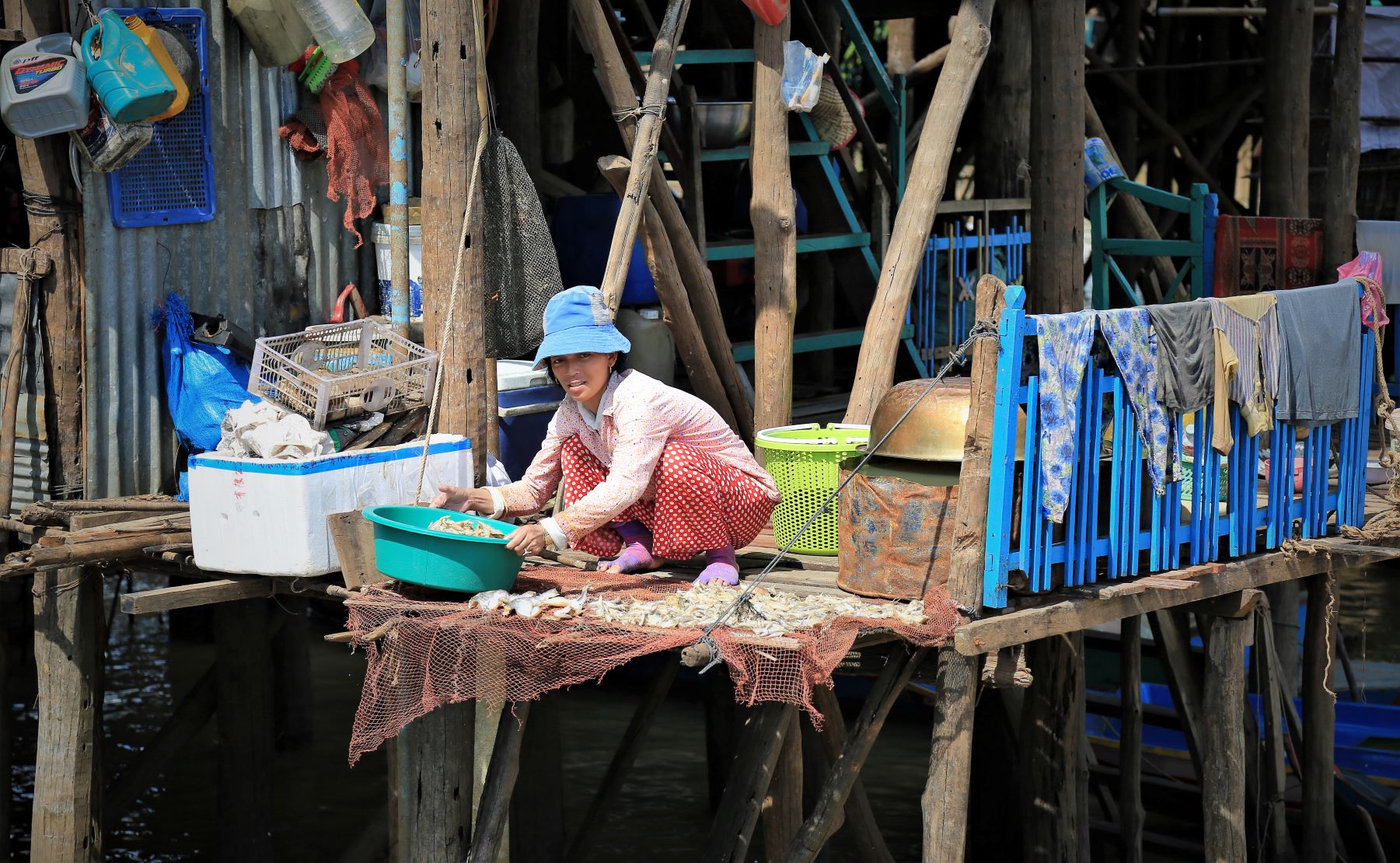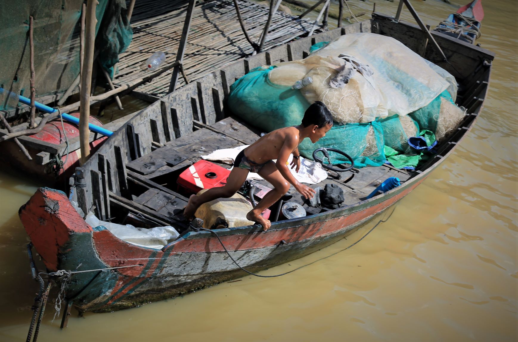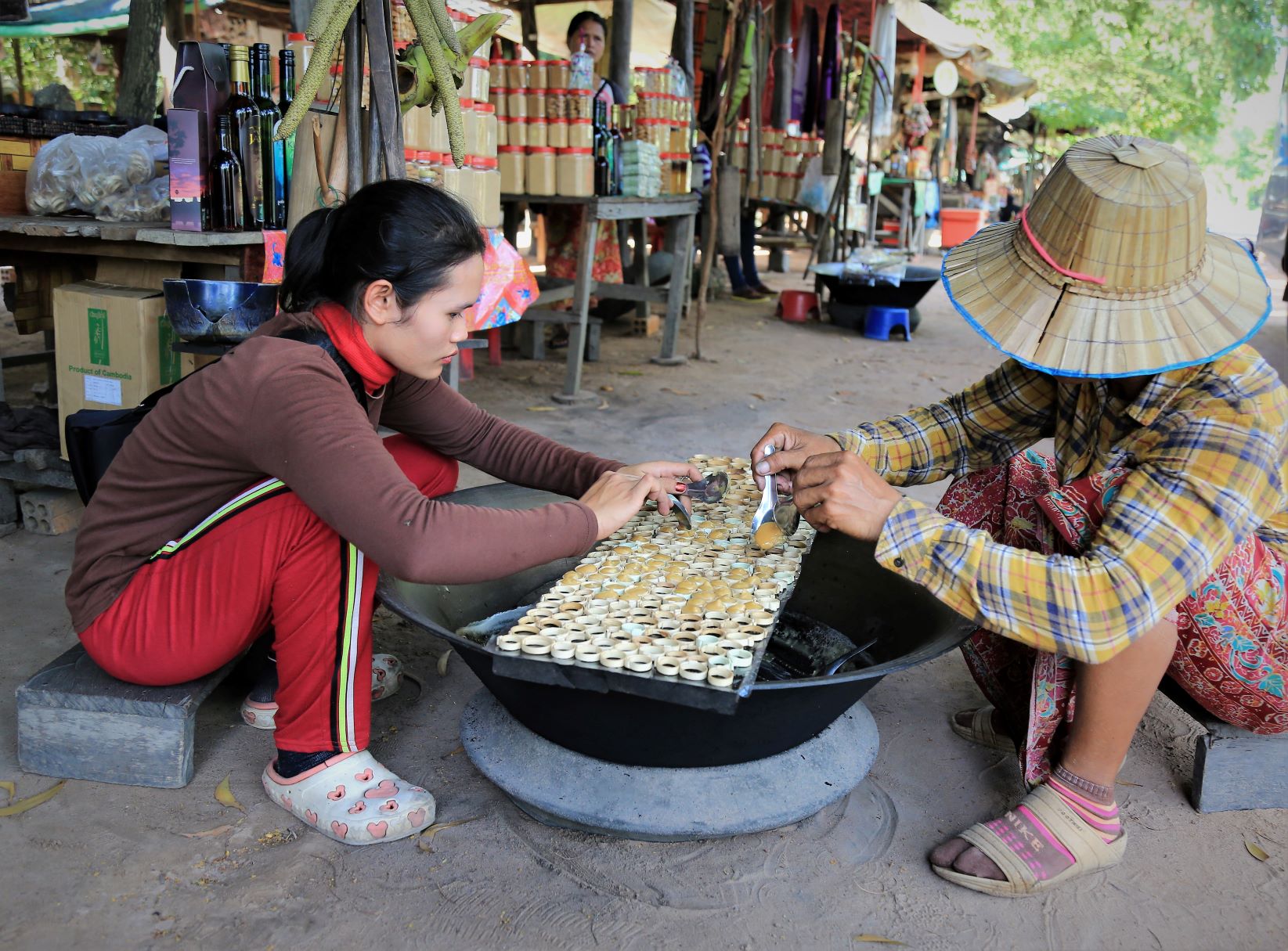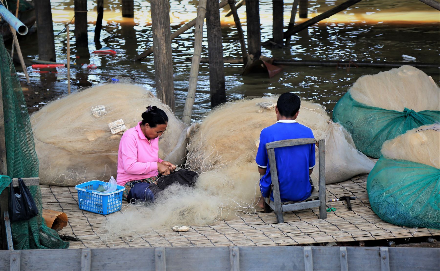 Wir sind am heutigen Ruhetag auf Solo- und Kleingruppenpfaden unterwegs. Ich habe zum Beispiel statt der Tagesbootsfahrt zur nahen Insel mit den Sandstränden die nähere Umgebung um das malerisch am Hang gebaute „Vanna Hill Resort“ bewandert. Auf dem Krebsmarkt (sicher die Attraktion des Ortes) war auch kurz nach 8 Uhr noch emsiges Treiben und würzige Düfte von Leckereien am Spieß waberten unter den Sonnenschirmen. Die zahlreichen Hotels und Homestays sind deutlich auf mehr Gäste vorbereitet, als momentan zu sehen sind. Neues ist trotzdem in Planung, auch wenn noch nicht alle der alten Kolonialbauten schon wieder fertig oder überhaupt saniert sind.
