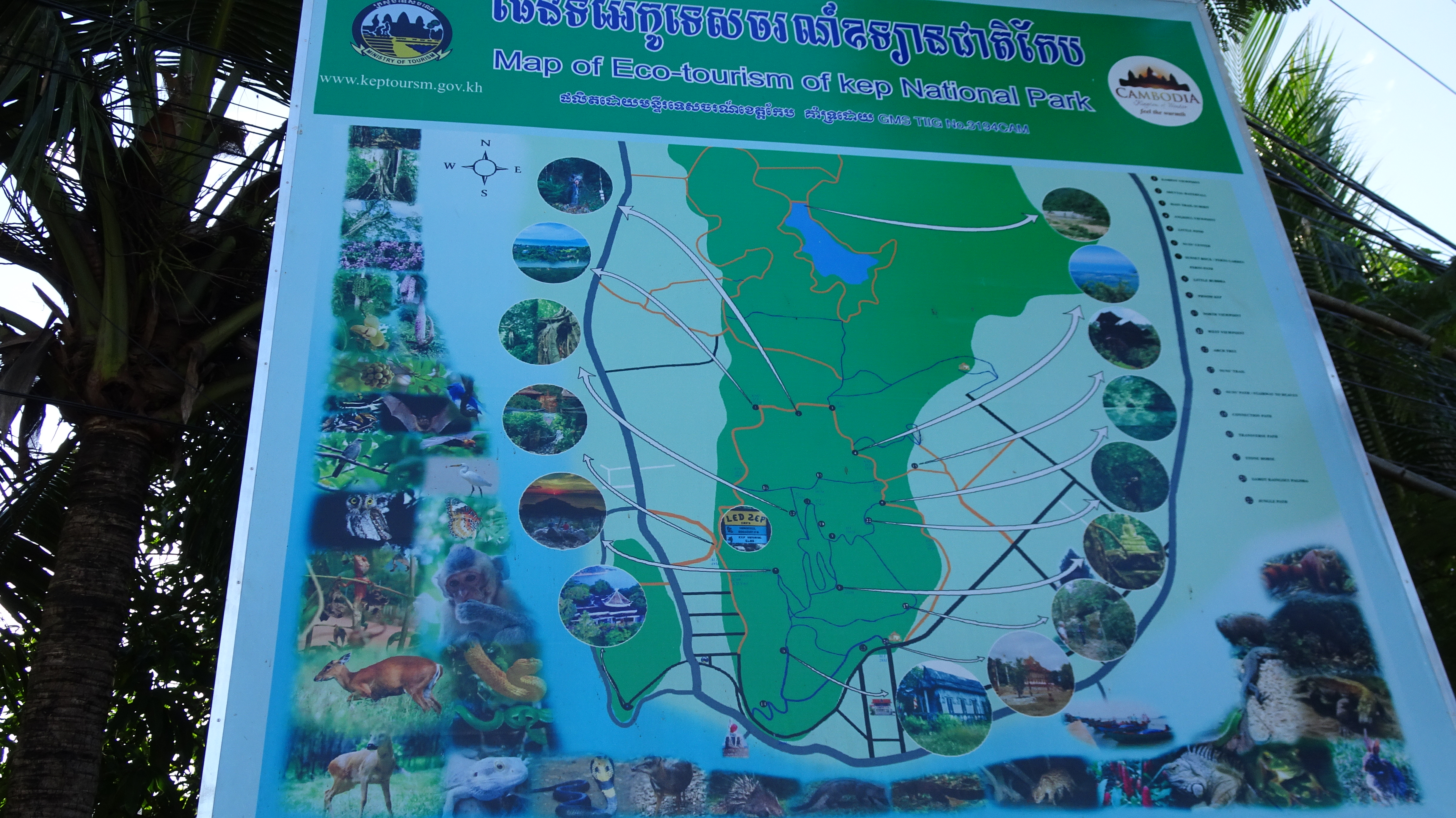 „Kep ist eine kleine Stadt (krong), aber Hauptstadt der gleichnamigen Provinz mit fast 13.000 Einwohnern. Sie hat einen direkten Zugang zum Golf von Thailand und ist eine der bekanntesten Küstenstädte Kambodschas. Kep liegt nur wenige Kilometer westlich der vietnamesischen Grenze. Eine gut ausgebaute Strecke verbindet die Stadt mit dem nahen Kampot.“ Da radeln wir morgen hin.