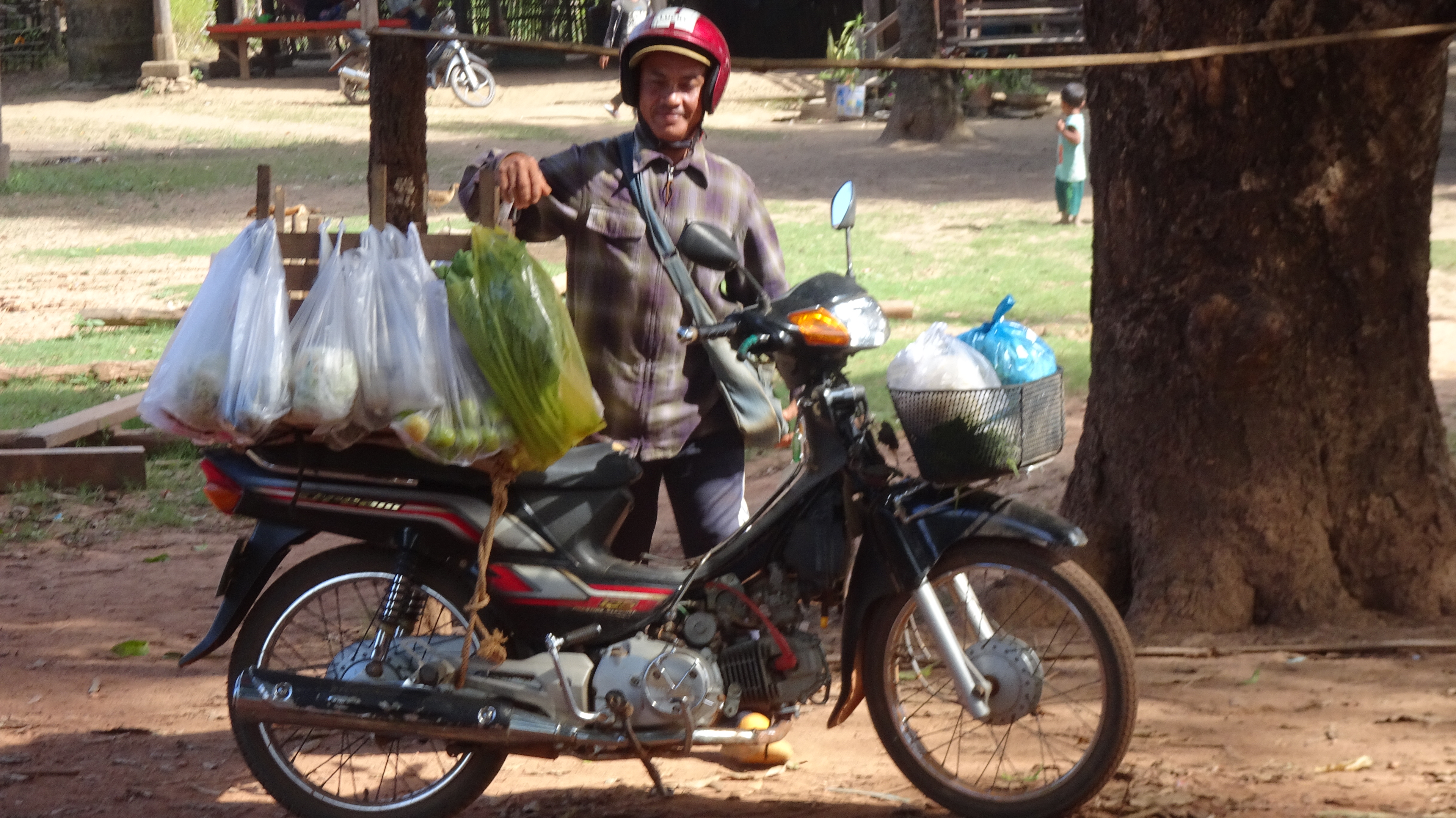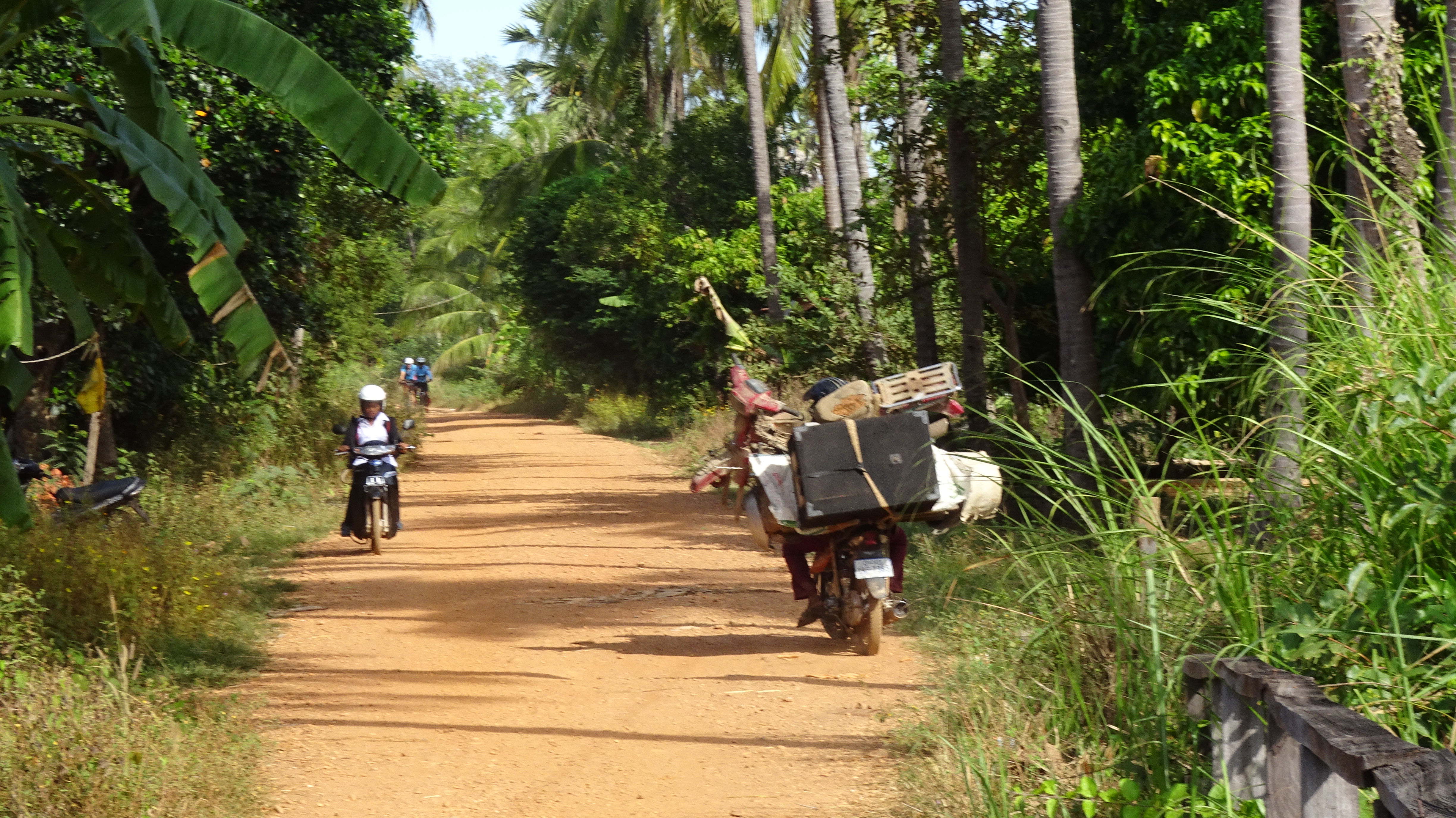 Die Familien auf der Insel leben vom Reis-, Obst- und Gemüseanbau und wir sehen viele große und kleine Haustiere.