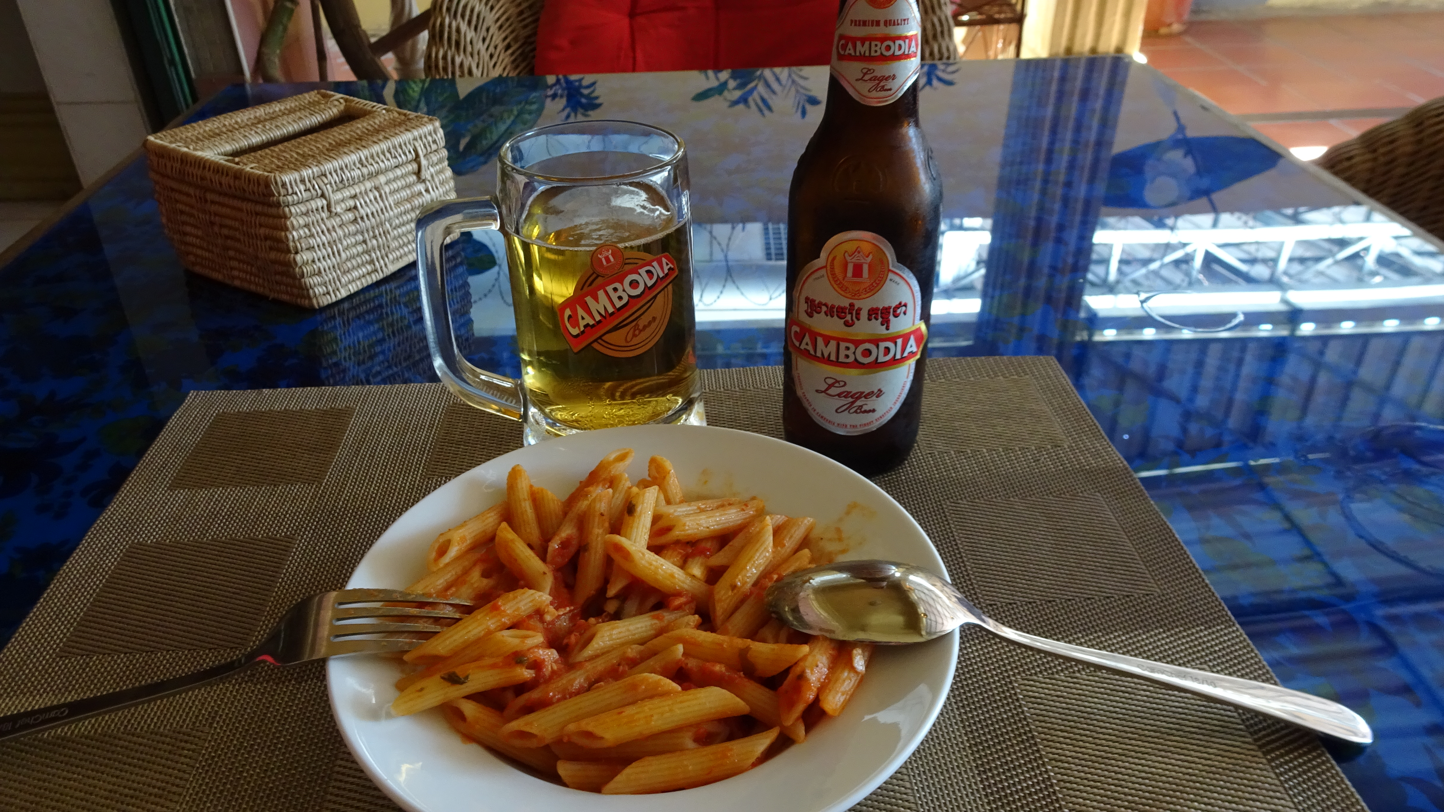 Wir fahren nach einem leckeren Frühstück die 15 km zurück nach Kampi, mit dem Bus, denn geradelt sind wir die ja schließlich gestern schon und noch 2 x dieselbe Straße ist auch weniger spannend.