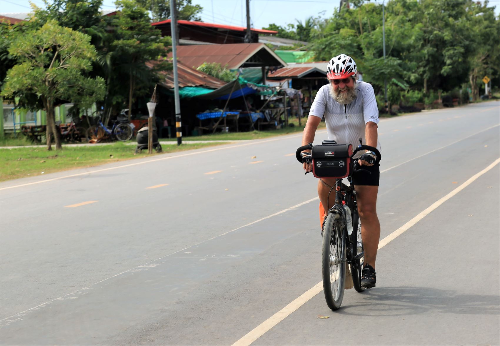 Die Länge der geplanten Tagesetappe und zeitaufwendige Formalitäten bei der Grenzüberschreitung zwingen uns heute gleich zweimal auf motorisierte Unterstützung zurückzugreifen. Transfer zur Grenze im Tuk Tuk, knapp einhundert flachste Kilometer im Sattel unserer Räder und nochmals knapp 40 Kilometer im Bus bis nach Bueng Kan. Die vorbeiziehende Landschaft ändert sich, verglichen zu den letzten Tagen, kaum, die politischen Systeme und die Lebensart dafür um so mehr … Wir tauschen Präsozialismus gegen eine Monarchie und eine unbedarfte Gelassenheit gegen die geballte Kraft eines Tigerstaates. Für uns Radfahrer bedeutet dies: gepflegte mehrspurige Radwege, Eiscremefachgeschäfte in erreichbaren Distanzen und luxuriöse Unterkünfte…