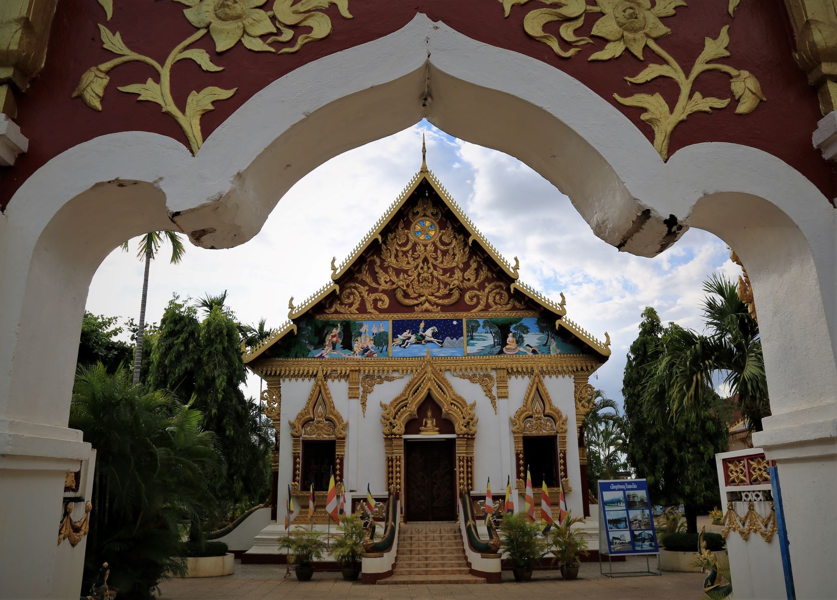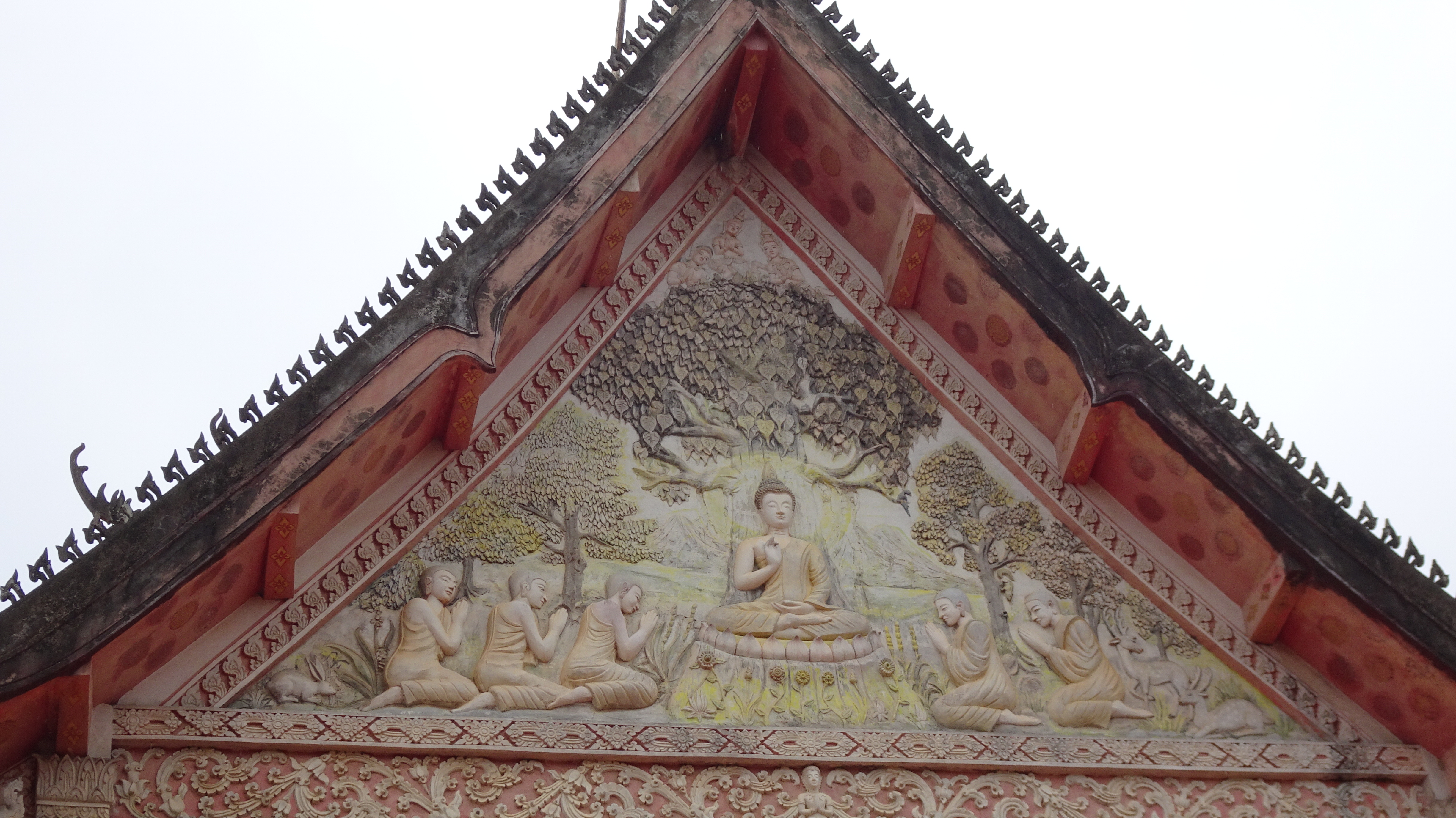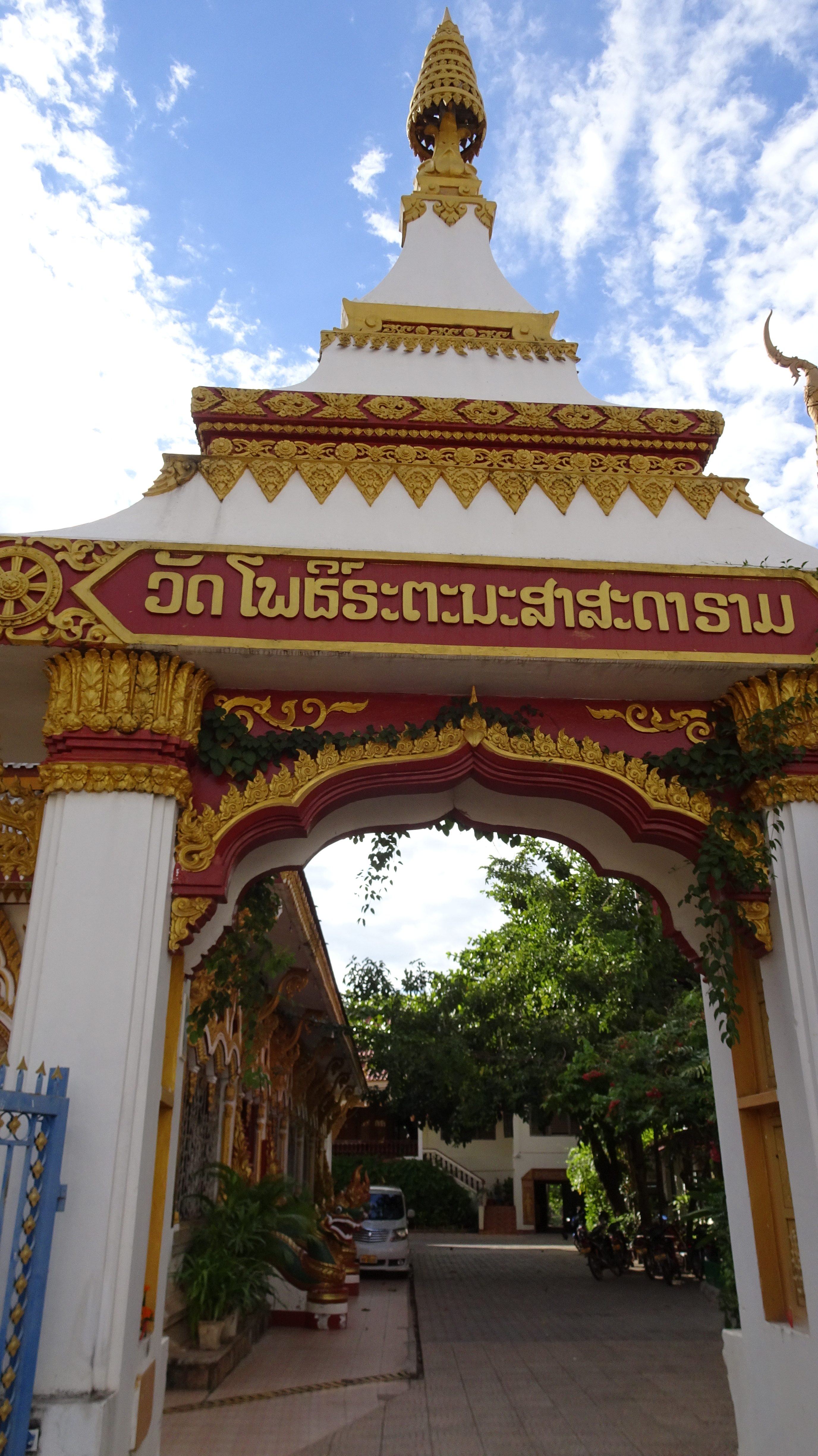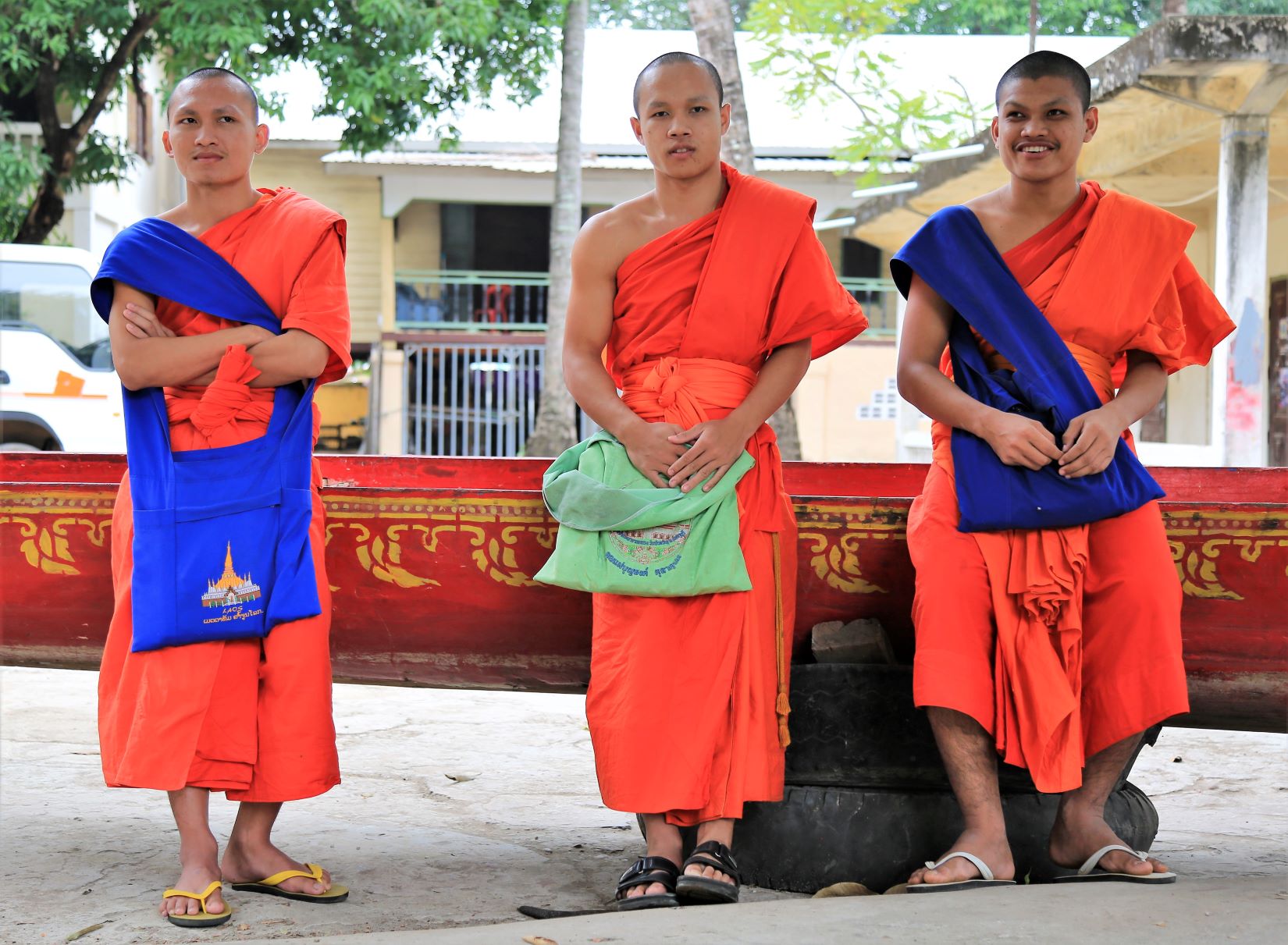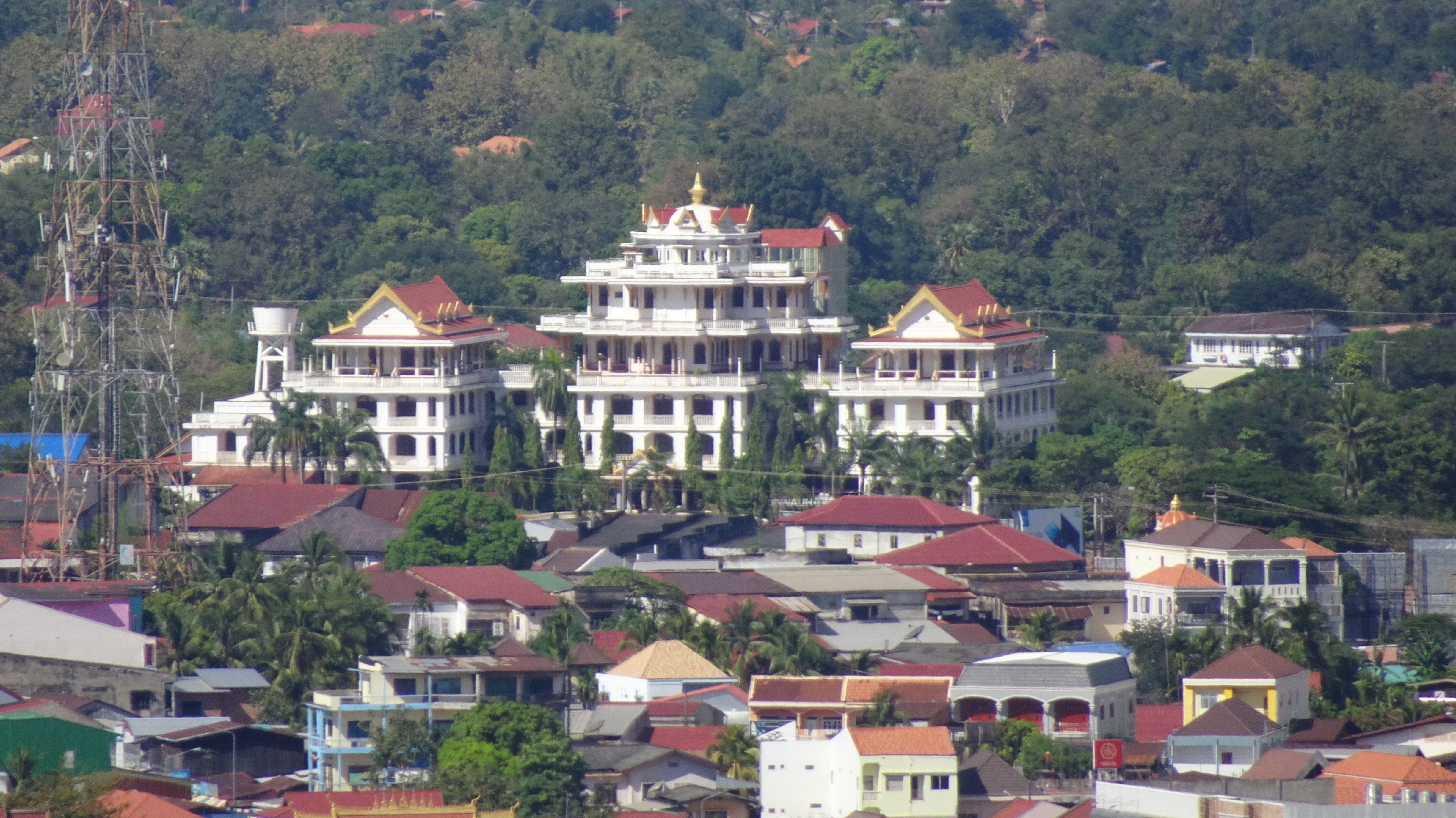Von den zahlreichen Sehenswürdigkeiten in und außerhalb der Stadt besuchen wir letztendlich die zwei wohl wichtigsten: Die rund 20 Meter hohe, oben auf dem Berg sitzende Buddhafigur, 7 Kilometer nördlich hinter der Japanischen Brücke und nach dem Mittagsimbiss (schon in deutlich kleinerer 3er-Gruppe) den Tempel Wat Luang neben der Französischen Brücke, der eine buddhistische Schule und eine Bibliothek beherbergt und vor dem eine weiße, glockenförmige Stupa steht, die die Asche von Katay Don Sasorit enthält.