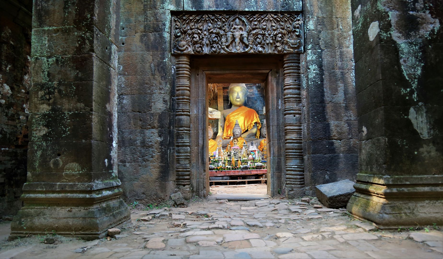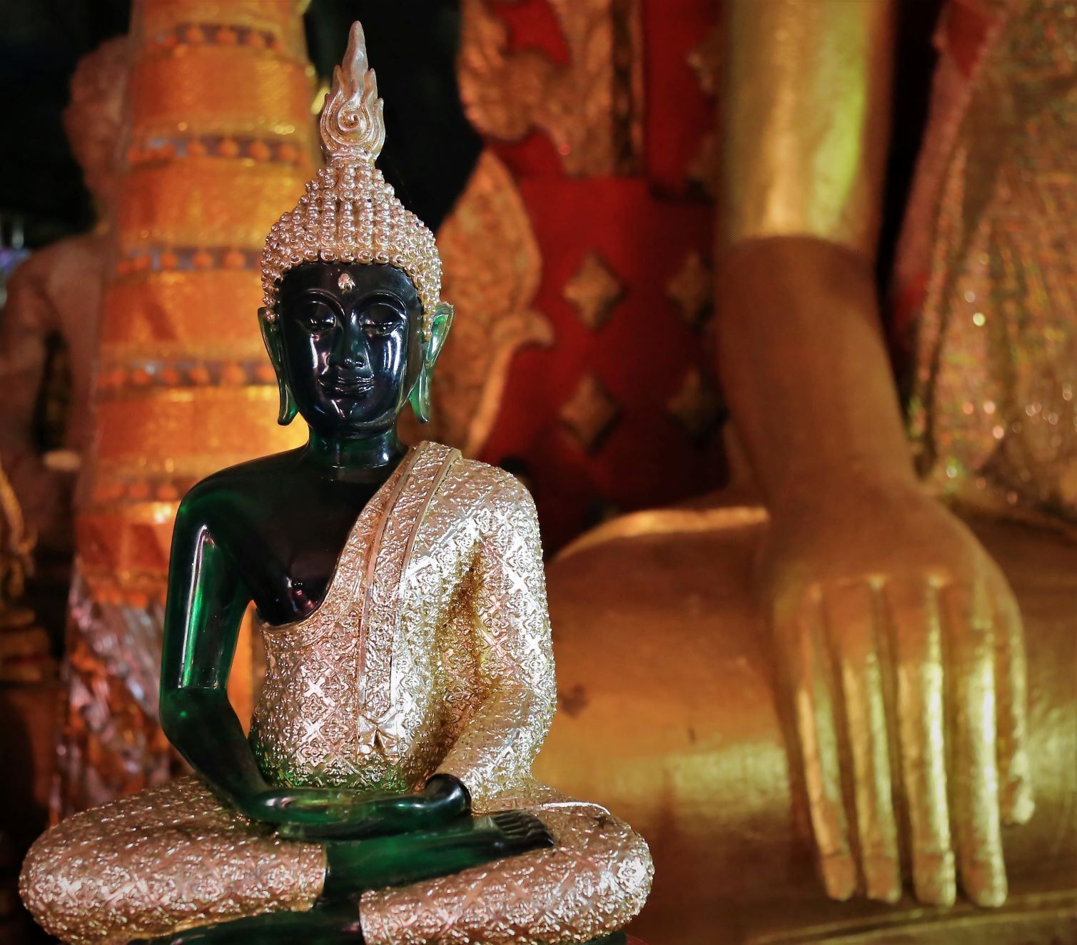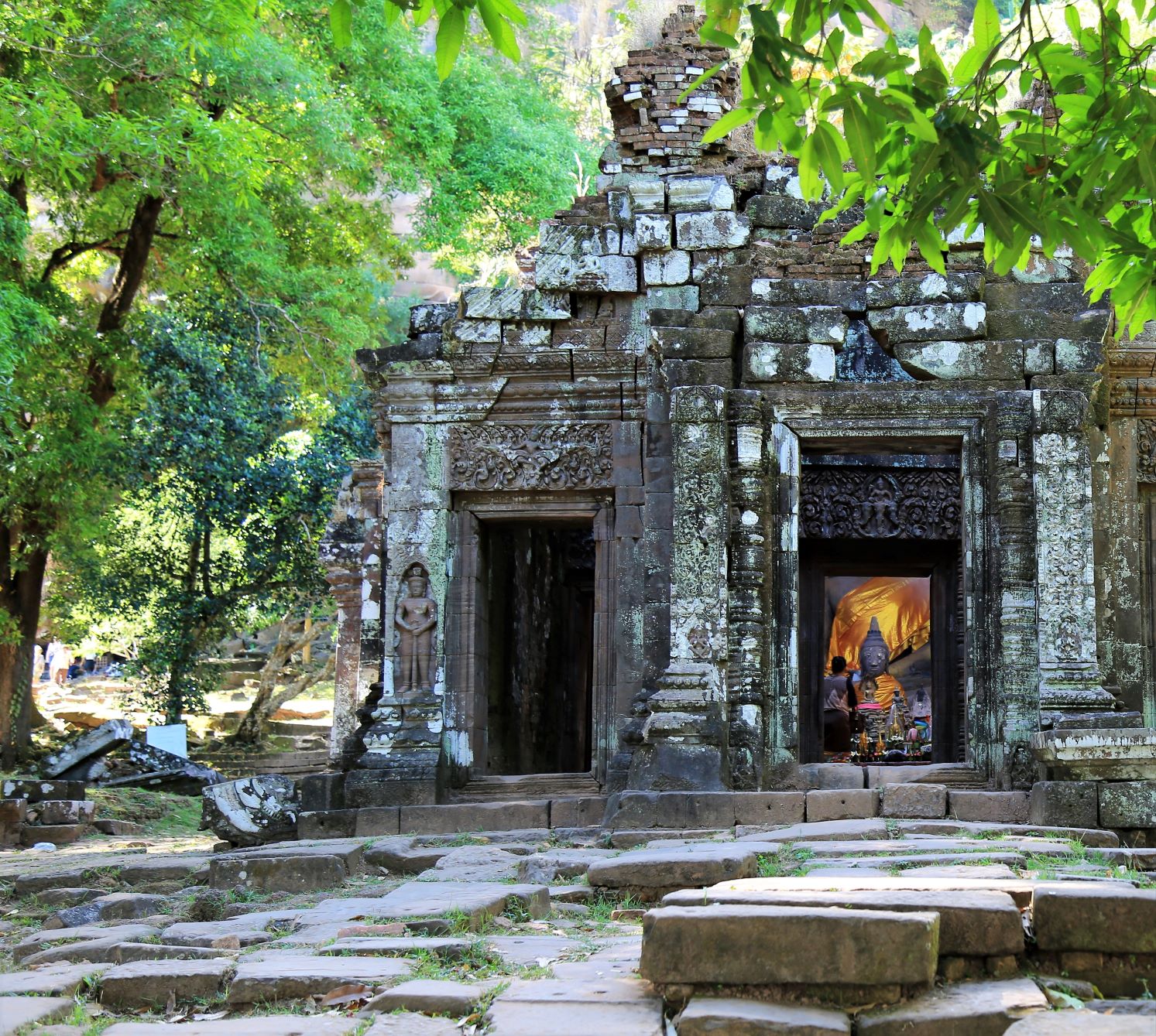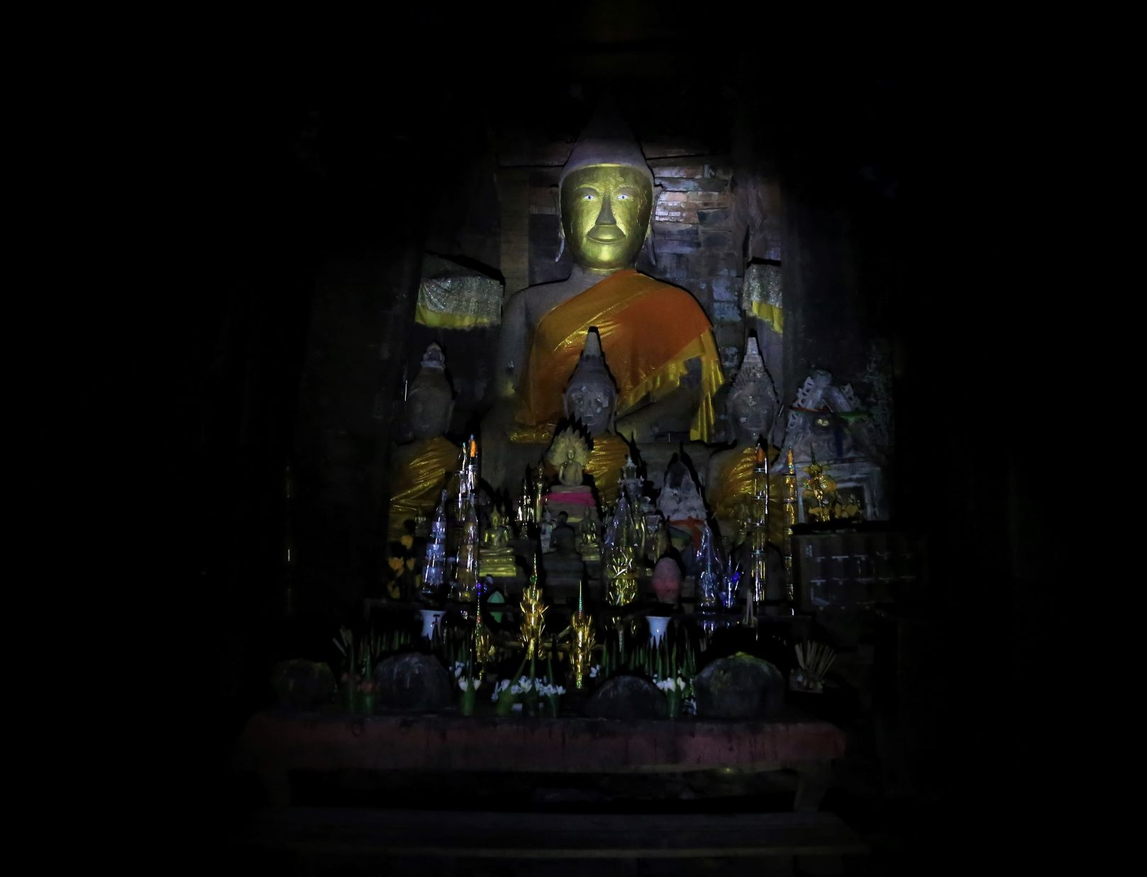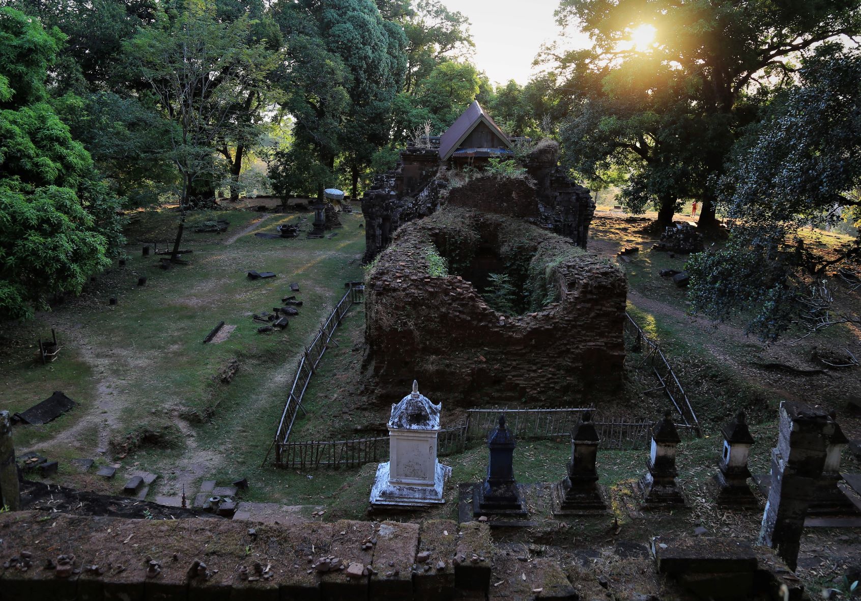 Von den zahlreichen Sehenswürdigkeiten in und außerhalb der Stadt besuchen wir letztendlich die zwei wohl wichtigsten: Die rund 20 Meter hohe, oben auf dem Berg sitzende Buddhafigur, 7 Kilometer nördlich hinter der Japanischen Brücke und nach dem Mittagsimbiss (schon in deutlich kleinerer 3er-Gruppe) den Tempel Wat Luang neben der Französischen Brücke, der eine buddhistische Schule und eine Bibliothek beherbergt und vor dem eine weiße, glockenförmige Stupa steht, die die Asche von Katay Don Sasorit enthält.