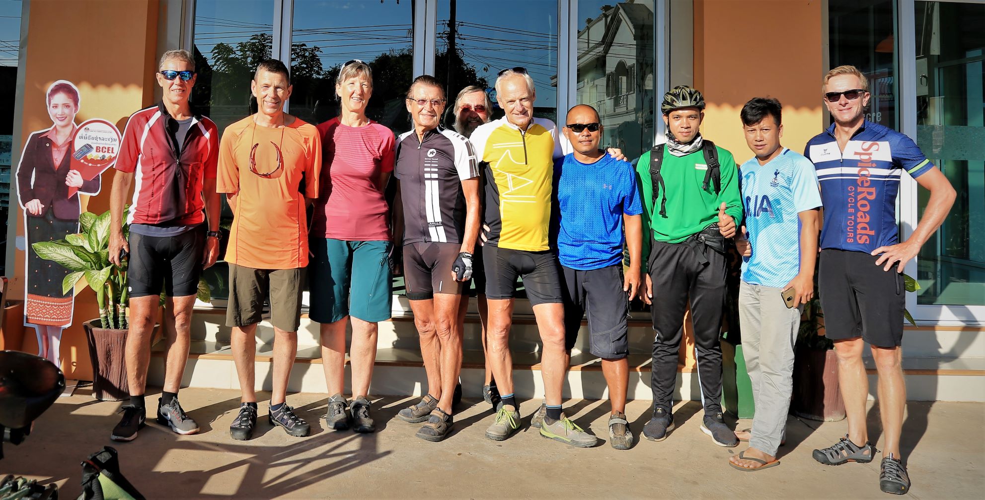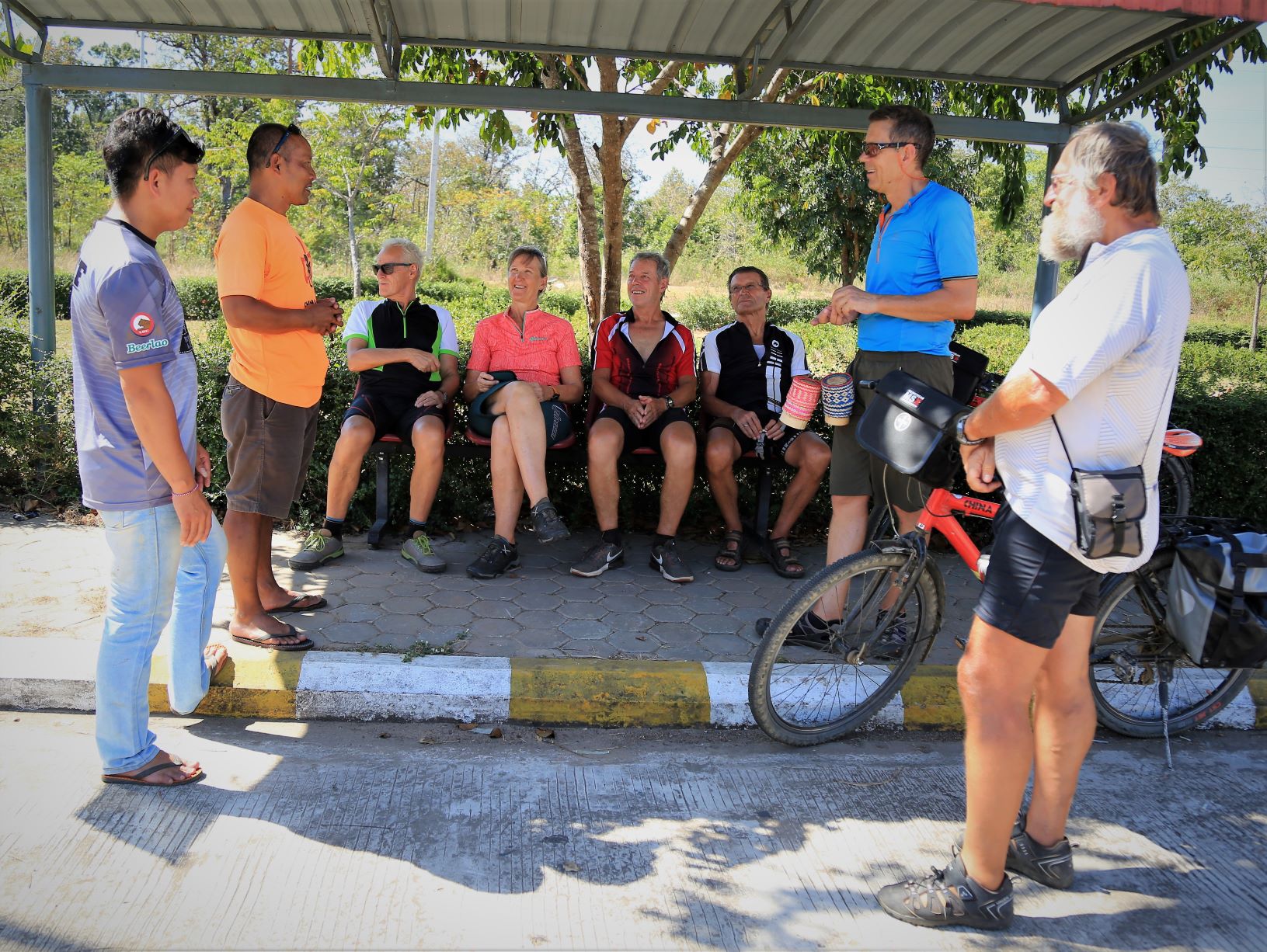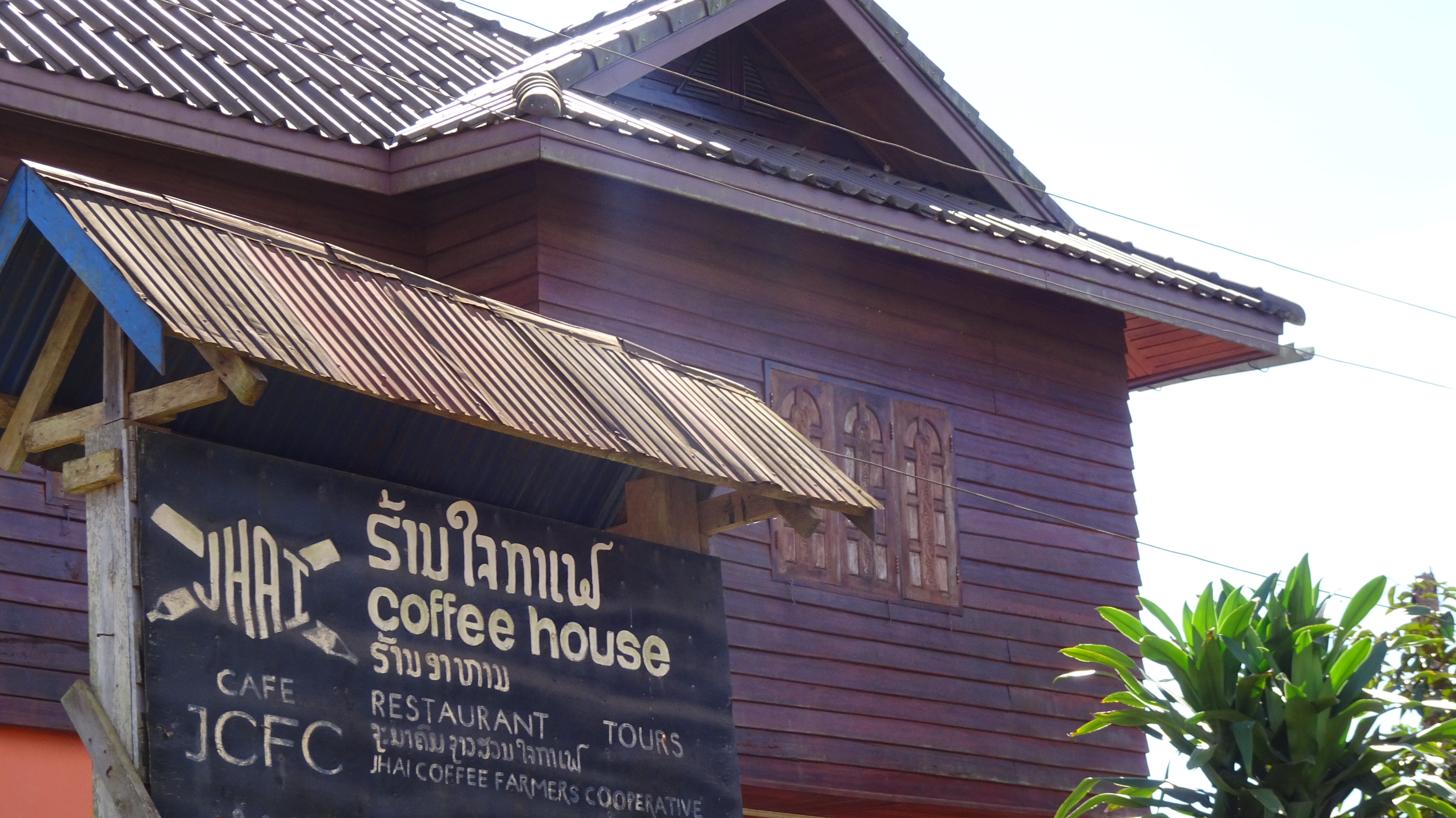 Nach über einer Stunde Fahrzeit (und spürbar bergauf) schauen wir immer öfter auf die Uhr und endlich fragt jemand: Simmer bald daaa? Aber ja, doch erst nach 90 Minuten bzw. 51 km stoppen wir in Paksong – an einem Kaffeeverkaufshäuschen!