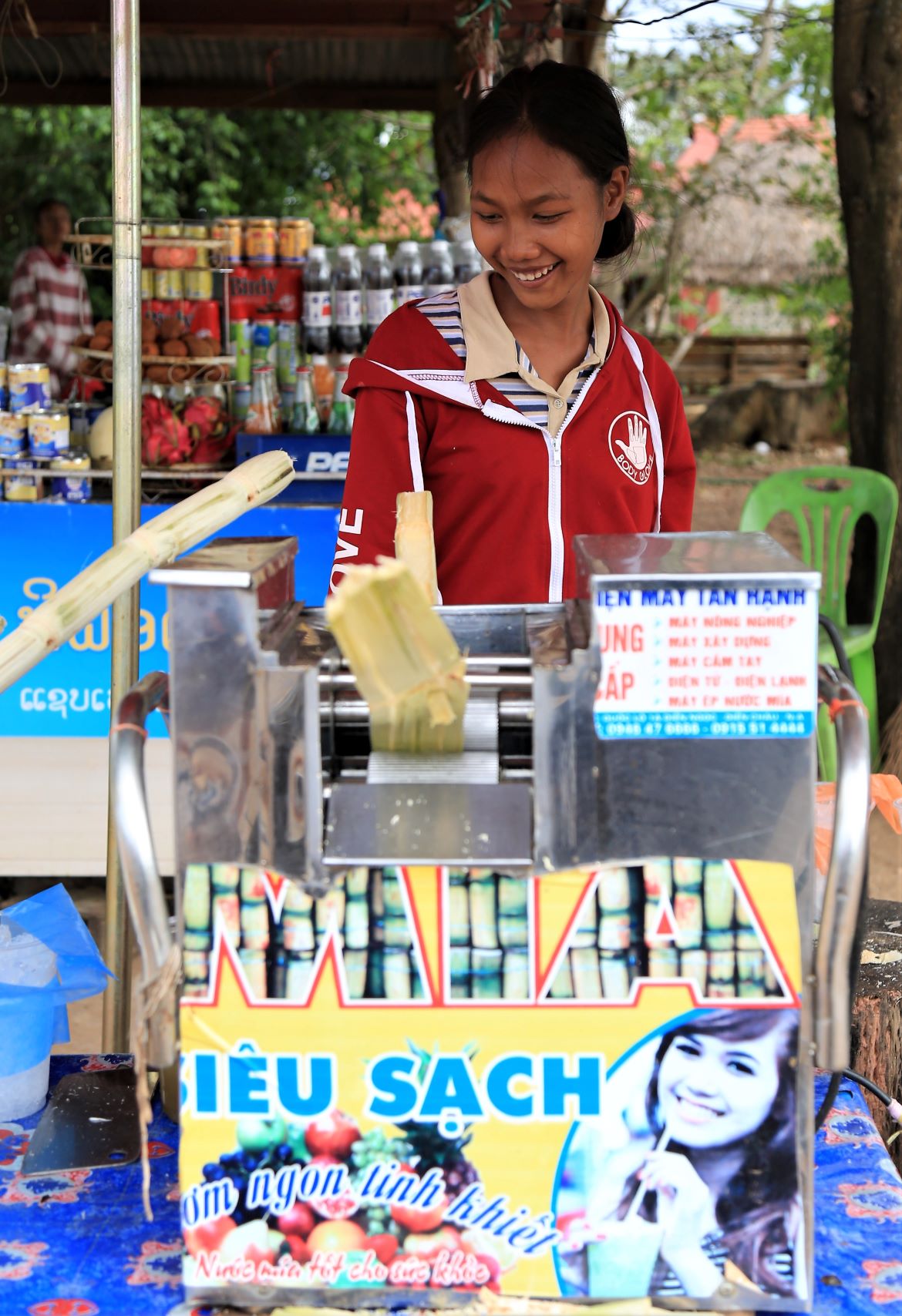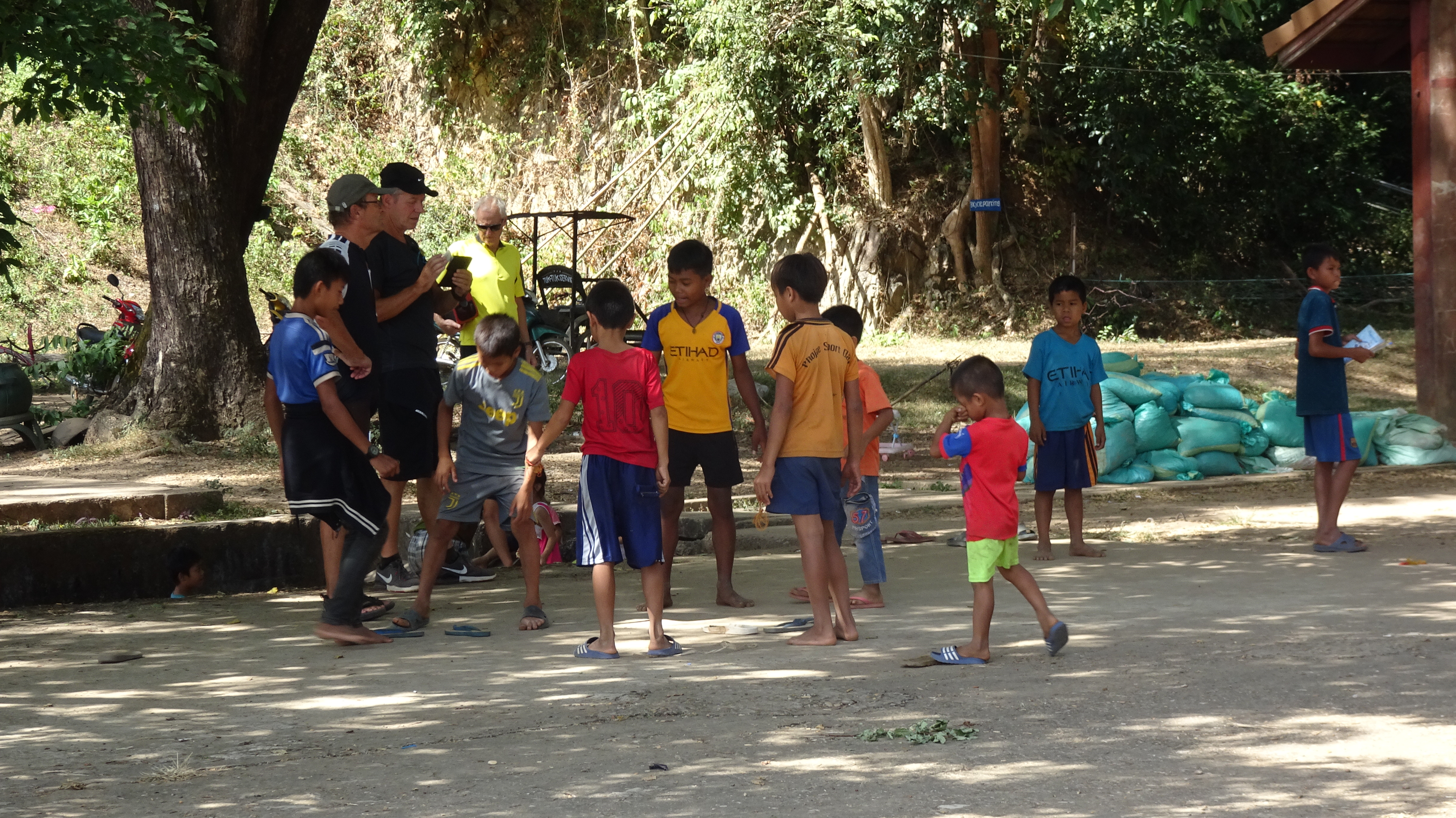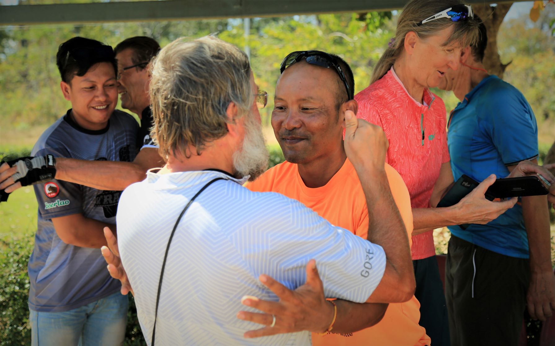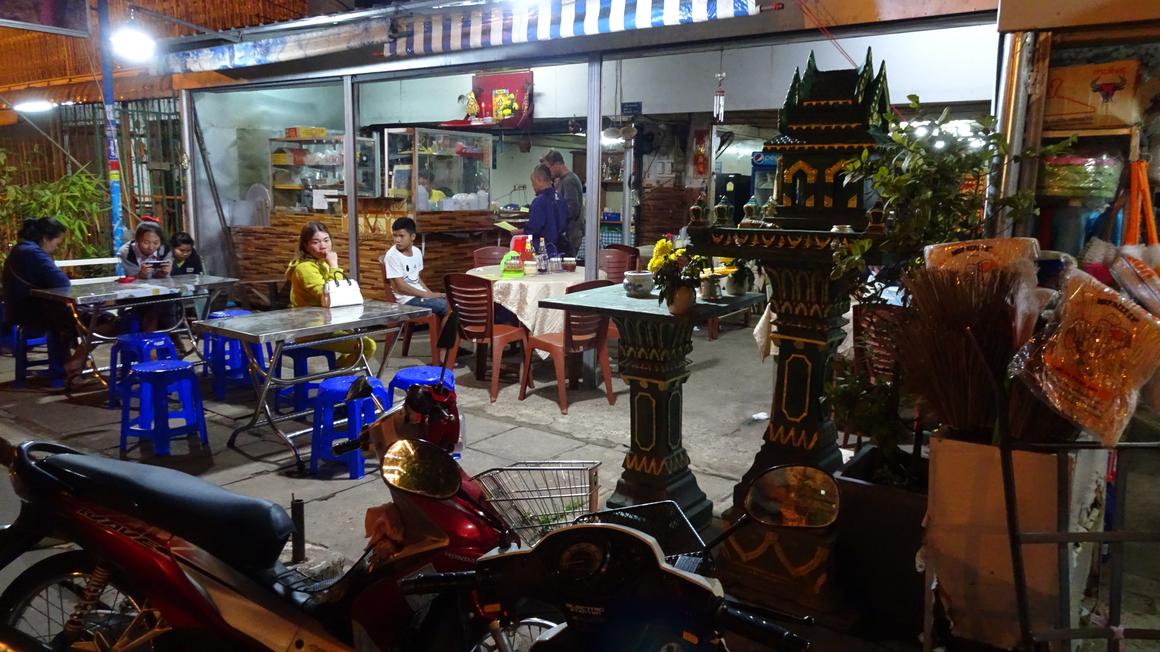 Nach über einer Stunde Fahrzeit (und spürbar bergauf) schauen wir immer öfter auf die Uhr und endlich fragt jemand: Simmer bald daaa? Aber ja, doch erst nach 90 Minuten bzw. 51 km stoppen wir in Paksong – an einem Kaffeeverkaufshäuschen!