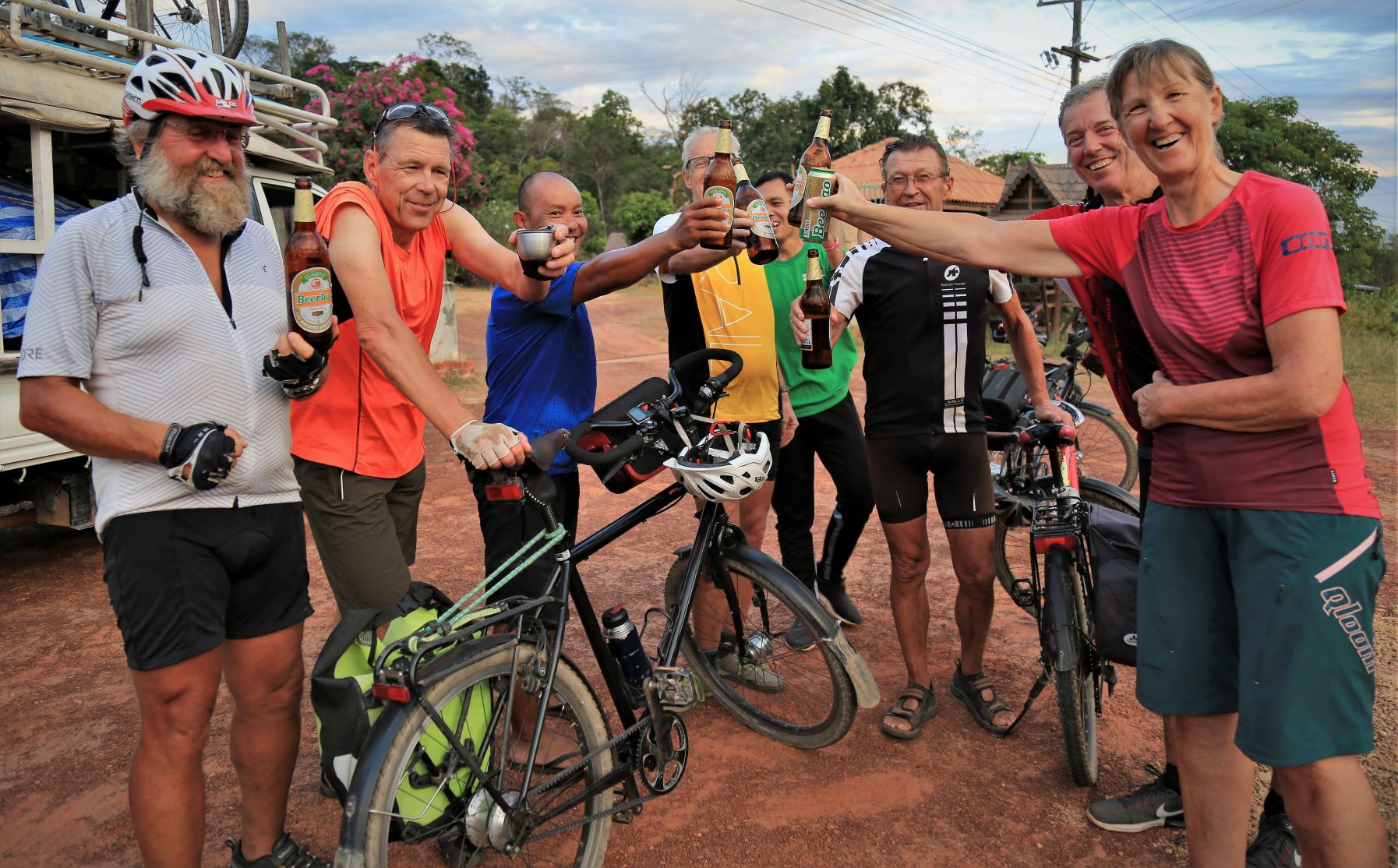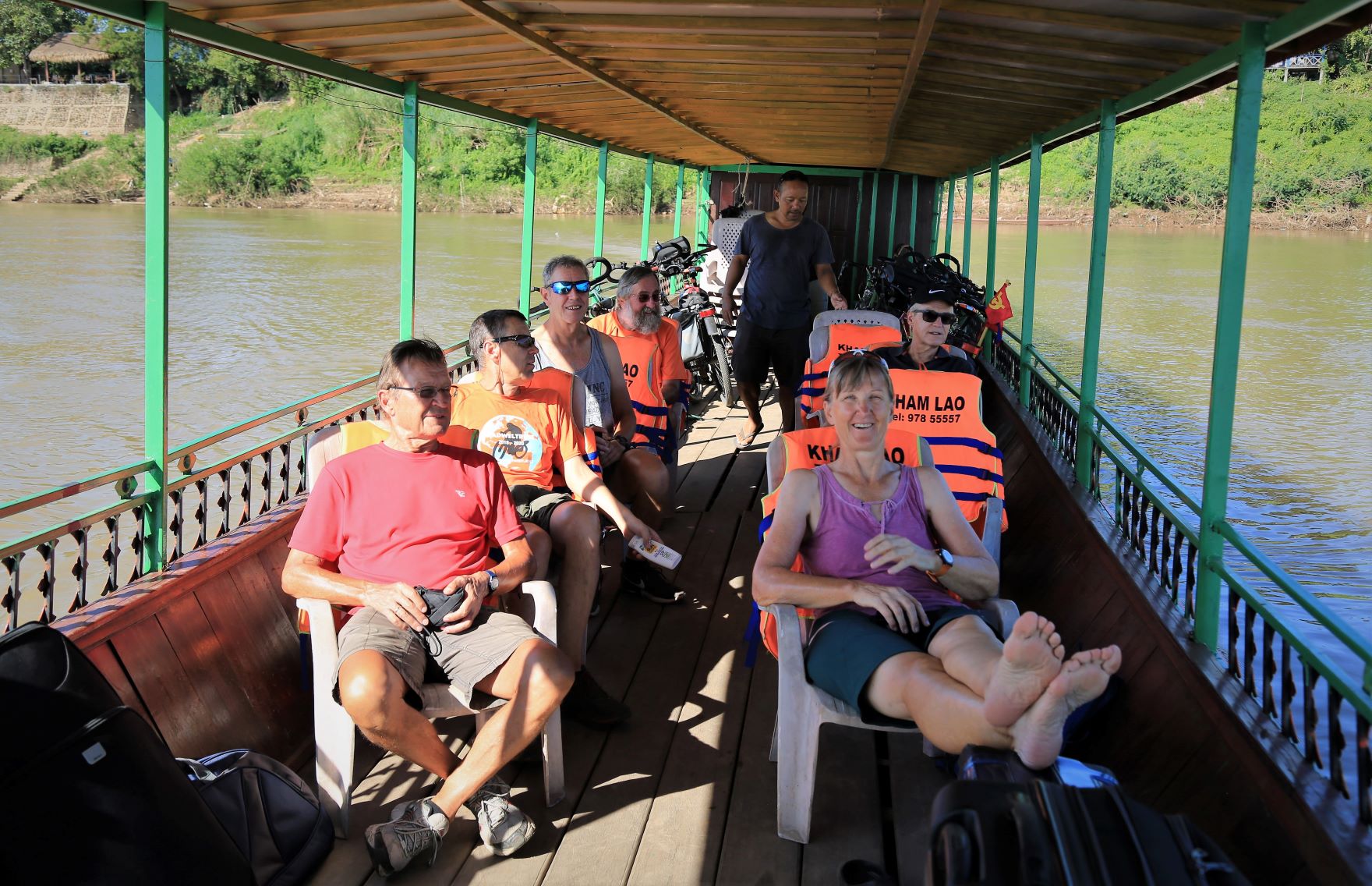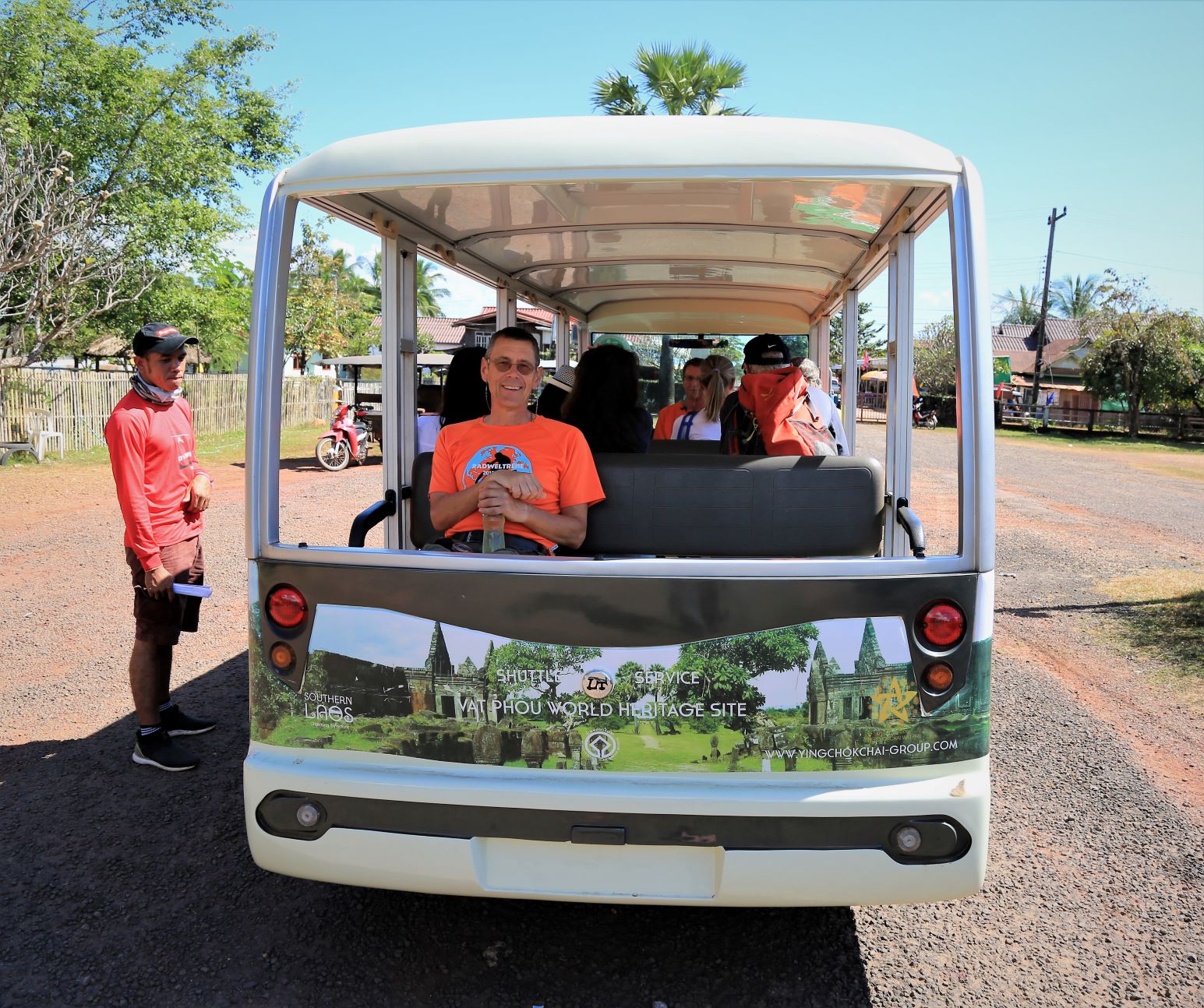 Wir lassen heute die Fahrräder ausruhen und setzen uns auf die schmalen Bänke des Begleitfahrzeuges.