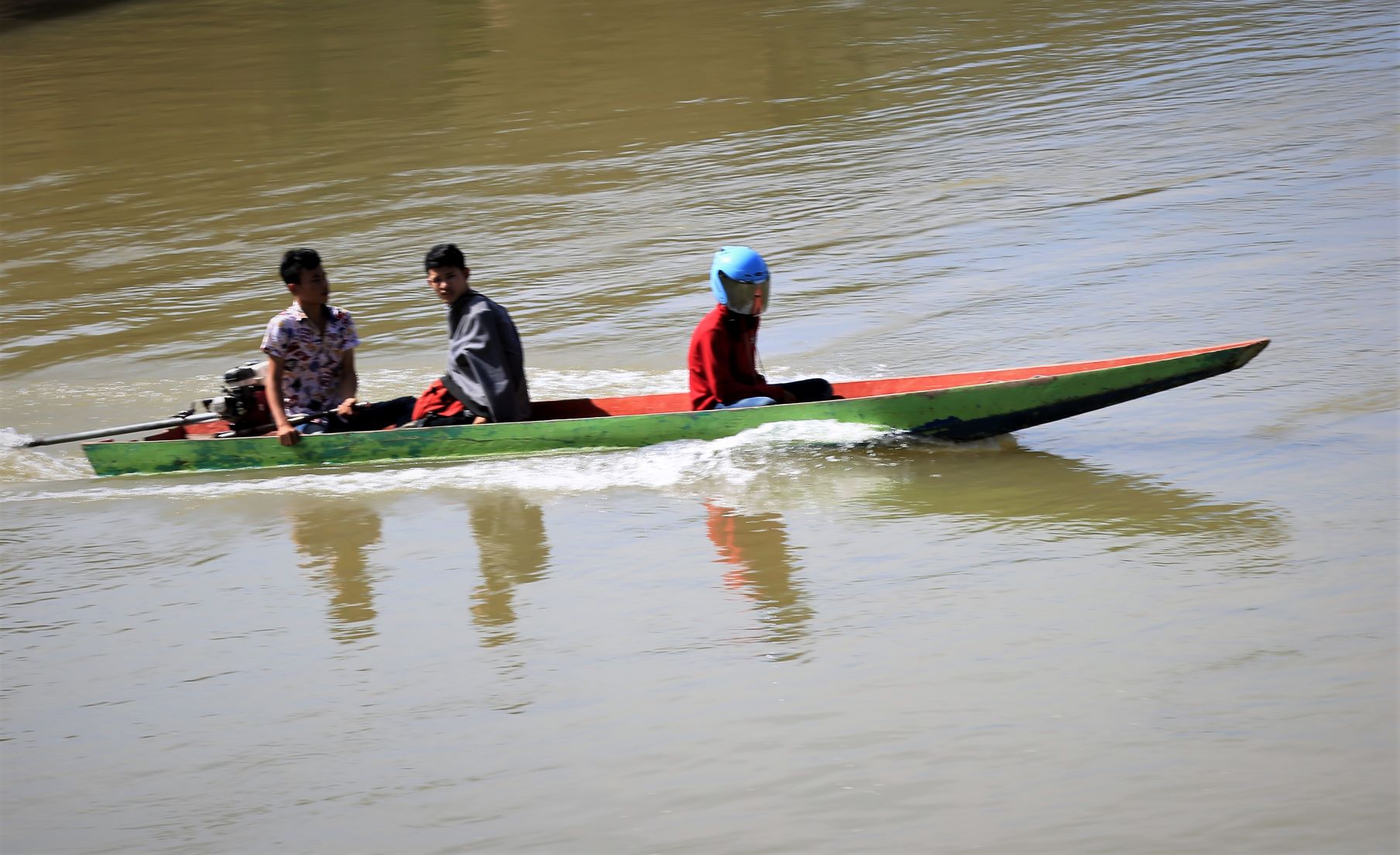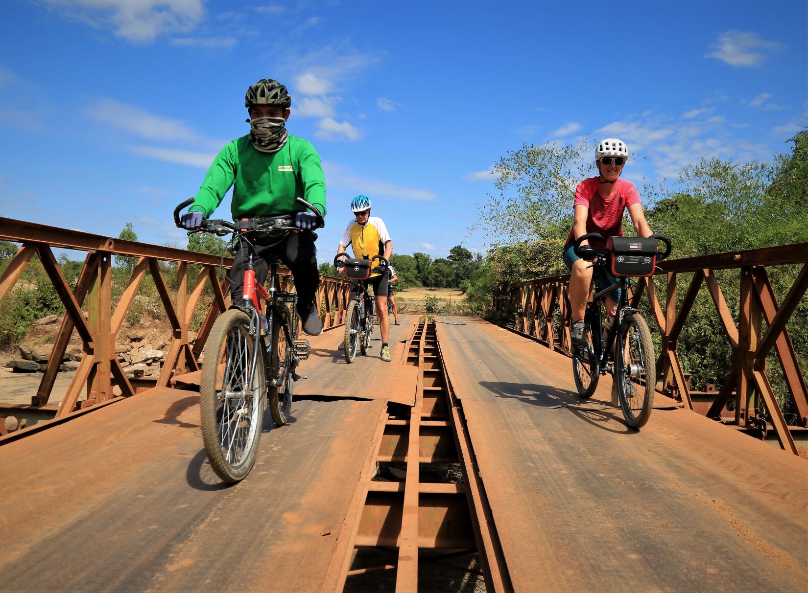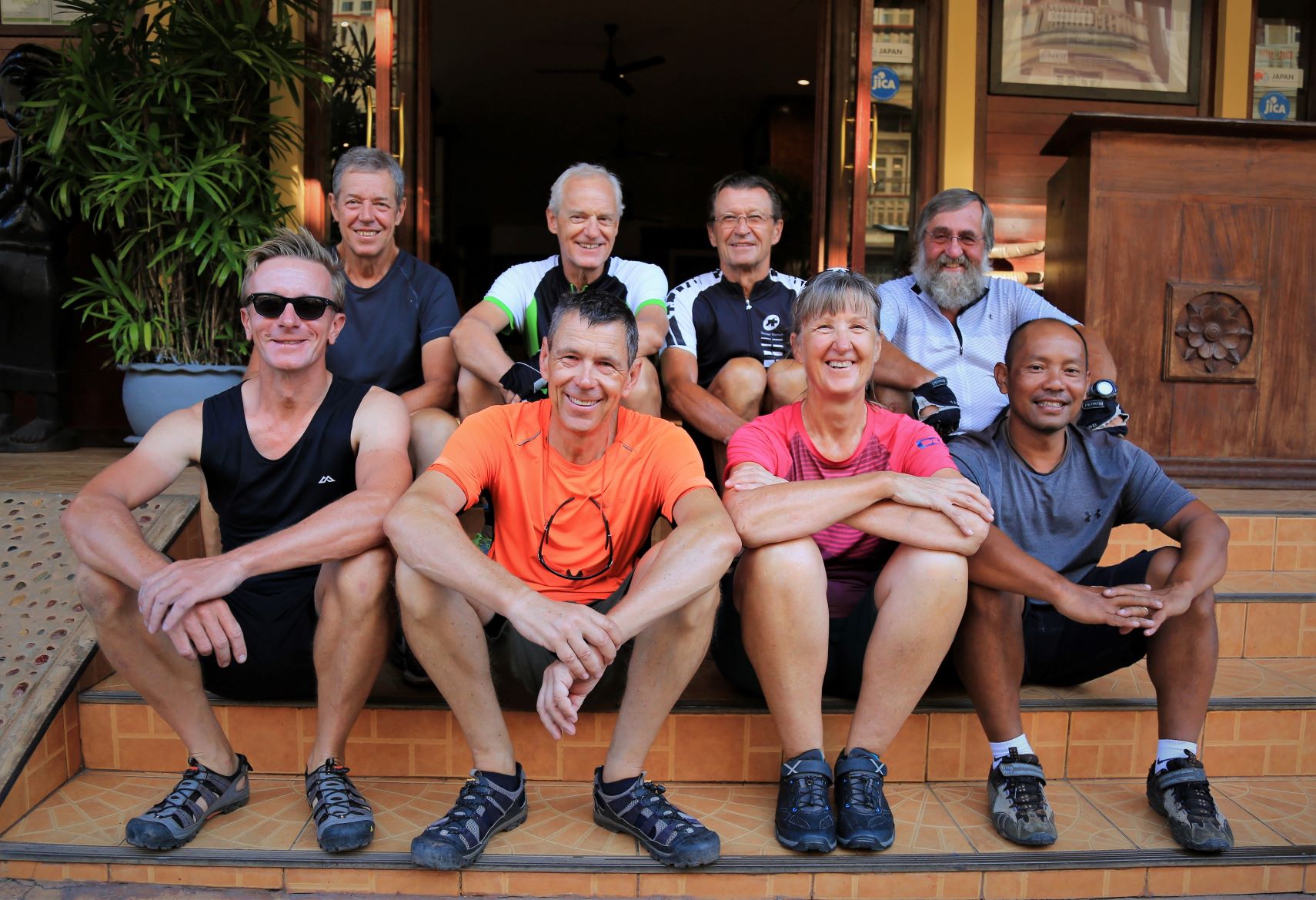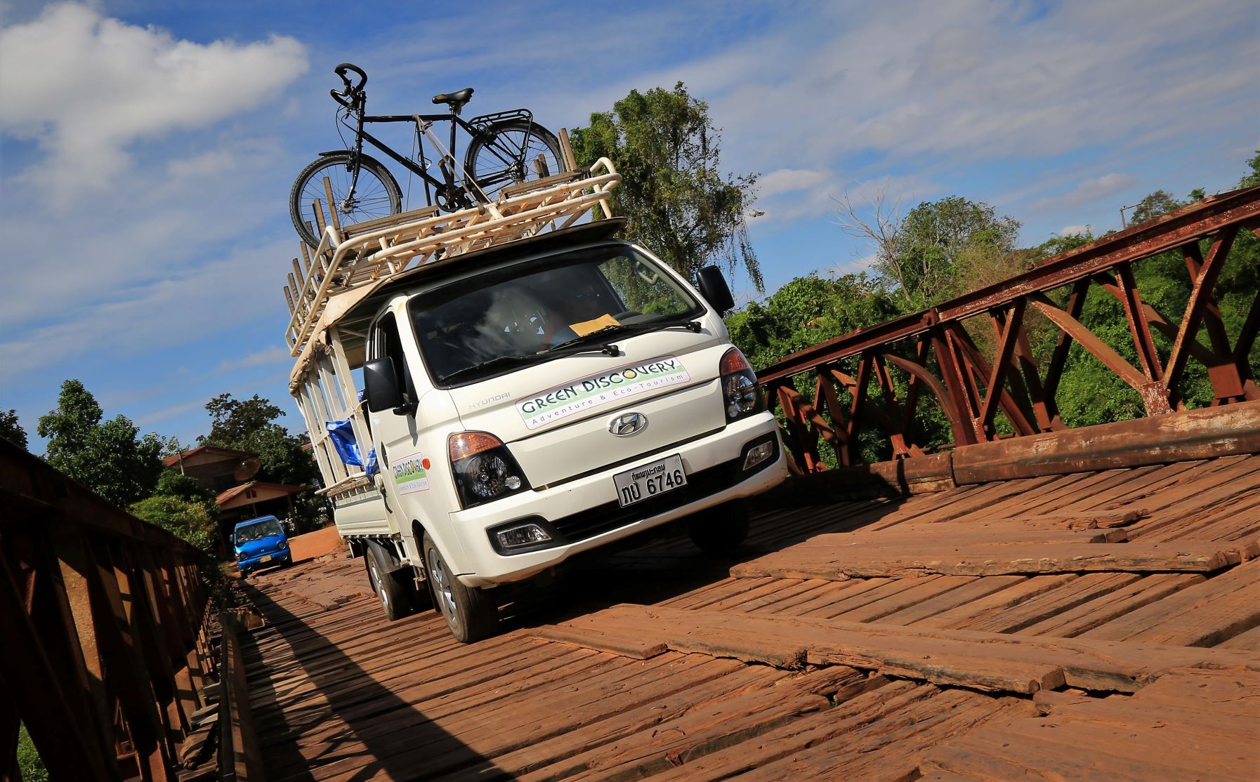 Wir lassen heute die Fahrräder ausruhen und setzen uns auf die schmalen Bänke des Begleitfahrzeuges.