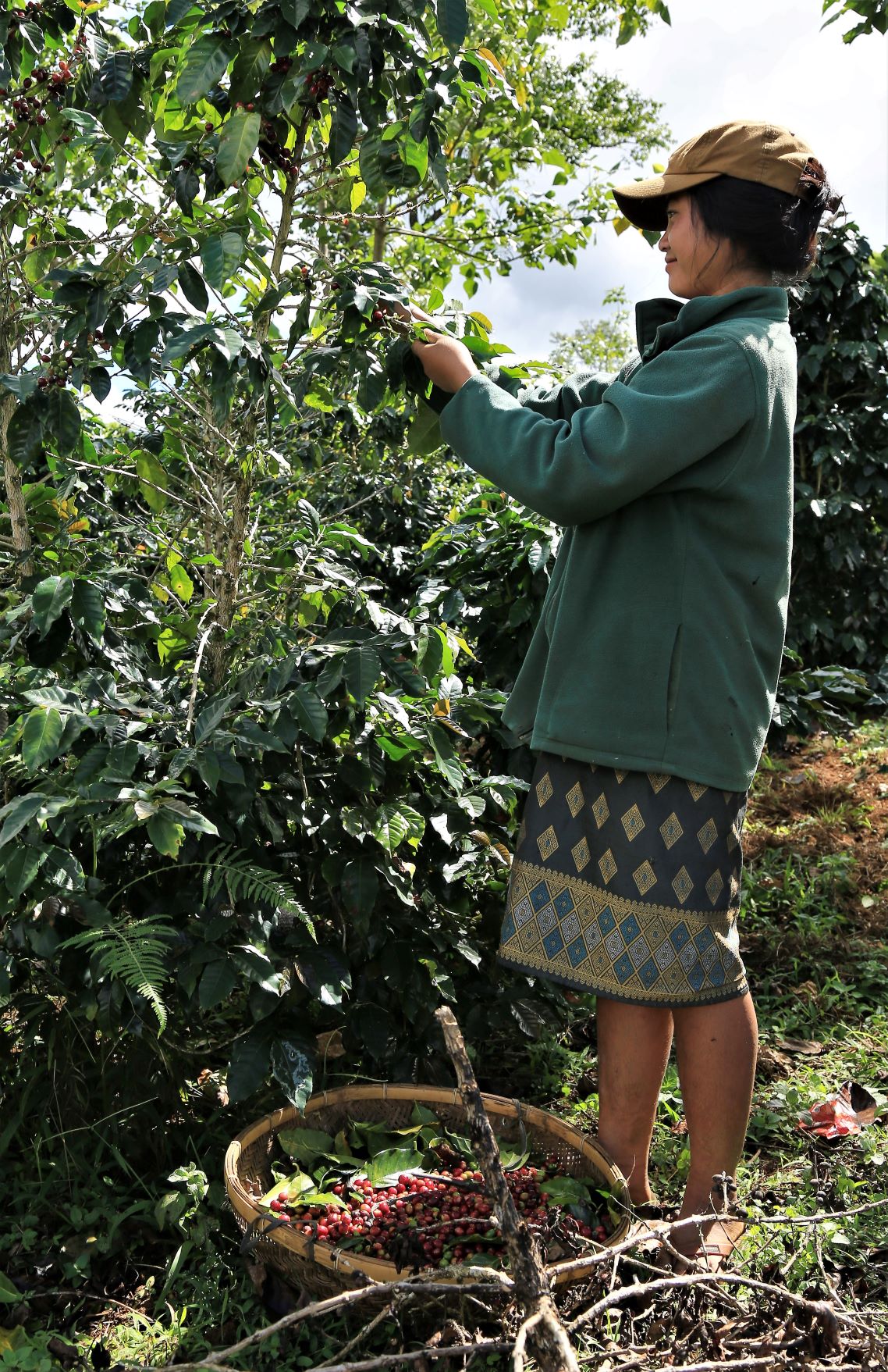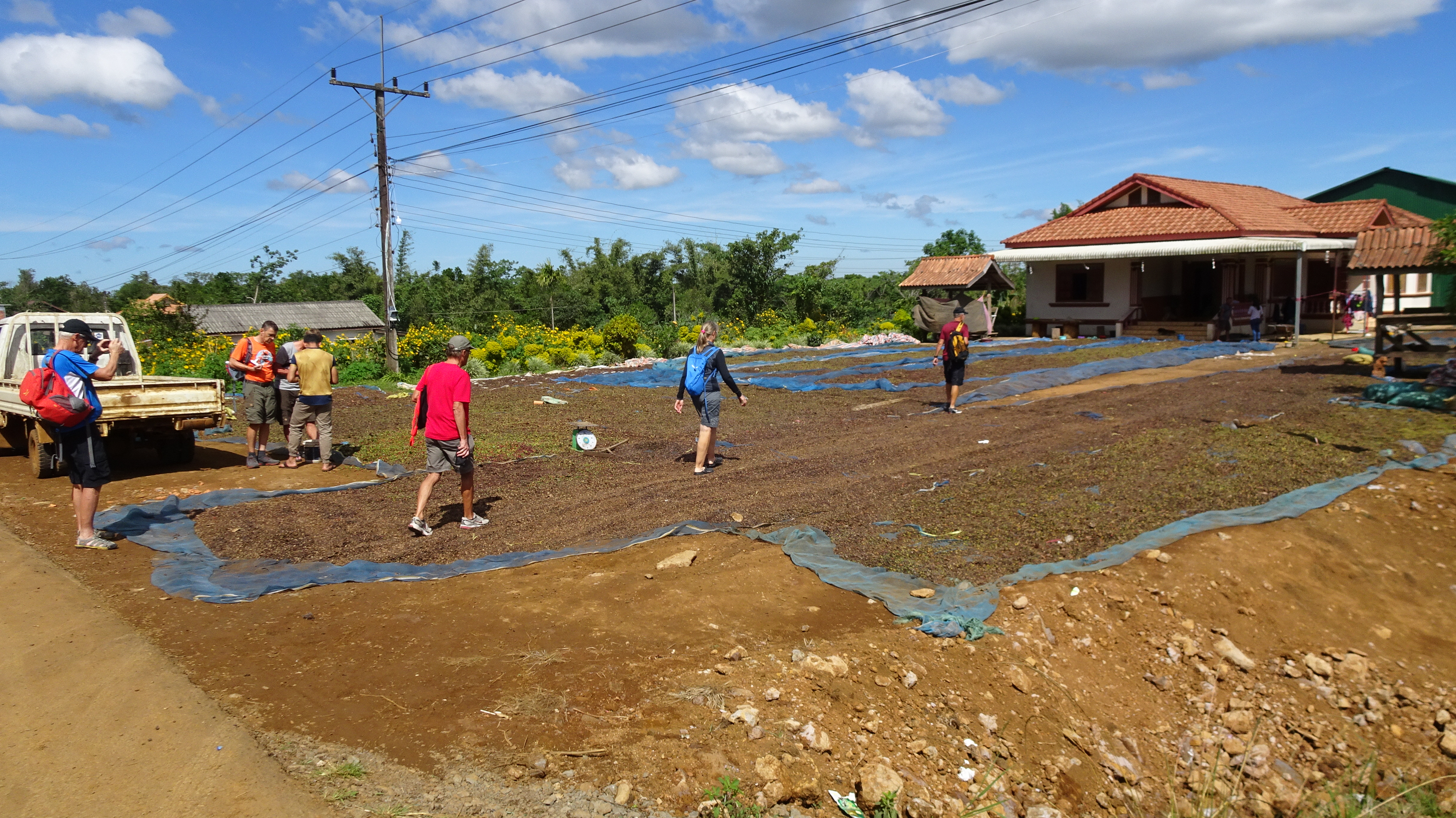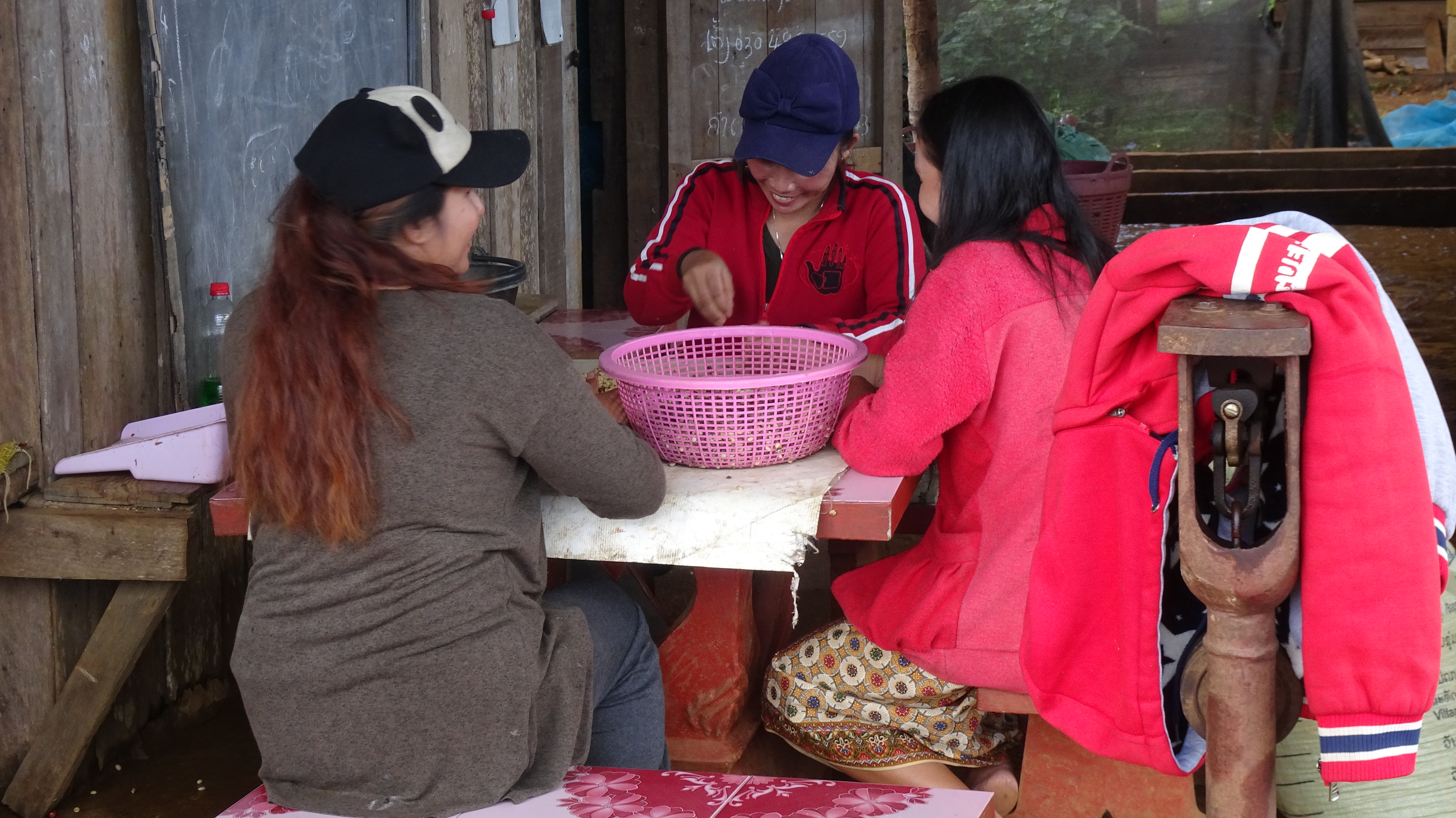 Ein paar Kilometer weiter an einer anderen Kaffeefarm in Ban Houayman können wir dann aber mehr sehen und erfahren. Die Arbeiter/innen empfangen uns freundlich, betrachten unsere Fotografiererei aber ein wenig skeptisch.
