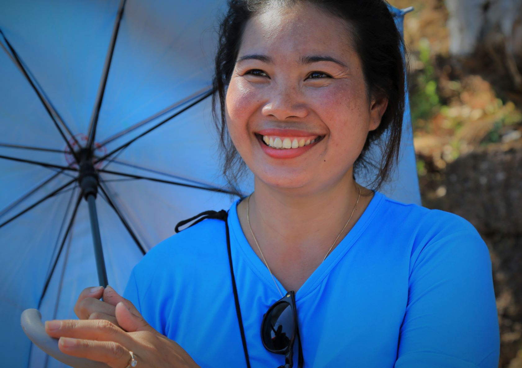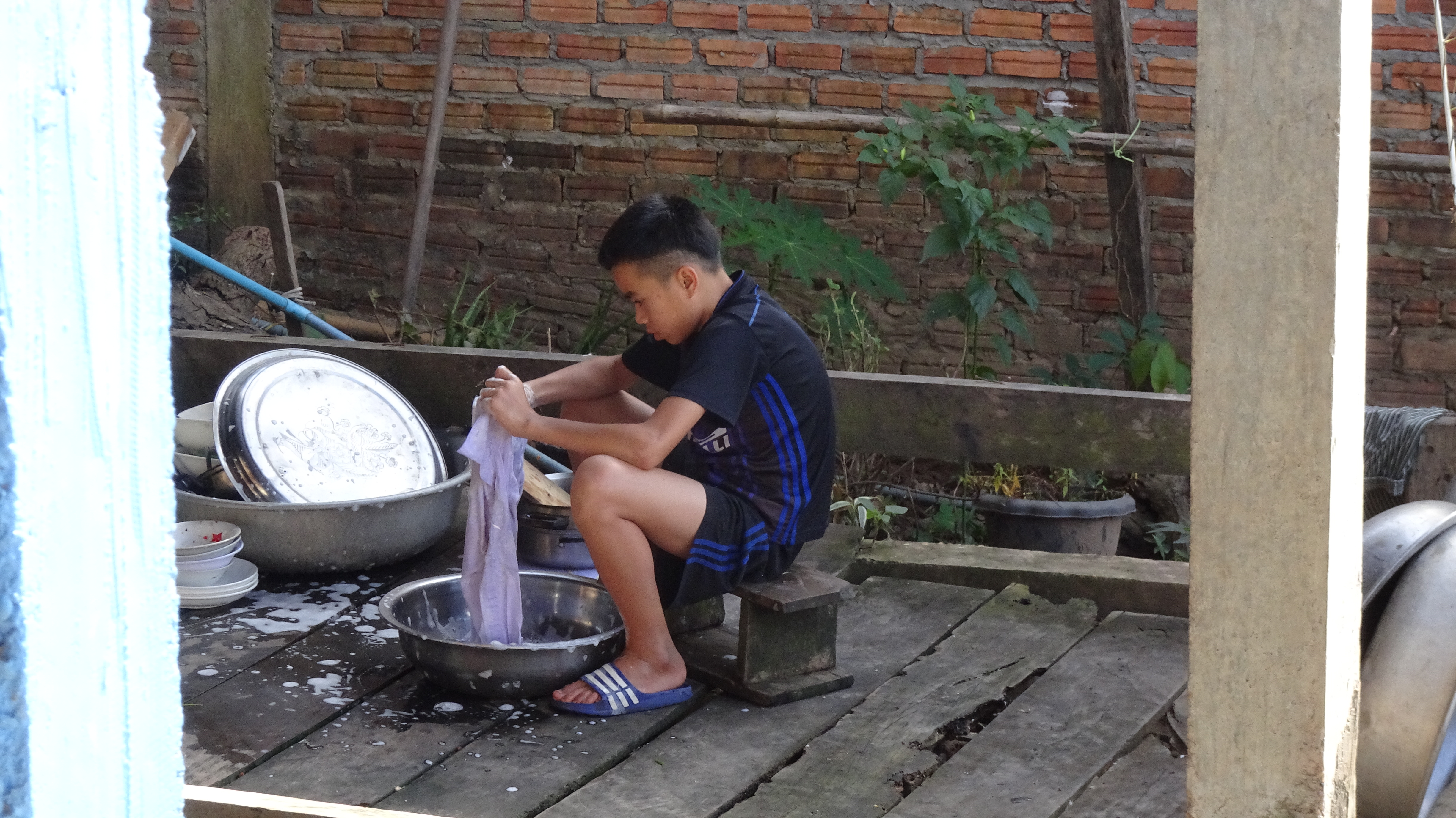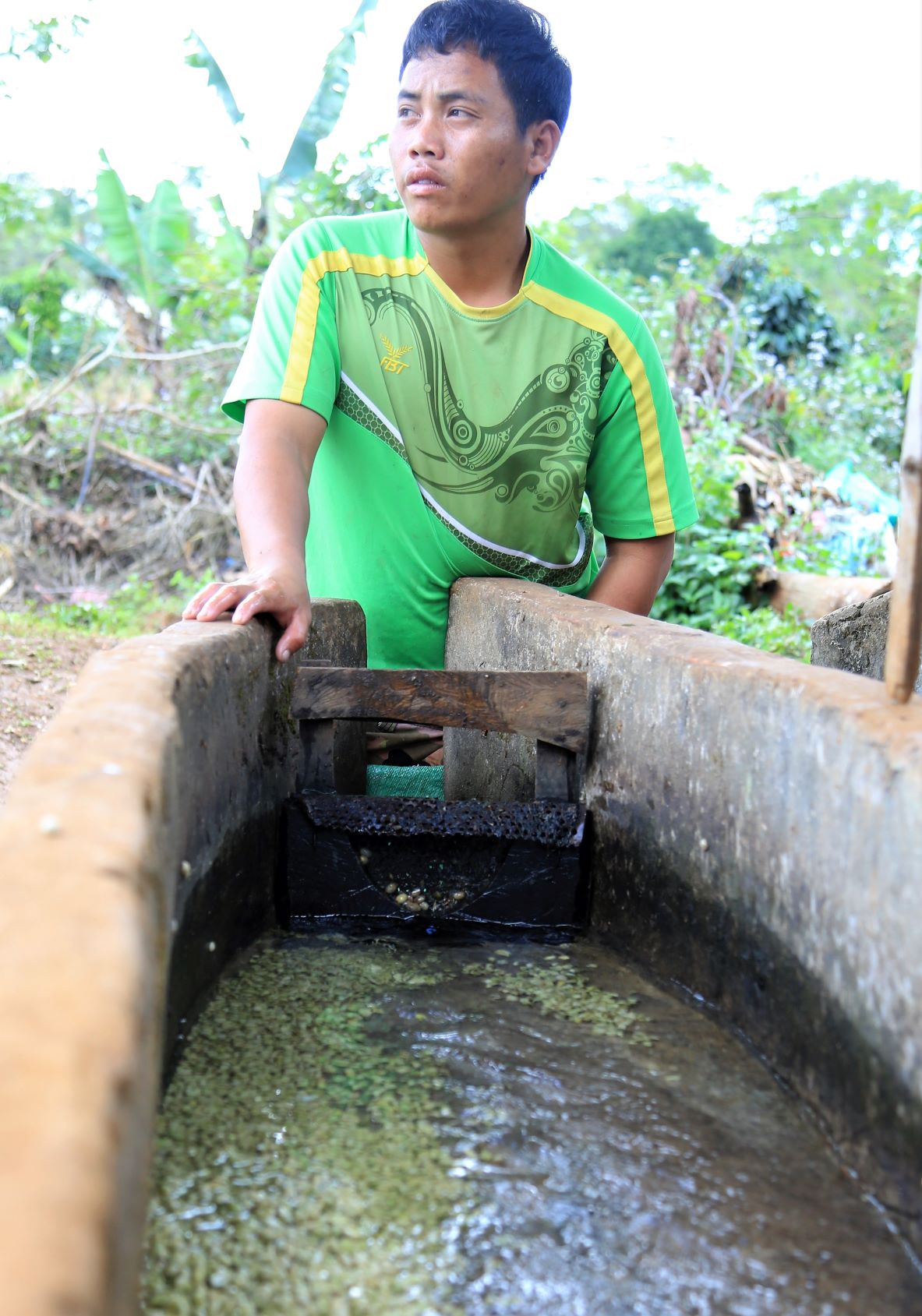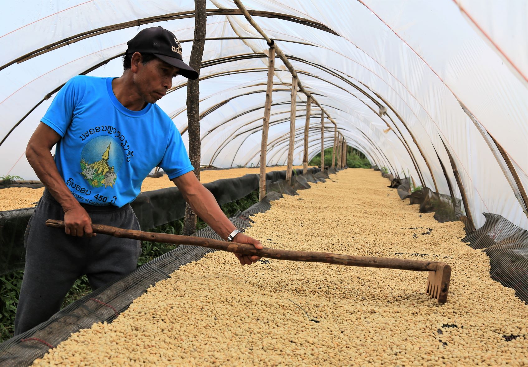 Ein paar Kilometer weiter an einer anderen Kaffeefarm in Ban Houayman können wir dann aber mehr sehen und erfahren. Die Arbeiter/innen empfangen uns freundlich, betrachten unsere Fotografiererei aber ein wenig skeptisch.