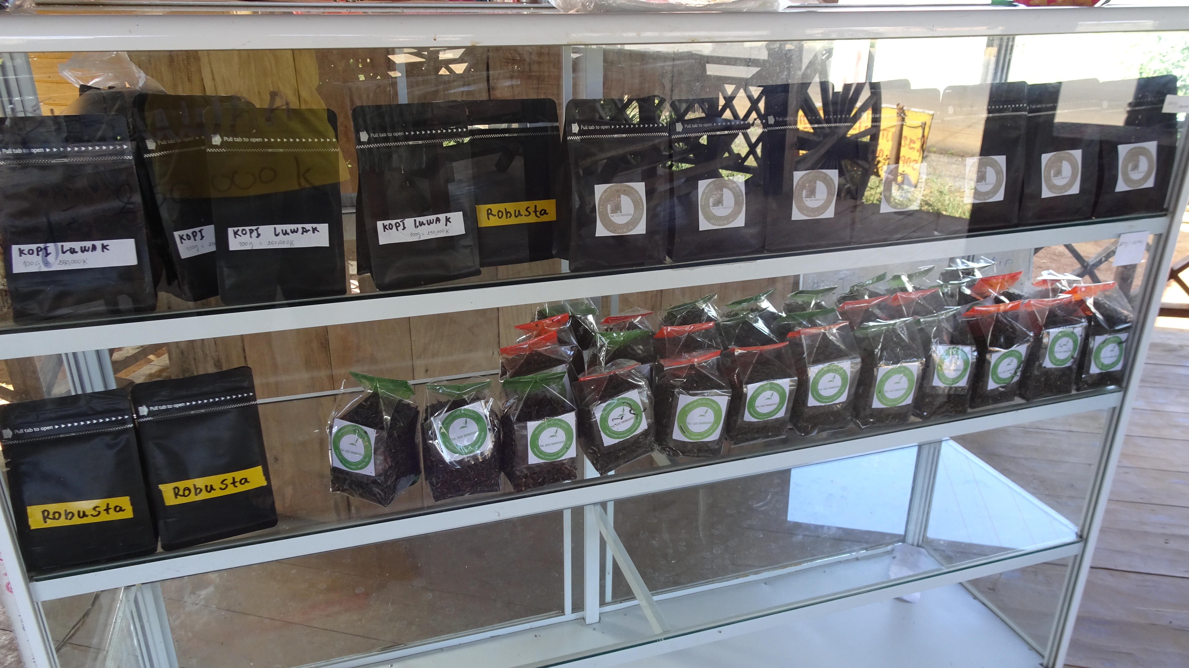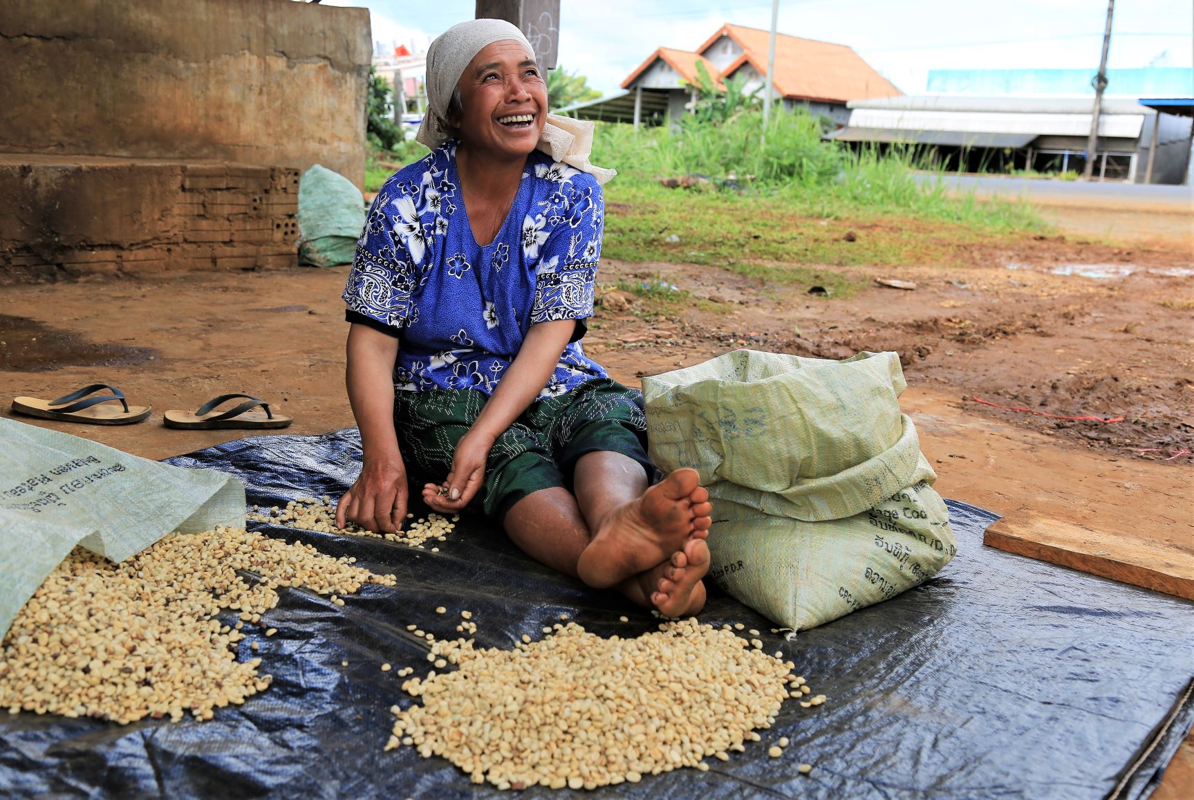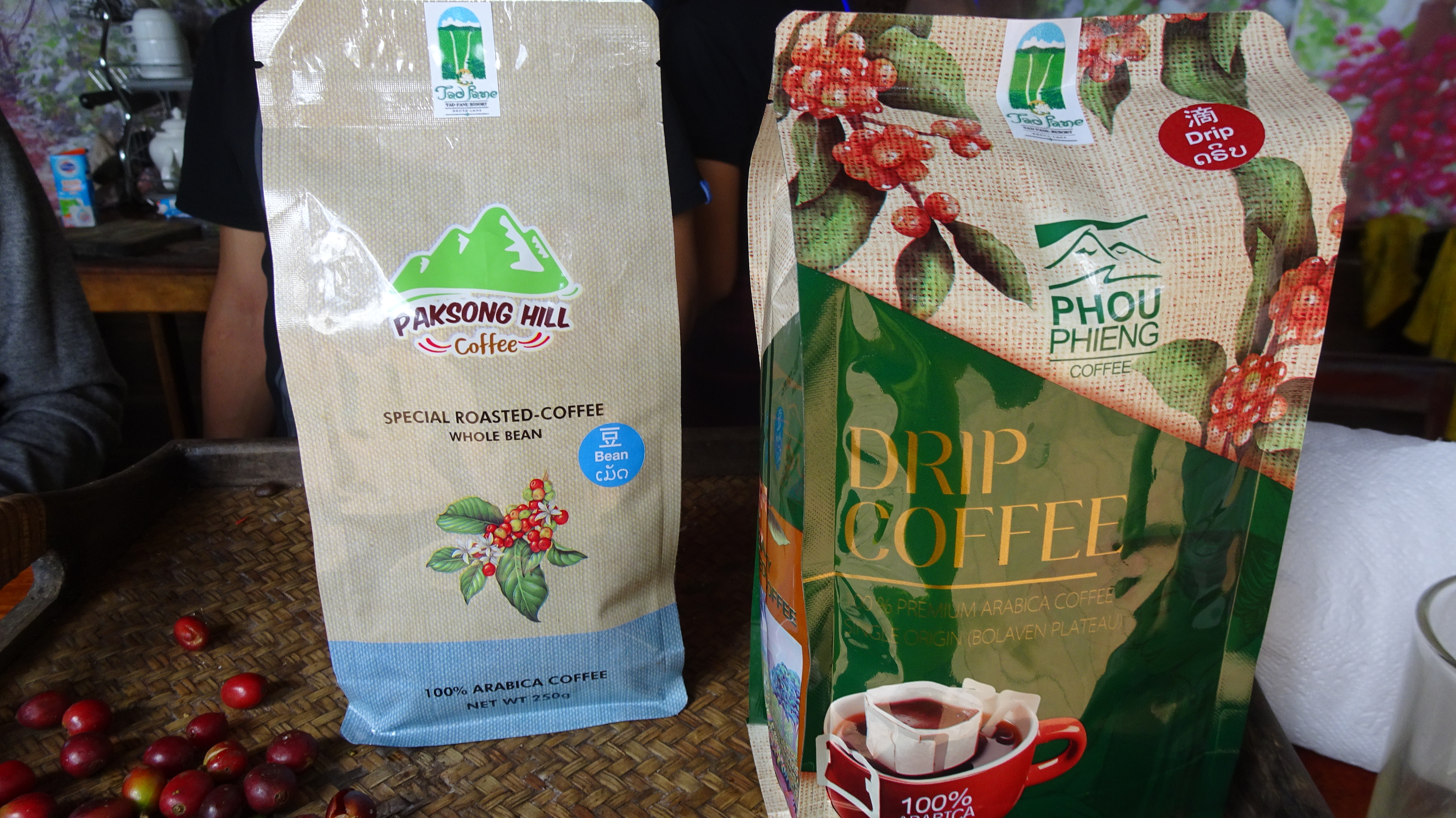 Die Farmer bekommen pro Kilogramm Rohkaffe 10.000 bis 15.000 Kip. Verkauft wird dann der geröstete und in bunte 200g-Tütchen verpackte Bohnenkaffe für 150.000 bis 350.000 Kip pro Kilo.