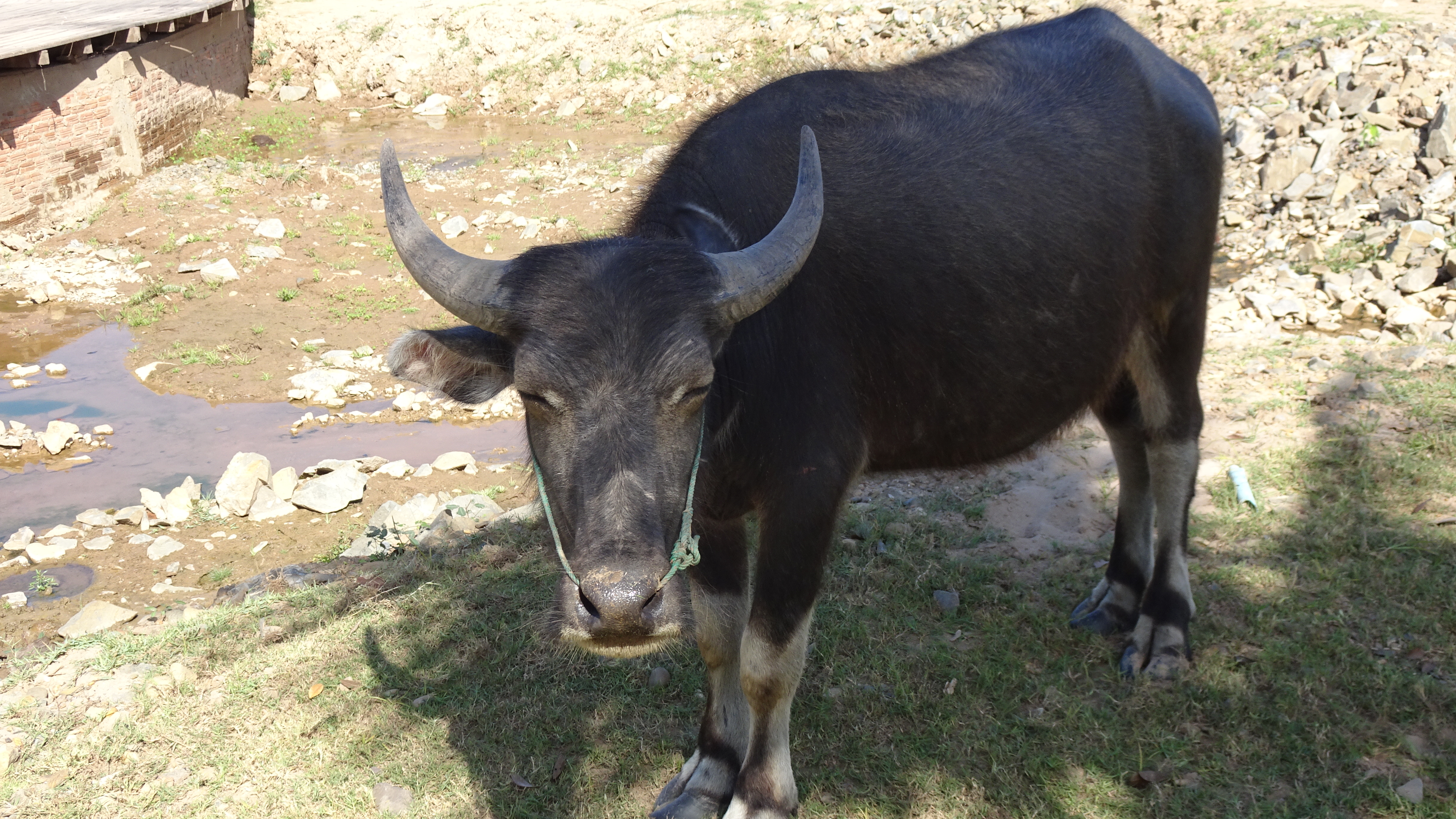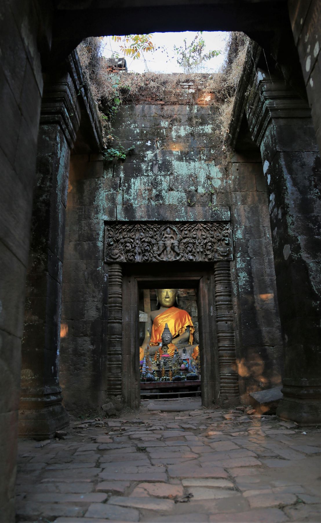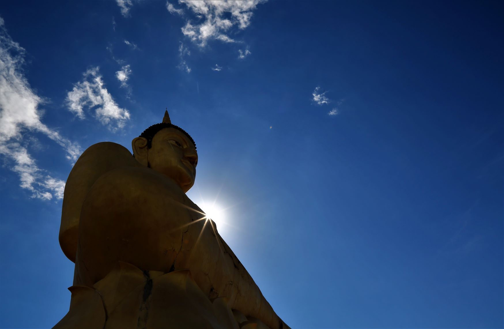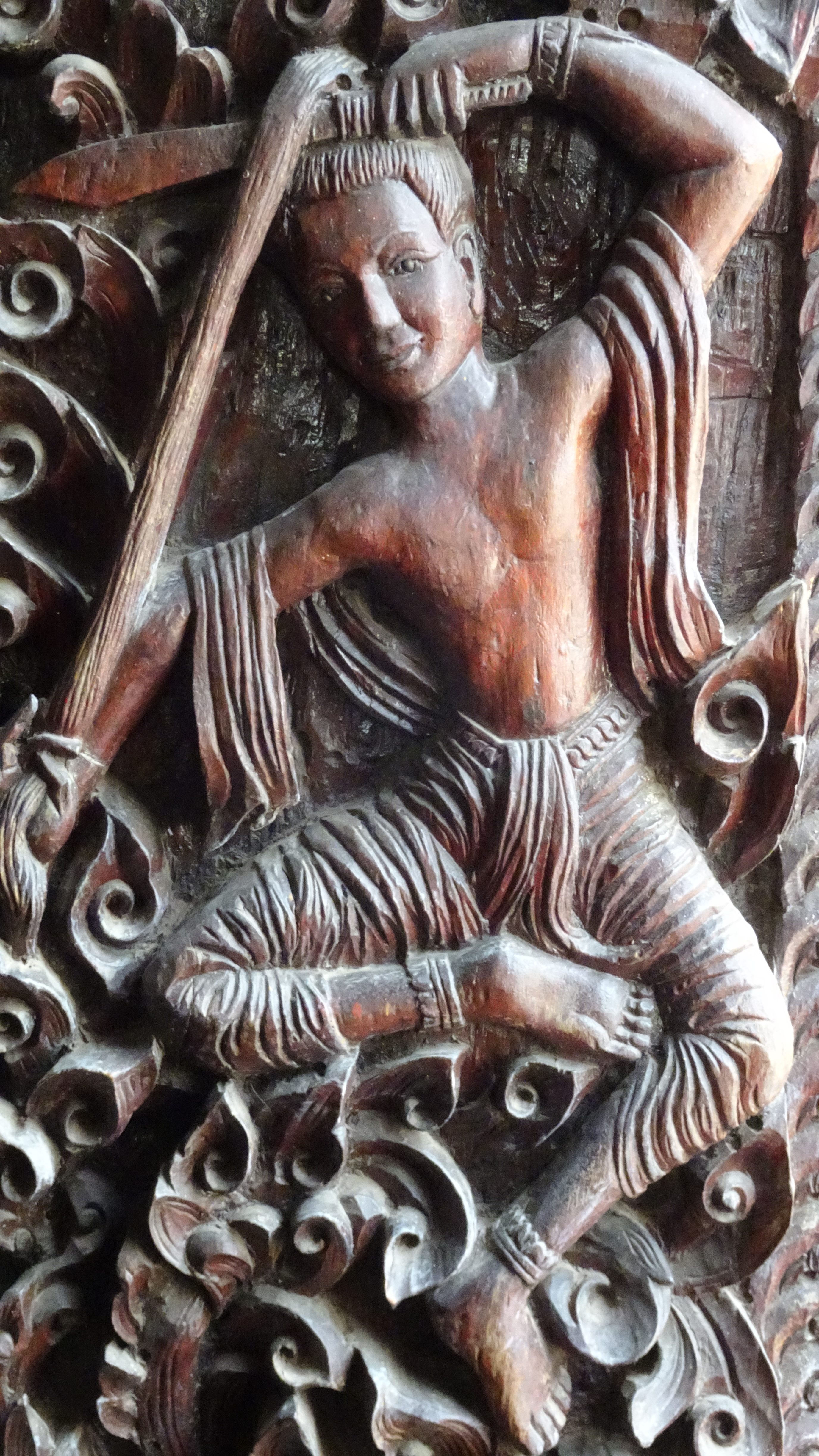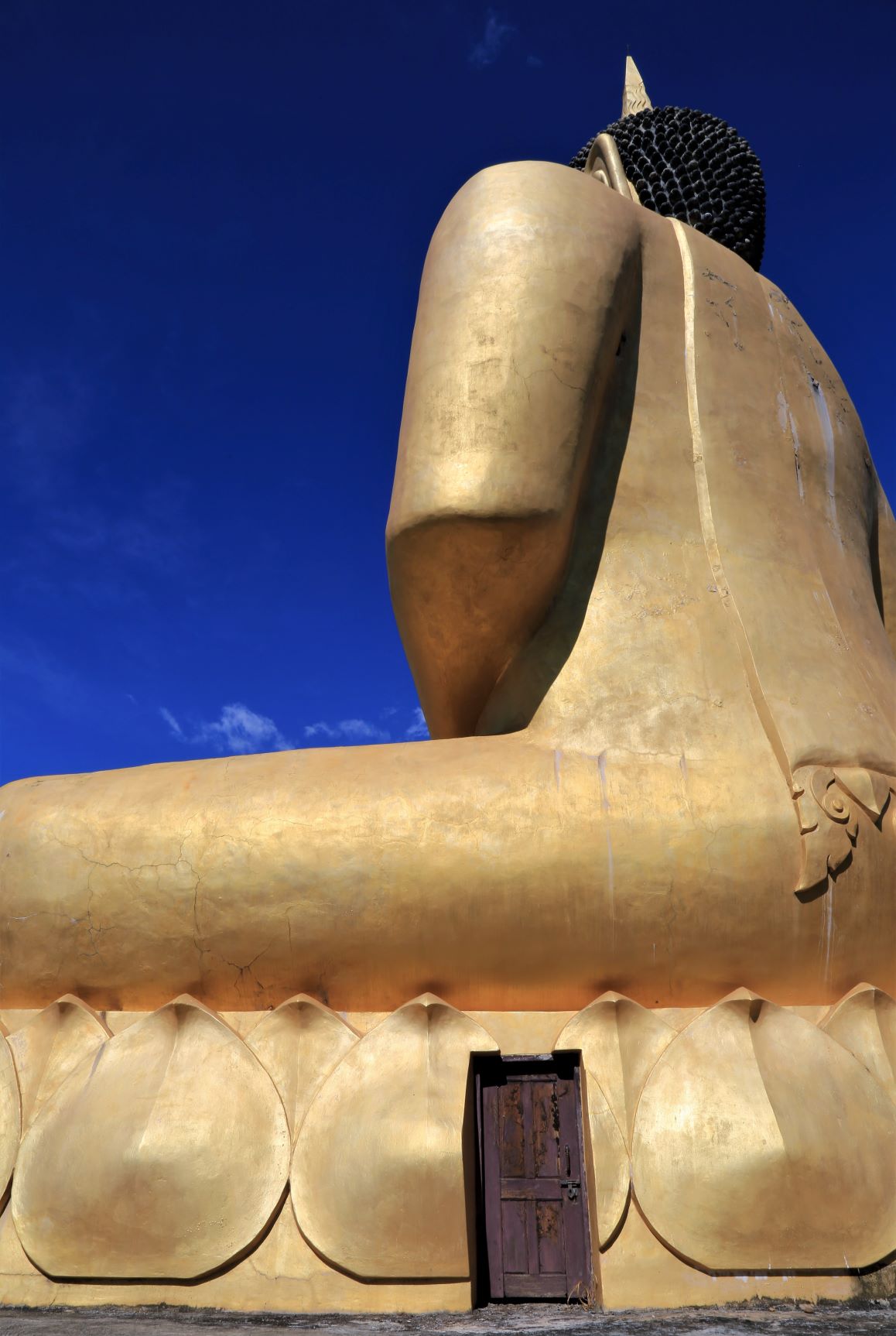 Die Rückfahrt in die Stadt ist dann insgesamt auch nicht kürzer als die Hinfahrt, aber es geht immerhin mal wieder „tendenziell bergab“. Außer zum Buddha, zu dem führt die Straße einige Höhenmeter hinauf. Wir sind ein bißchen froh, daß Kham uns da hinaufbugsiert und wir so die unendlich lange Treppe in der Mittagshitze nur vom Weiten sehen.