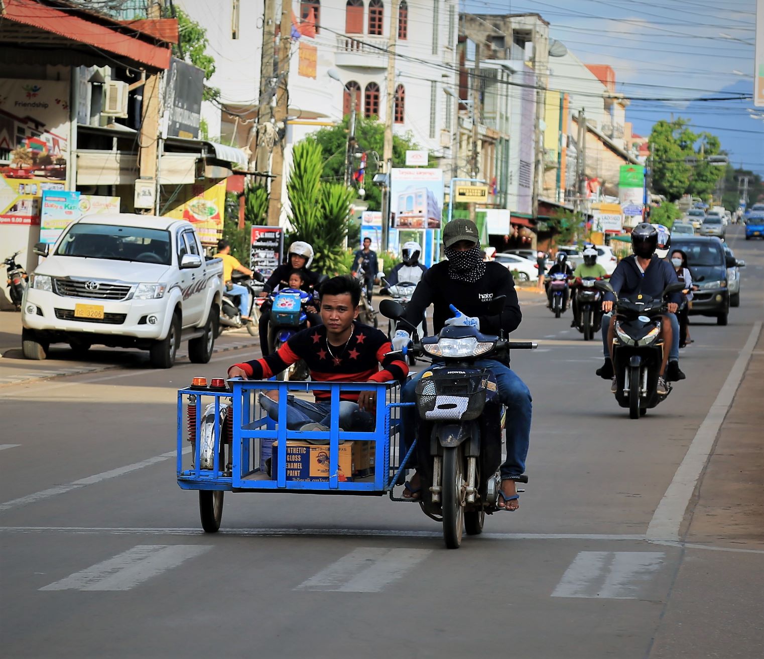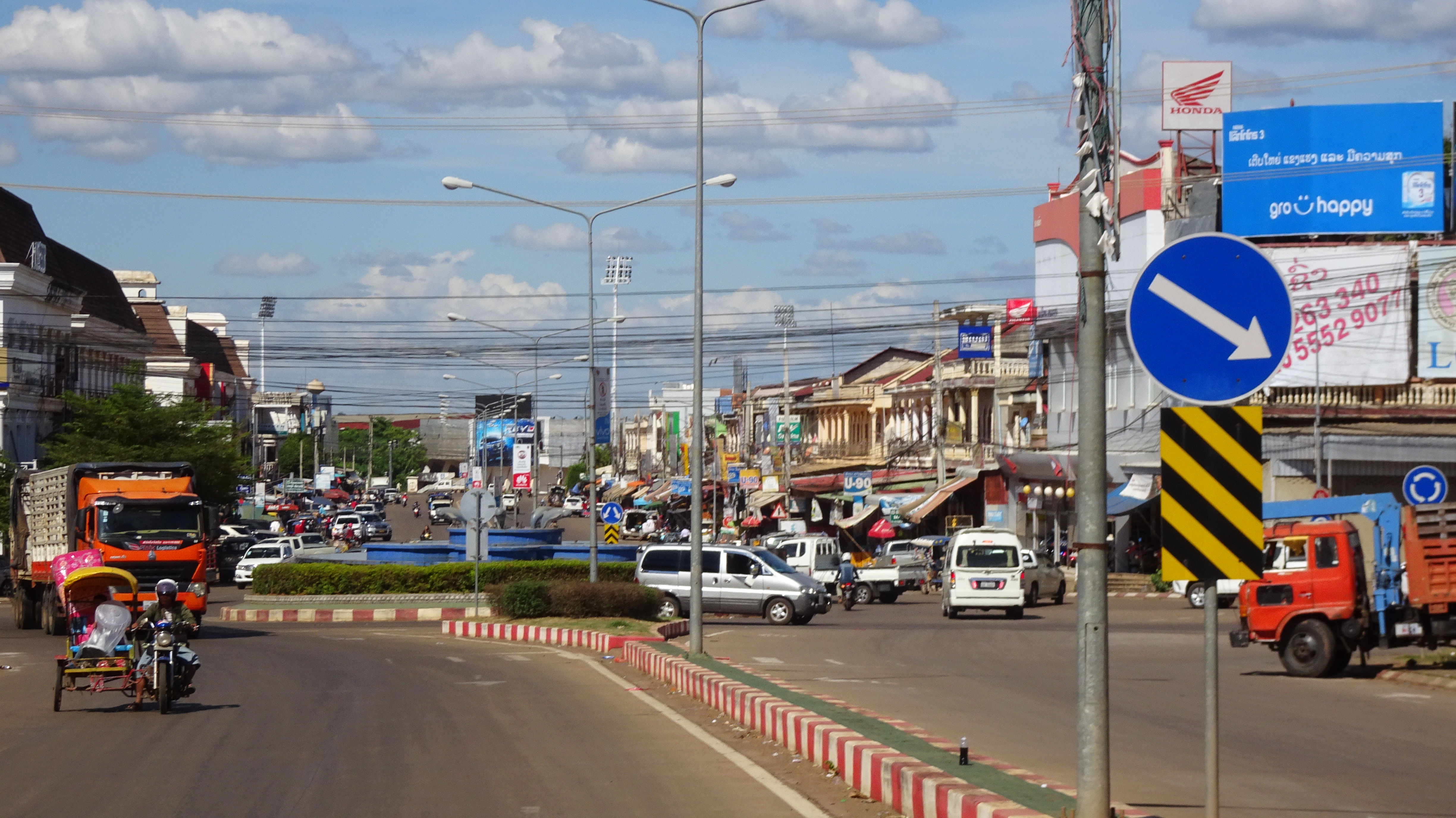 Durch den Ausbau der Nationalstraße 13 (wir haben ab Ventiane hunderte Kilometer davon abgeradelt) sowohl nach Zentral- und Nordlaos als auch zur kambodschanischen Grenze, durch den Ausbau der Straßen in die Hauptstädte der benachbarten Provinzen sowie durch den Bau der südlichsten der drei Mekongbrücken in Laos ist Pakse zum Wirtschaftszentrum und Handelsknotenpunkt von Südlaos geworden.