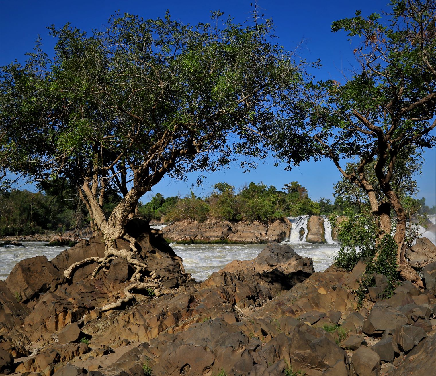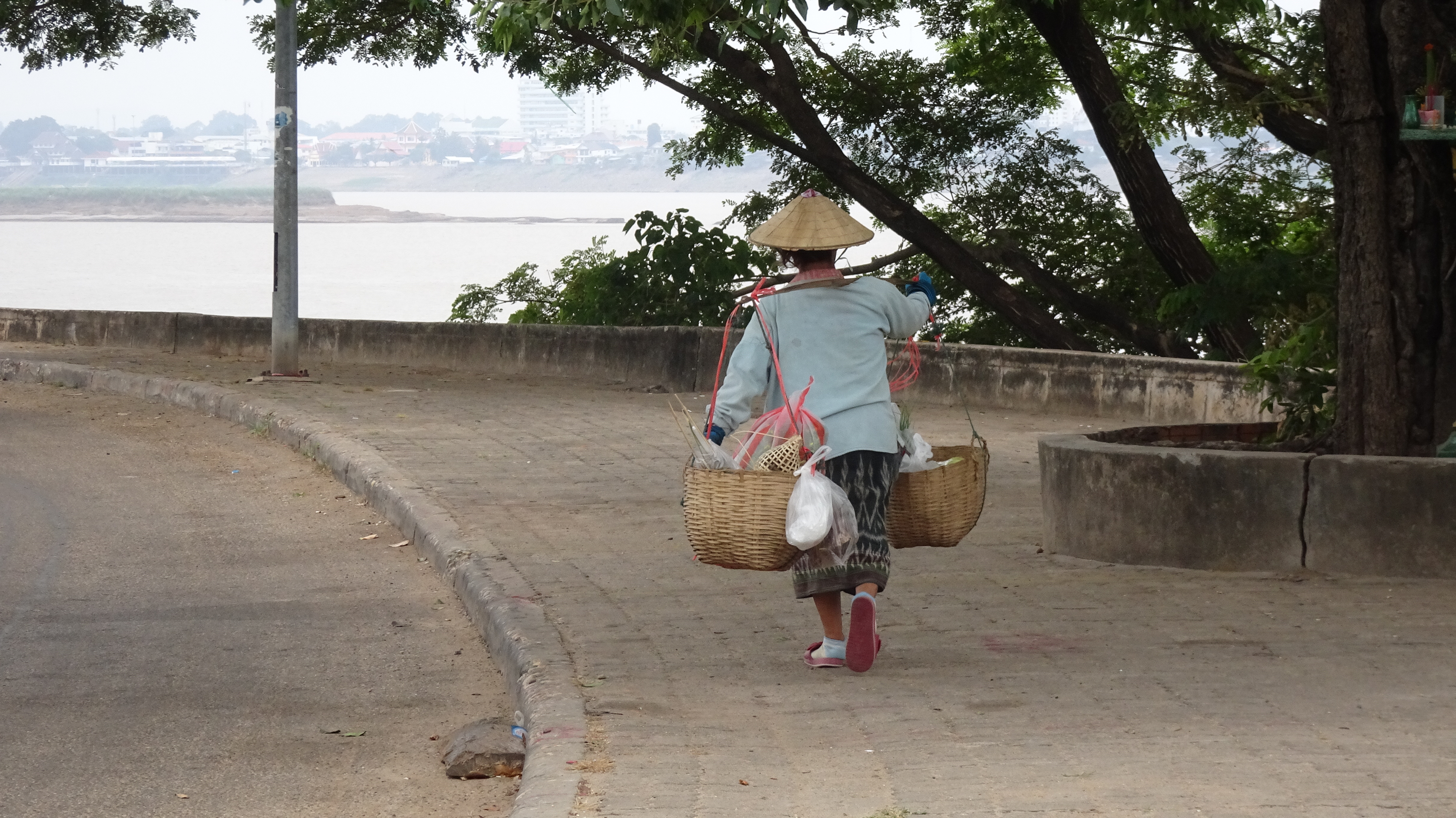 Bilderbuch am 244. Radweltreisetag in Pakse, sonnig und trockenzeit-winterlich heiß