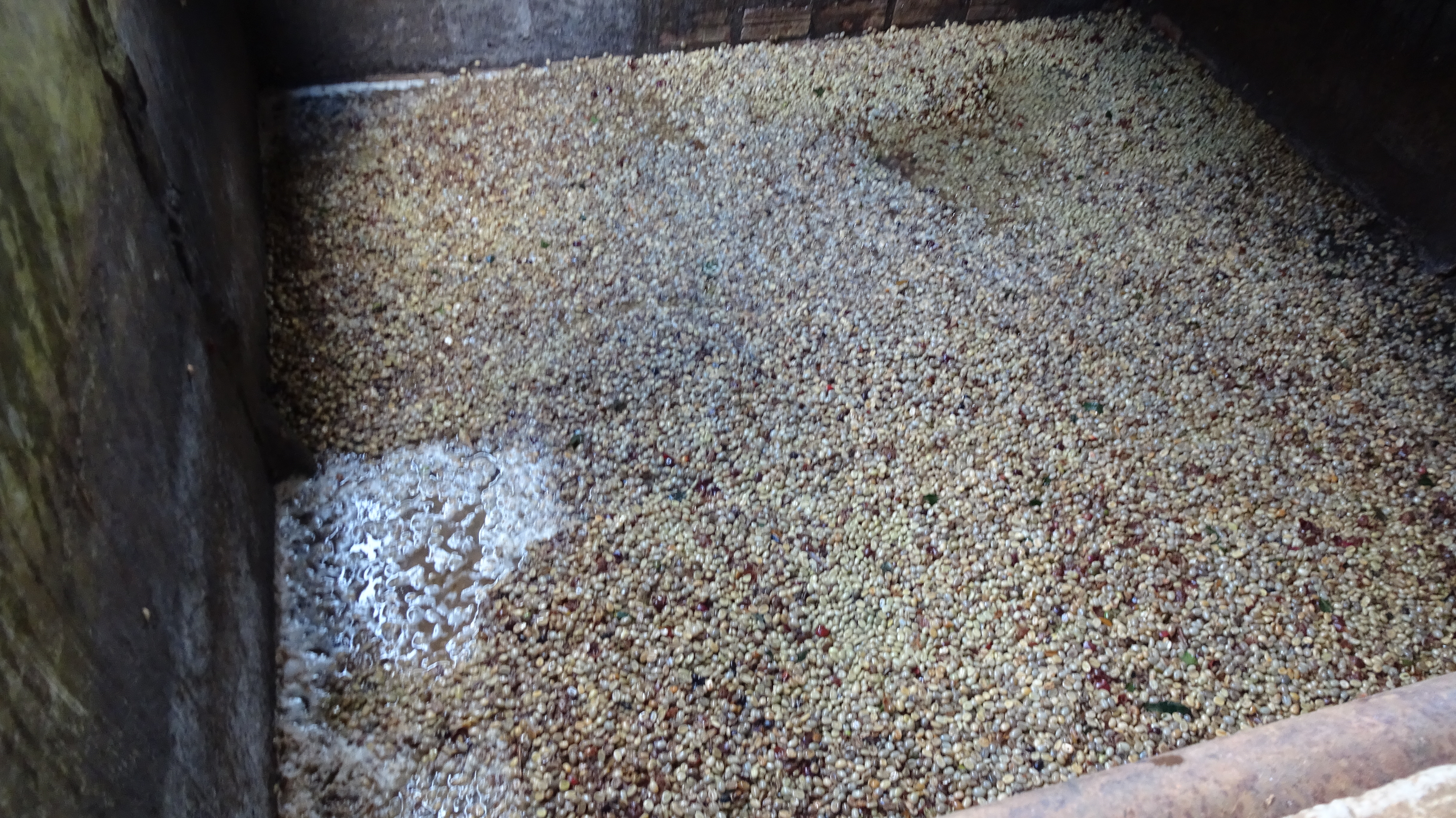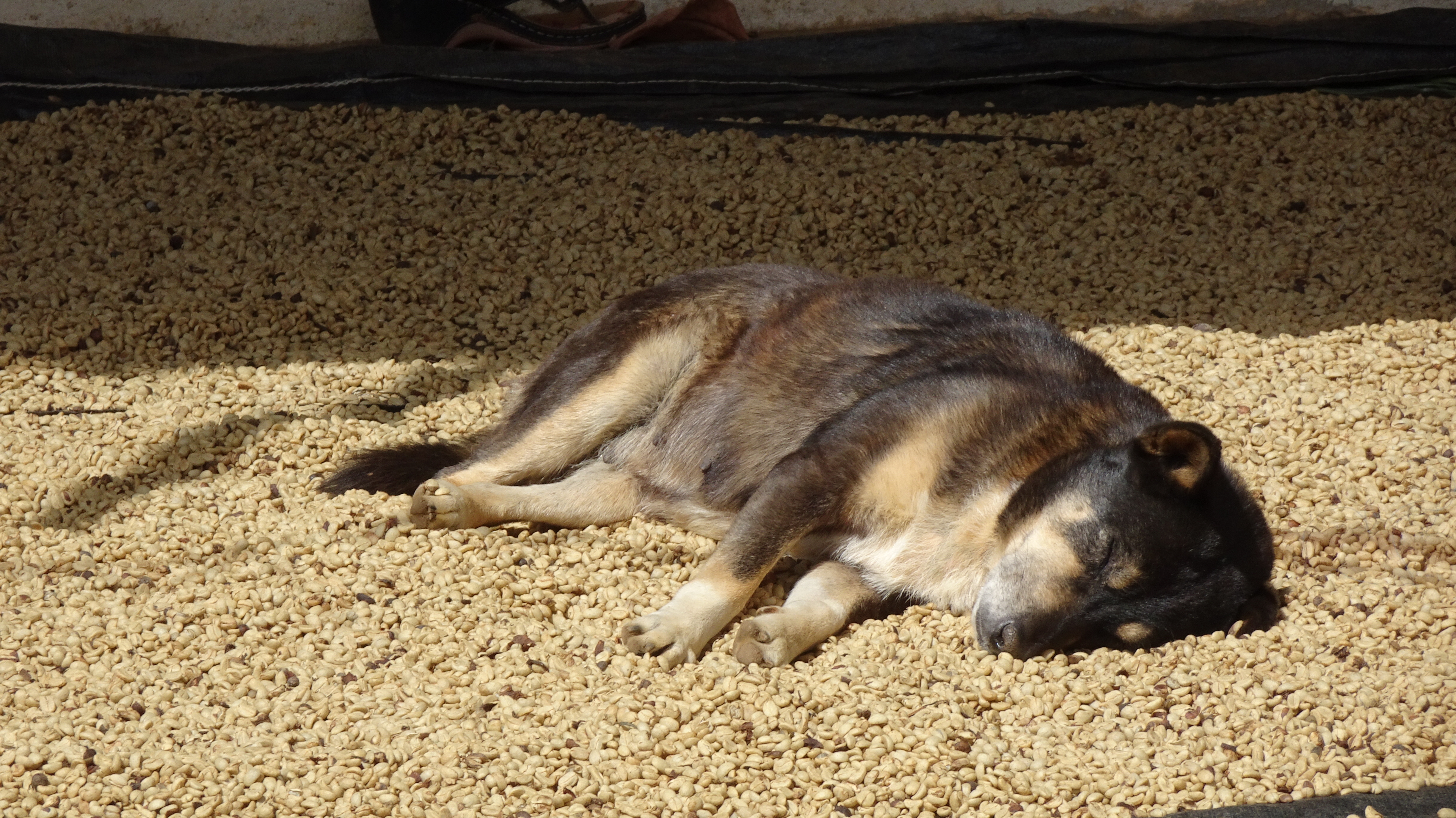 3 km zurück und rechts ran. Der Vorhof der Farm sieht eher nicht sehr einladend aus und die Bohnen sind auch nicht sehr ansehlich bis schimmelig …