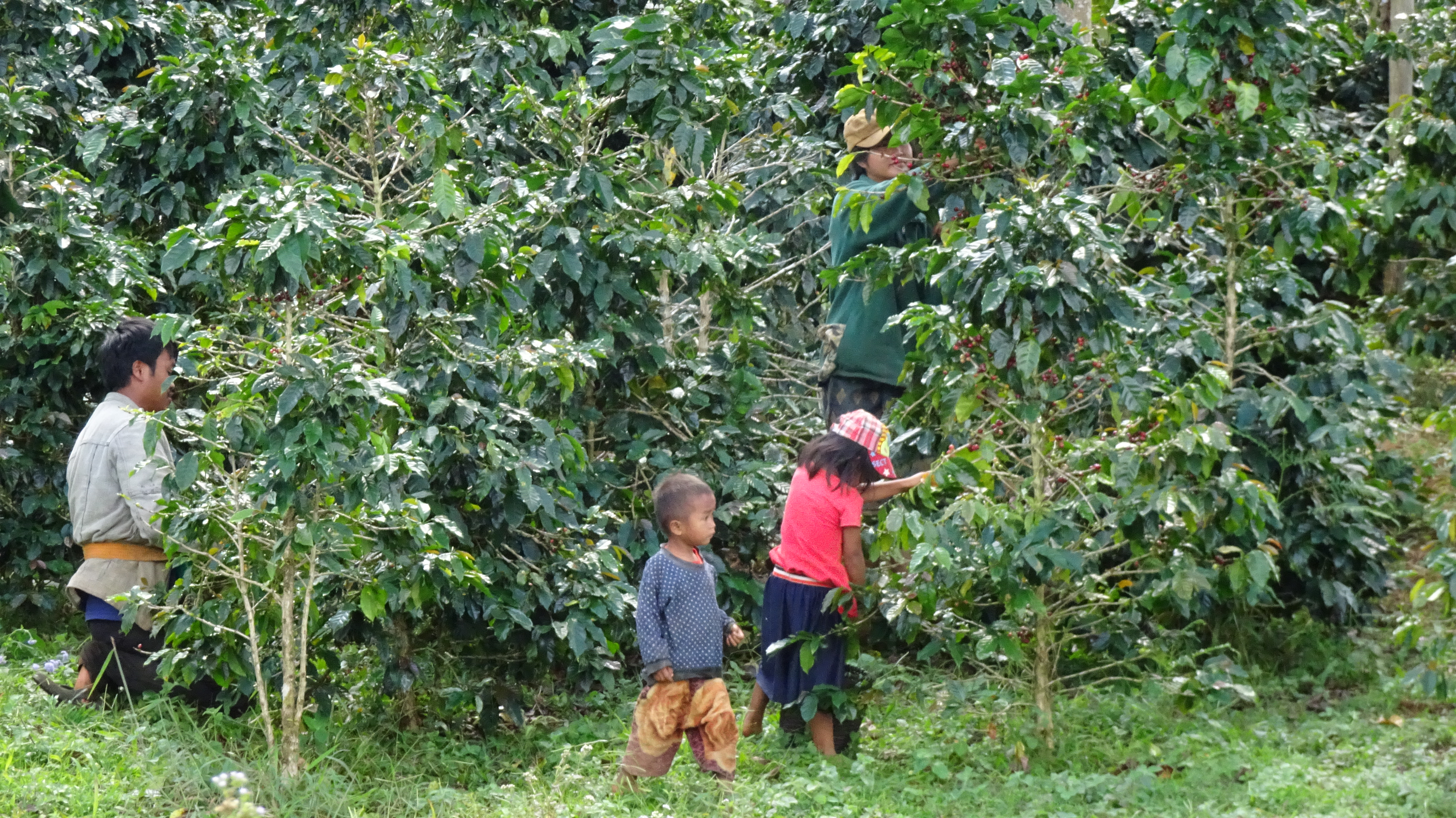 Das ist richtig harte Arbeit! Schon beim Pflücken von den Sträuchern fängt die Plackerei an. Dann wird alles gewaschen, muß trocknen und zuletzt handverlesen werden!