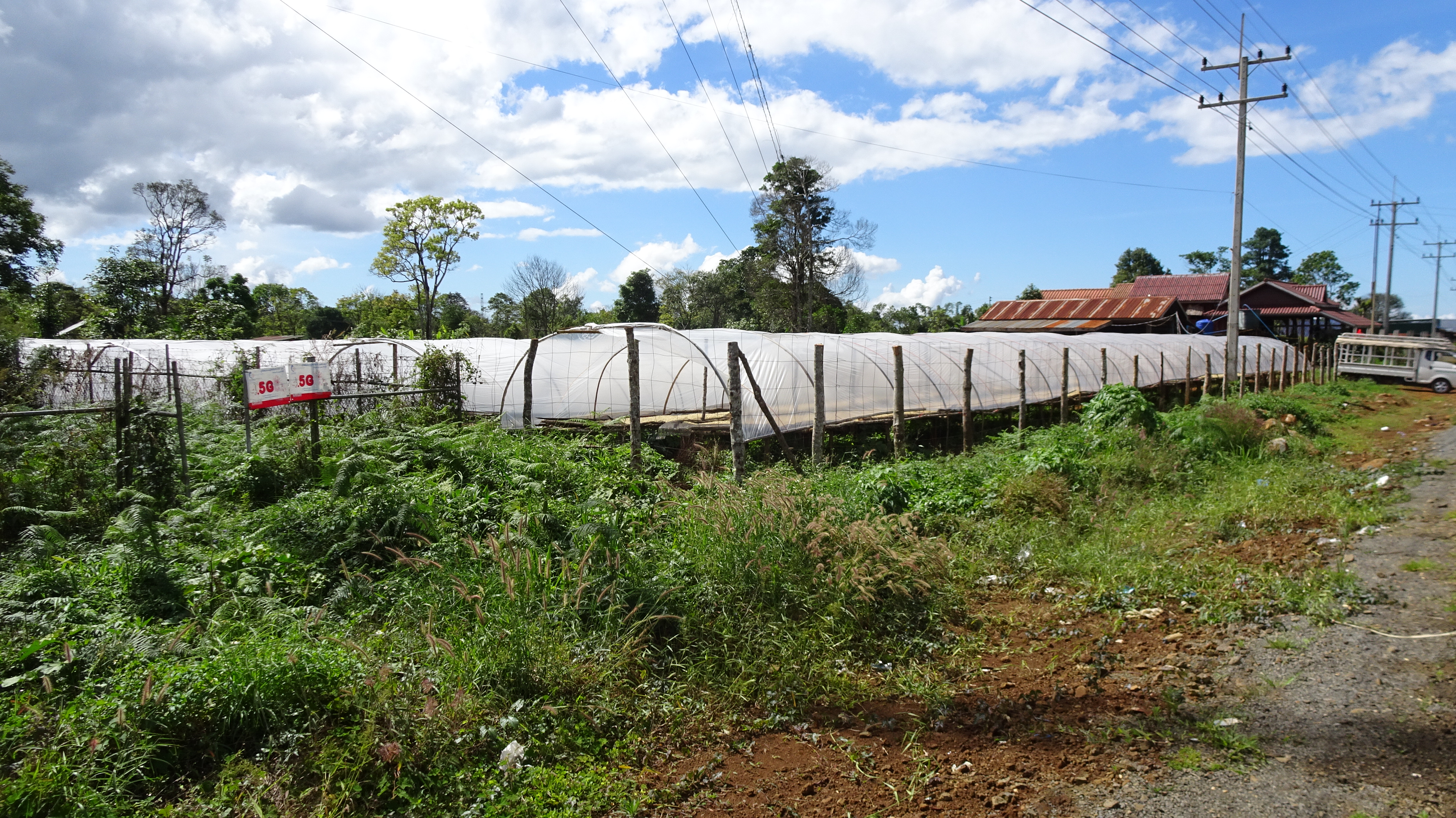 Mr. Kham fährt und fährt, neben ihm als zeitweiliger Tourguide Pet mit schon weniger schmerzendem Knie und dem Wissen, wie wir zur Kaffee-Farm fahren müssen.
