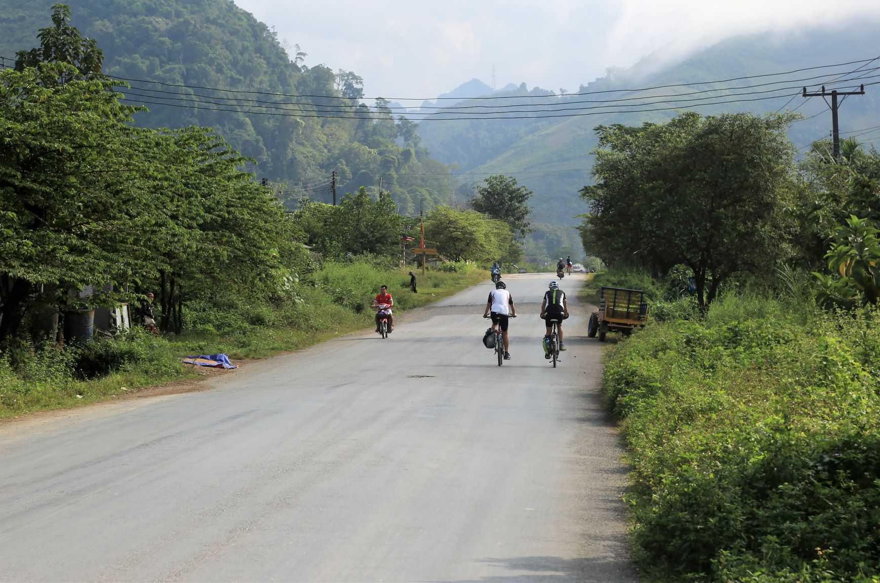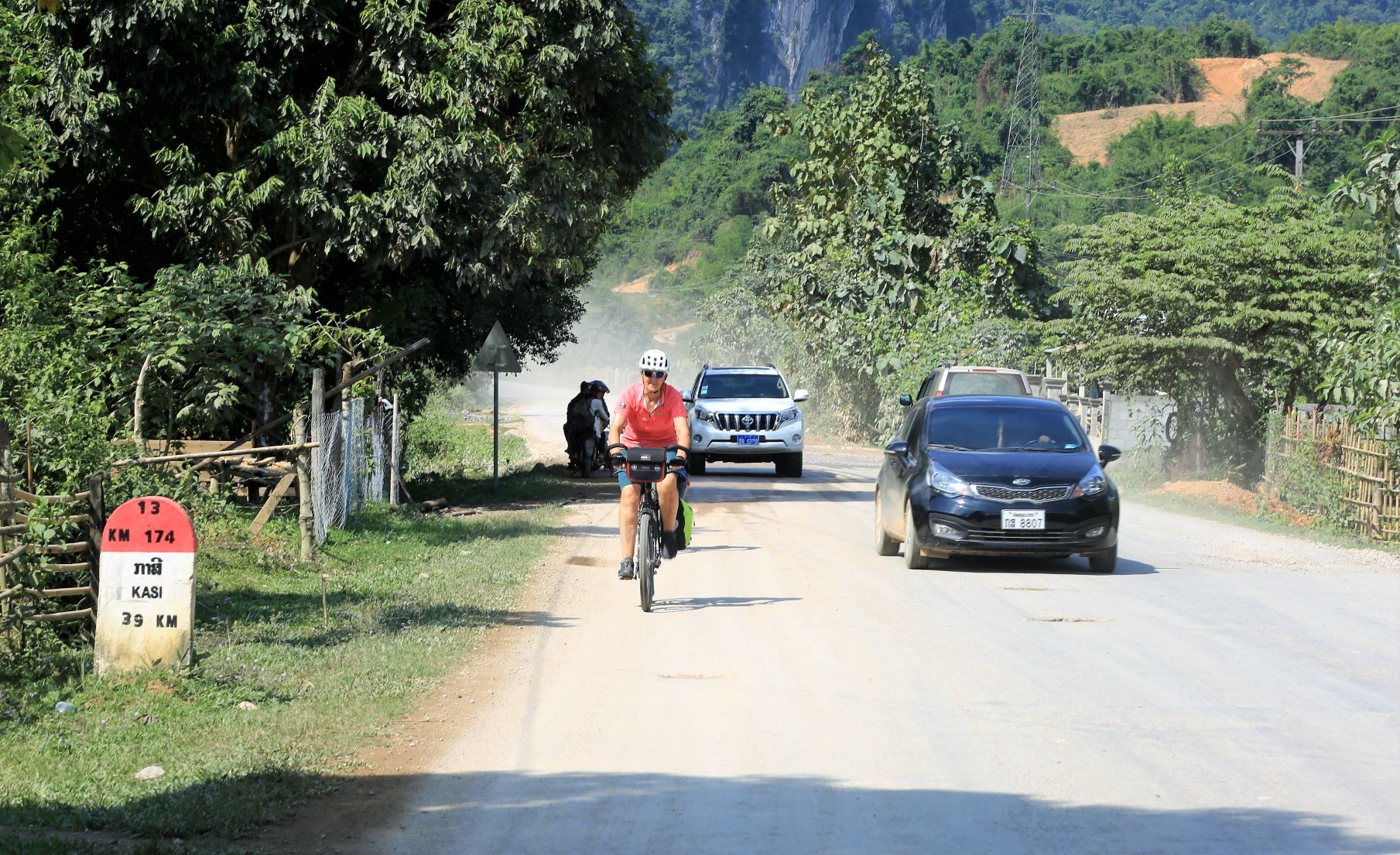232. Weltreisetag, 60 km von Kasi nach Vang Vieng, tropisch heiß & abwärts
