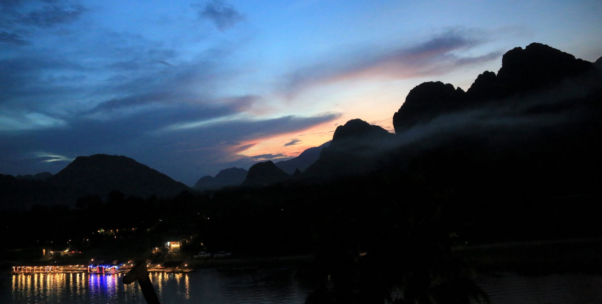 Vang Vieng, einer der Schmelztiegel der Backpacker Touristen in Laos, kündigte sich lange vorher an … Langnasen auf Mopeds, Fahrrädern, Elefanten, eingepfercht in Busse beladen mit Kajaks oder bewehrt mit riesigen Gummireifen für das River Tubbing (sprich im ‚Autoreifen‘ den Fluss hinabtreiben), bestimmen zunehmend das Straßenbild. Vang Vieng lebt vom Tourismus, und letztendlich sind auch wir ein Teil davon, reflektieren wir beim gemeinsamen Abendessen. Erneut wird uns bewusst wie intensiv wir die Möglichkeiten und Freiheiten haben, im Gegensatz zu ’normal‘ reisenden Touristen, dieses Land erleben zu können. In Laos spielt das Leben größtenteils in einem eng bemessenen Raum zwischen Haus und Straße und sobald wir anhalten entwickelt sich ein Gespür für die bereiste Region und für das was die Menschen hier anscheinend wirklich bewegt, ein Gefühl das den meisten Touristen denen wir immer wieder begegnen, vielleicht leider enthalten bleibt.