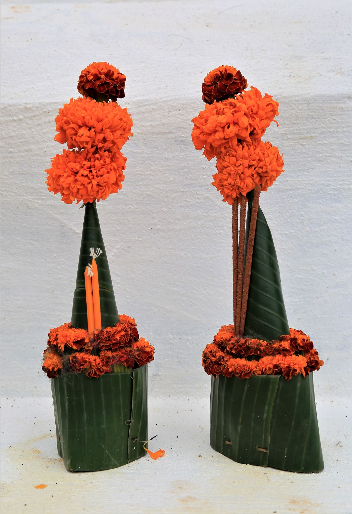 Hintereinander aufgereiht sind sie schon von weitem auszumachen. Auch wenn es gerade erst hell wird, sind die leuchtend orangefarbenen Gewänder – typisch für alle buddhistischen Mönche in Südostasien – unverkennbar und nicht zu übersehen. Die Tempelältesten laufen in der Regel ganz vorn, gefolgt von den jüngeren und schließlich den Novizen.