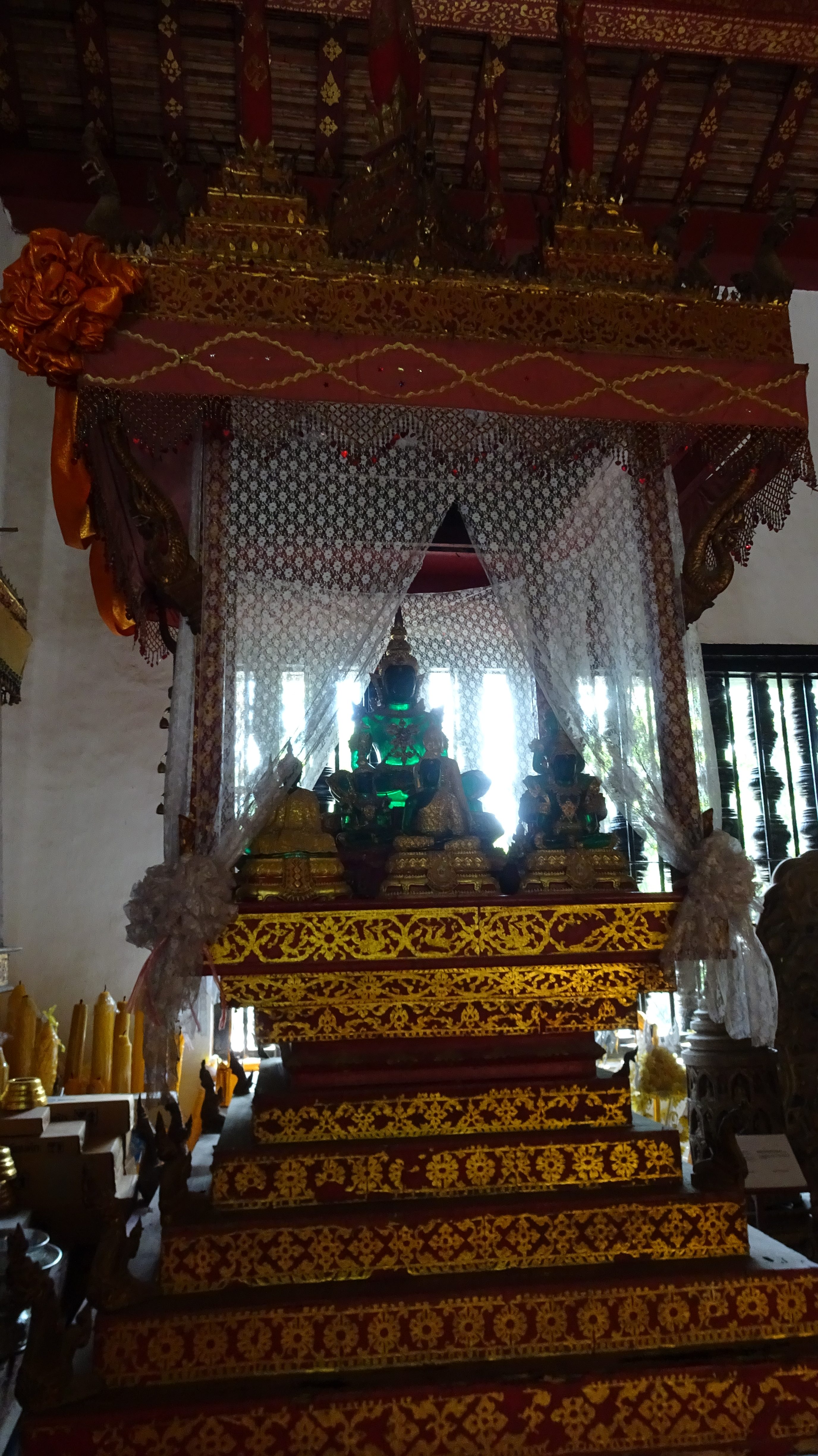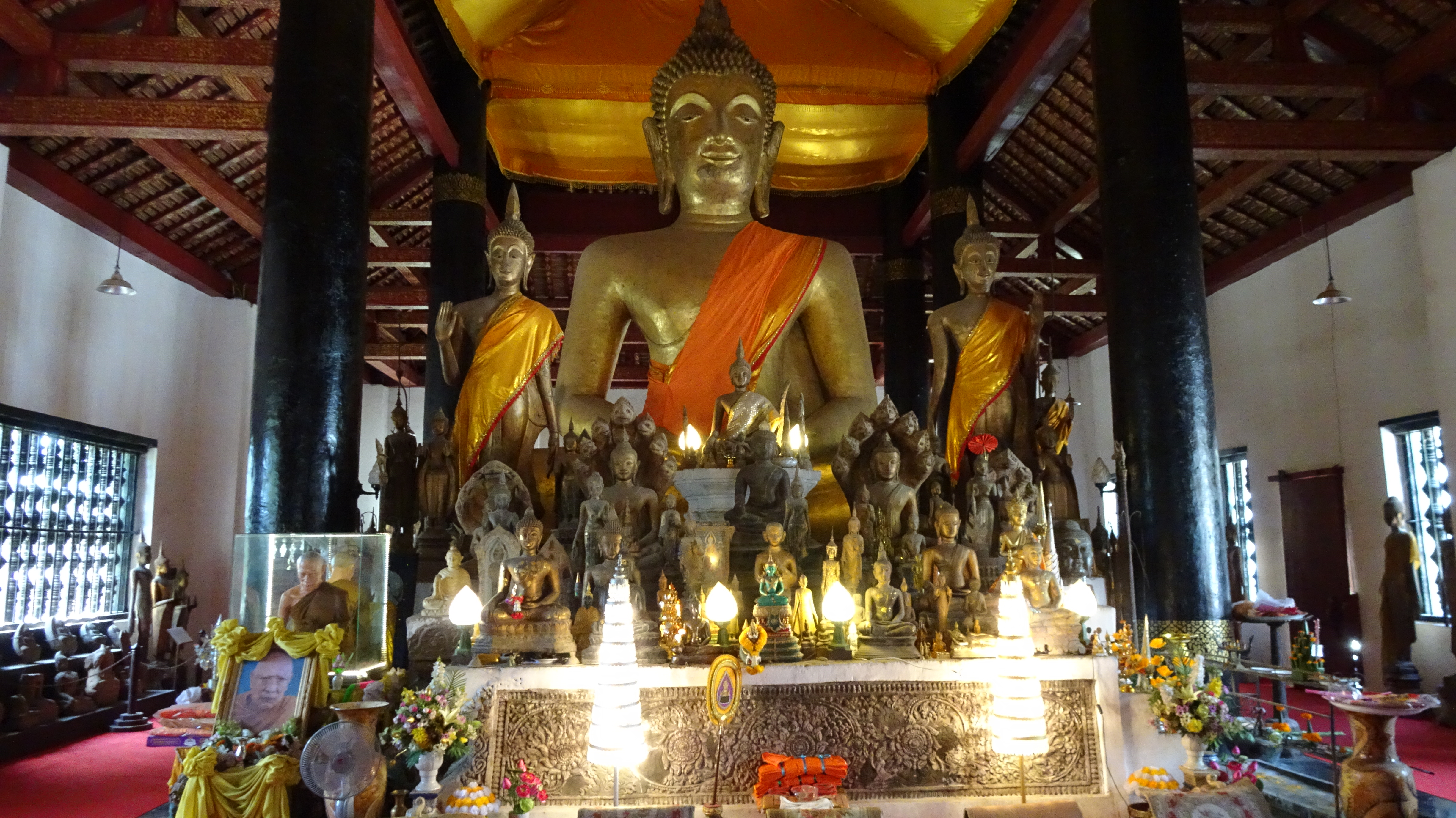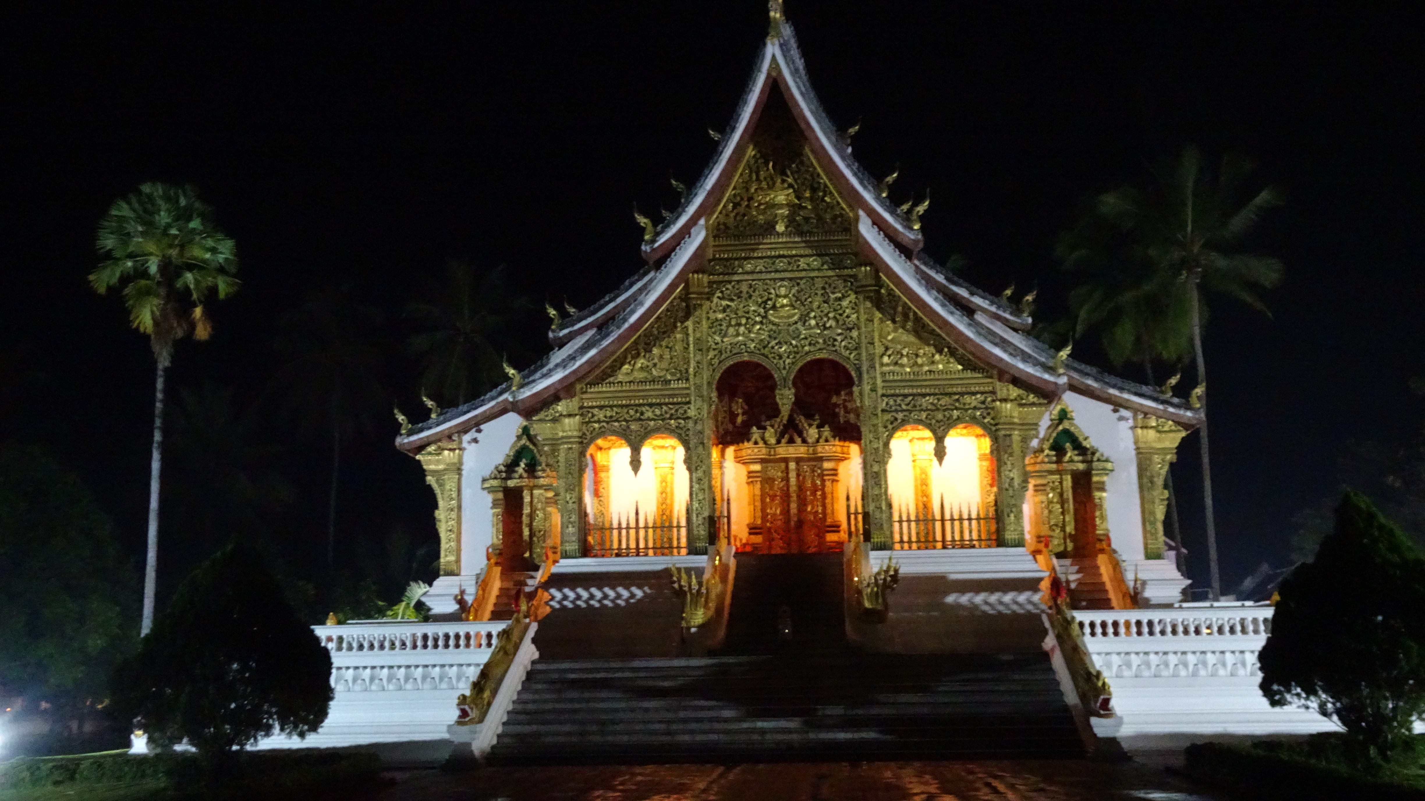 Auf dem Gelände des Palastes steht auch der goldene Tempel-Pavillon mit der Statue des Phra bang Buddha, dem wohl am meisten verehrten Heiligen in Laos. Einmal im Jahr wird die kleine Statue aufpoliert, geschmückt und in einer Prozession durch die Stadt getragen.
