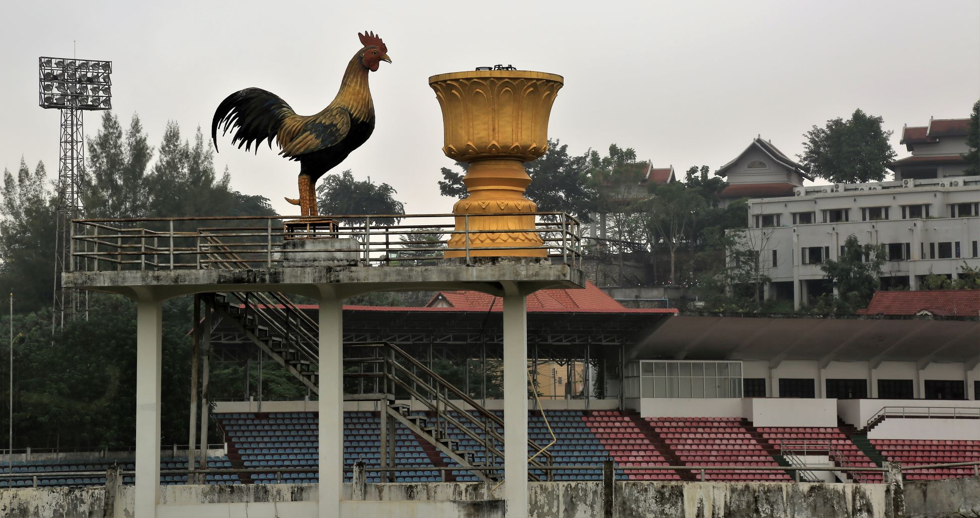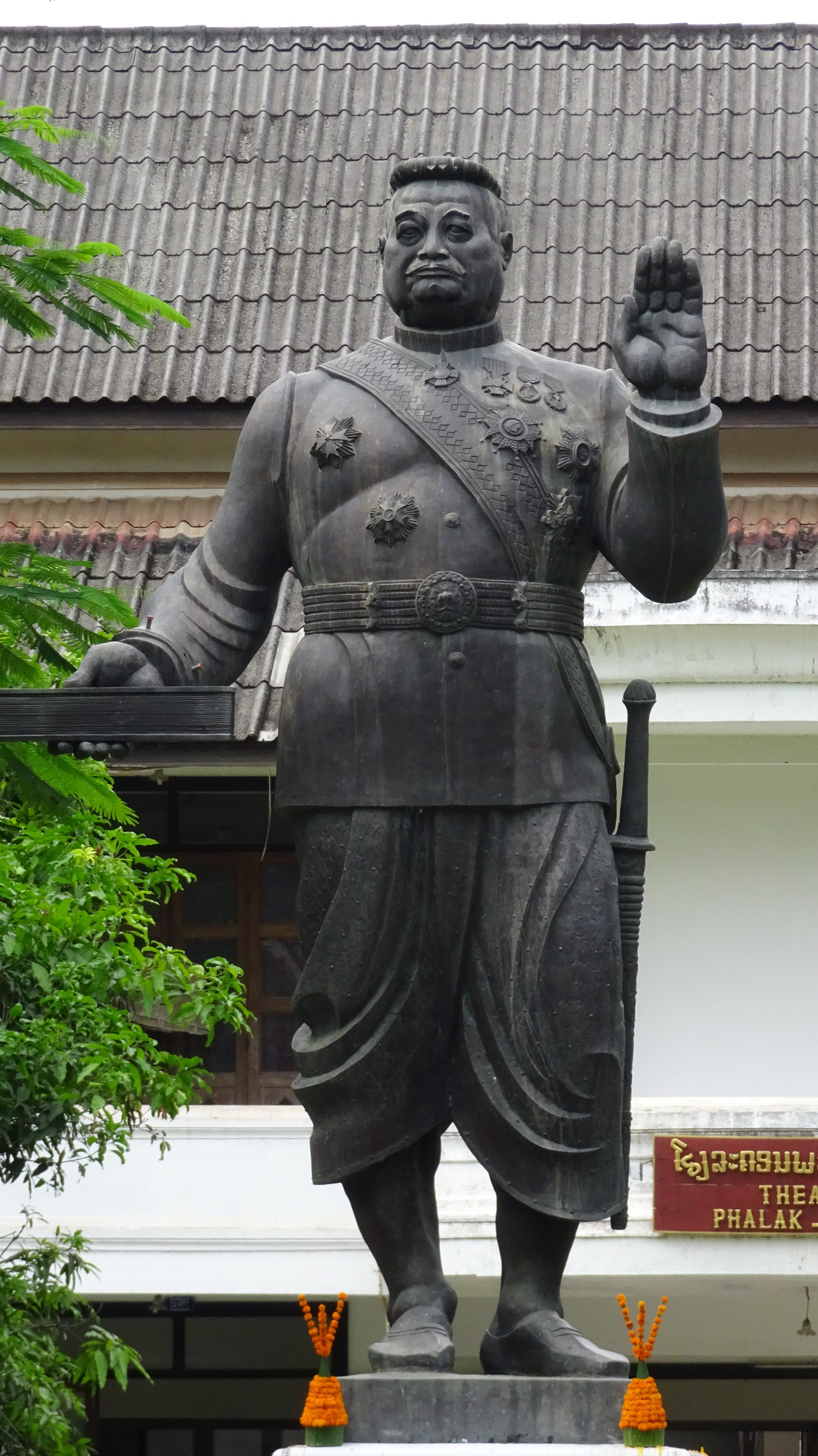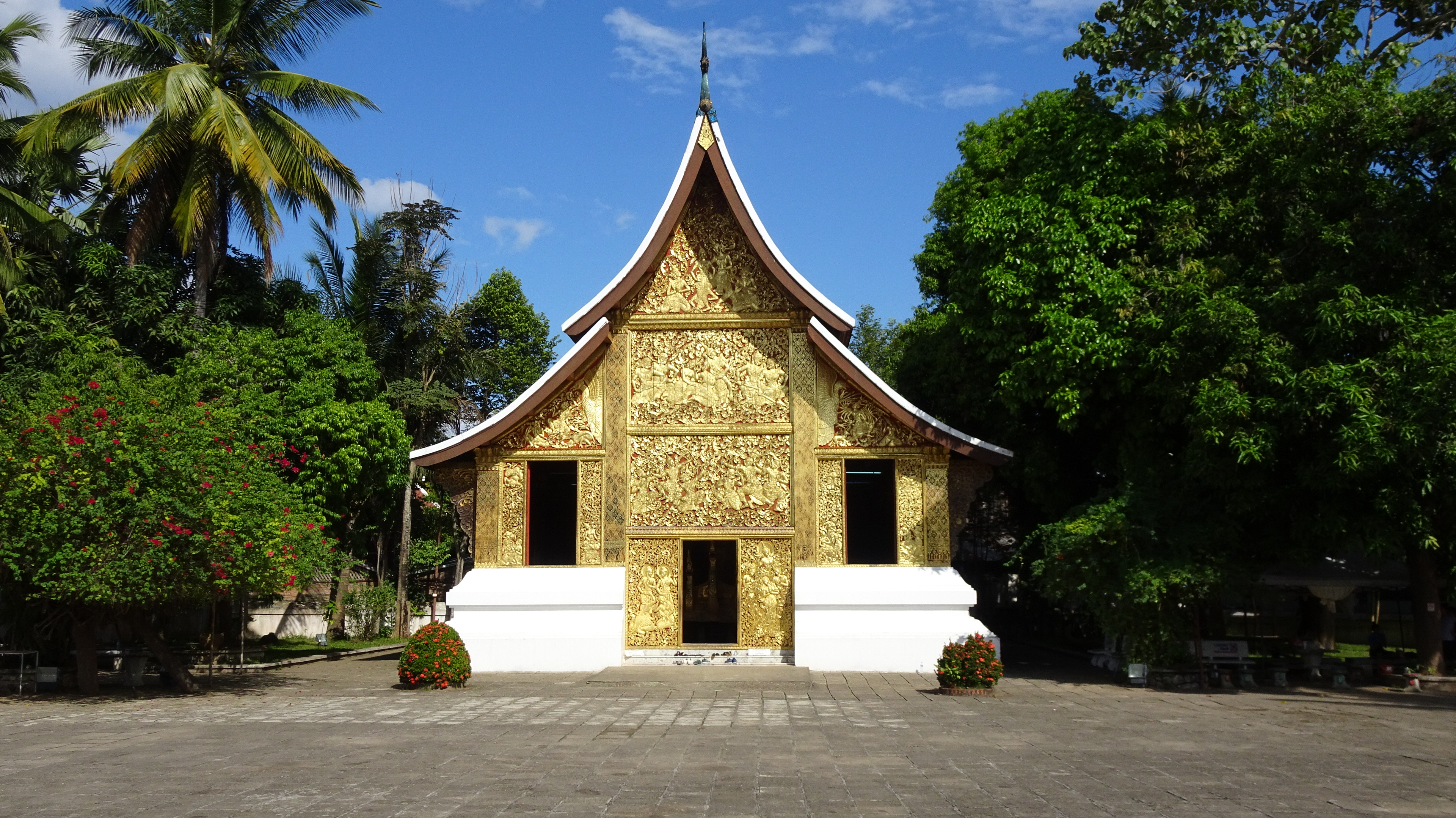 Auf dem Gelände des Palastes steht auch der goldene Tempel-Pavillon mit der Statue des Phra bang Buddha, dem wohl am meisten verehrten Heiligen in Laos. Einmal im Jahr wird die kleine Statue aufpoliert, geschmückt und in einer Prozession durch die Stadt getragen.