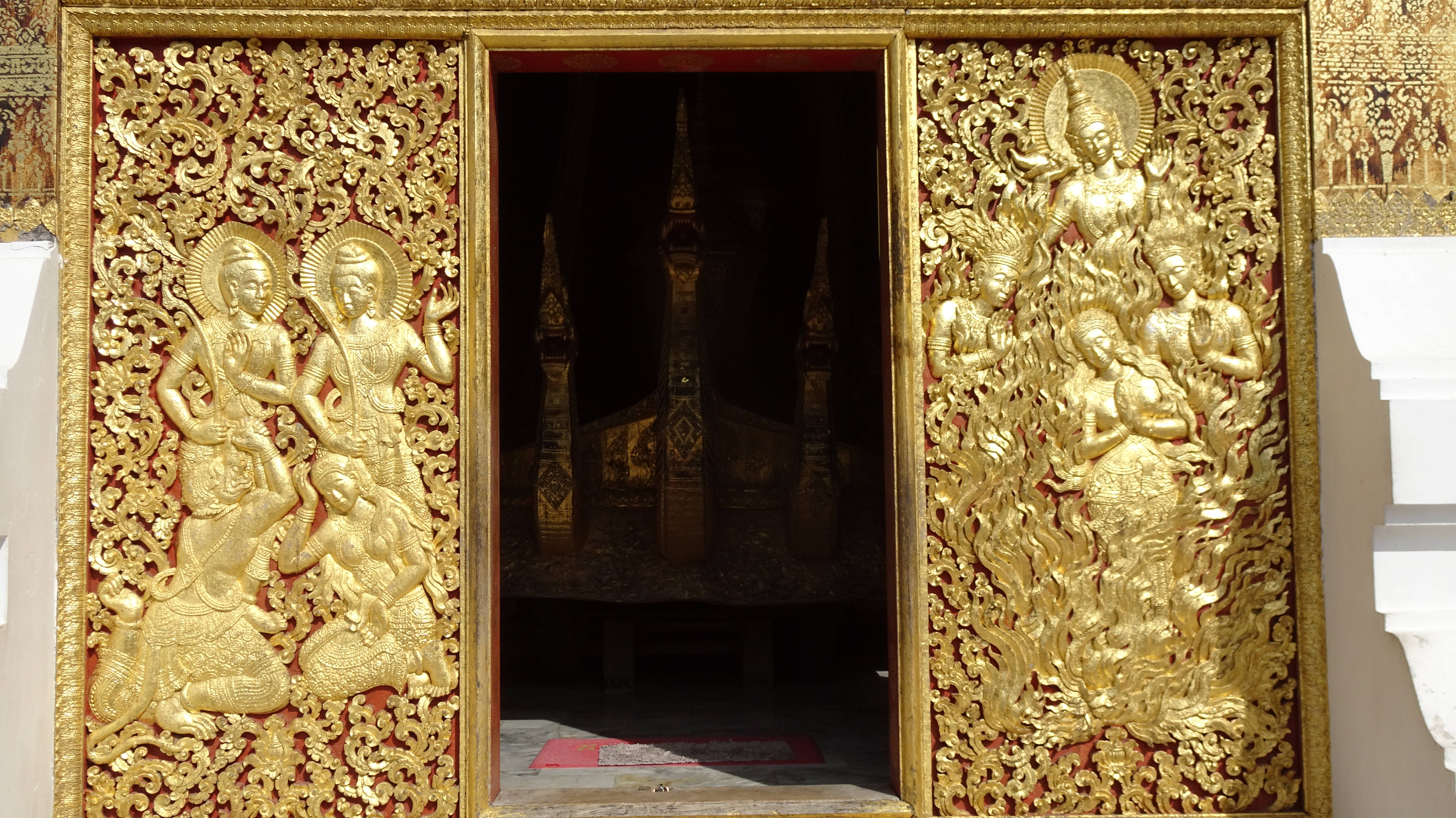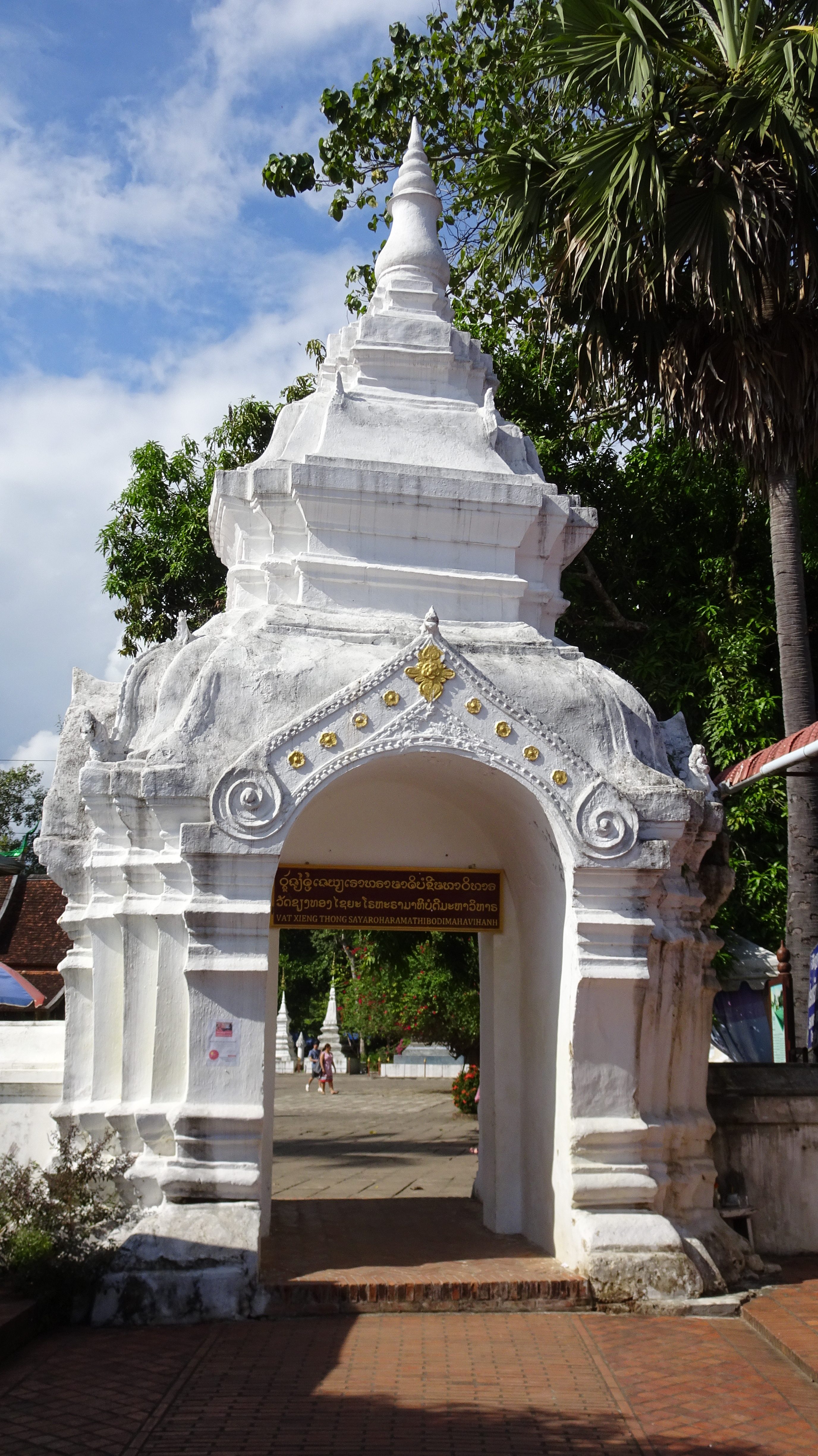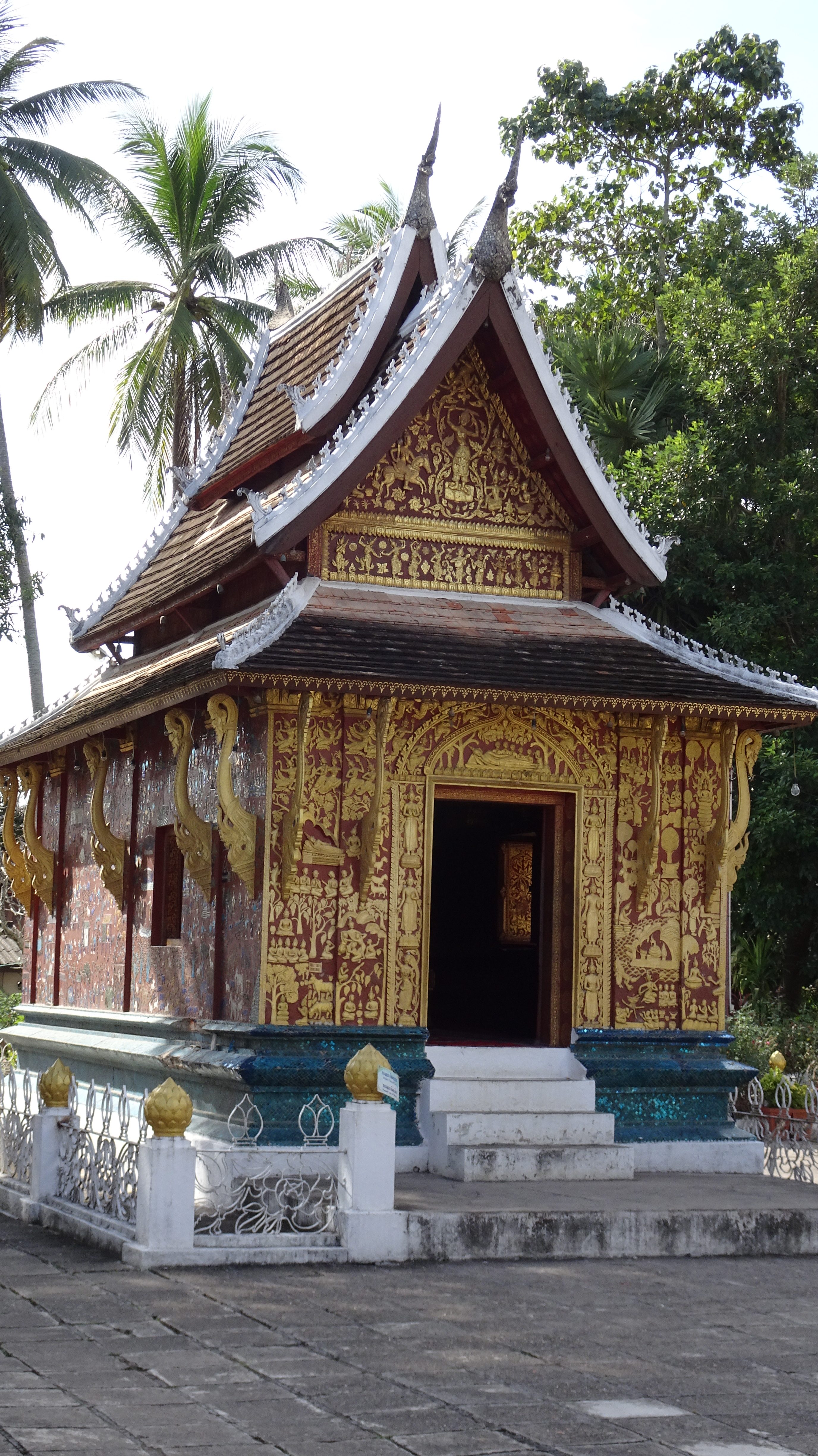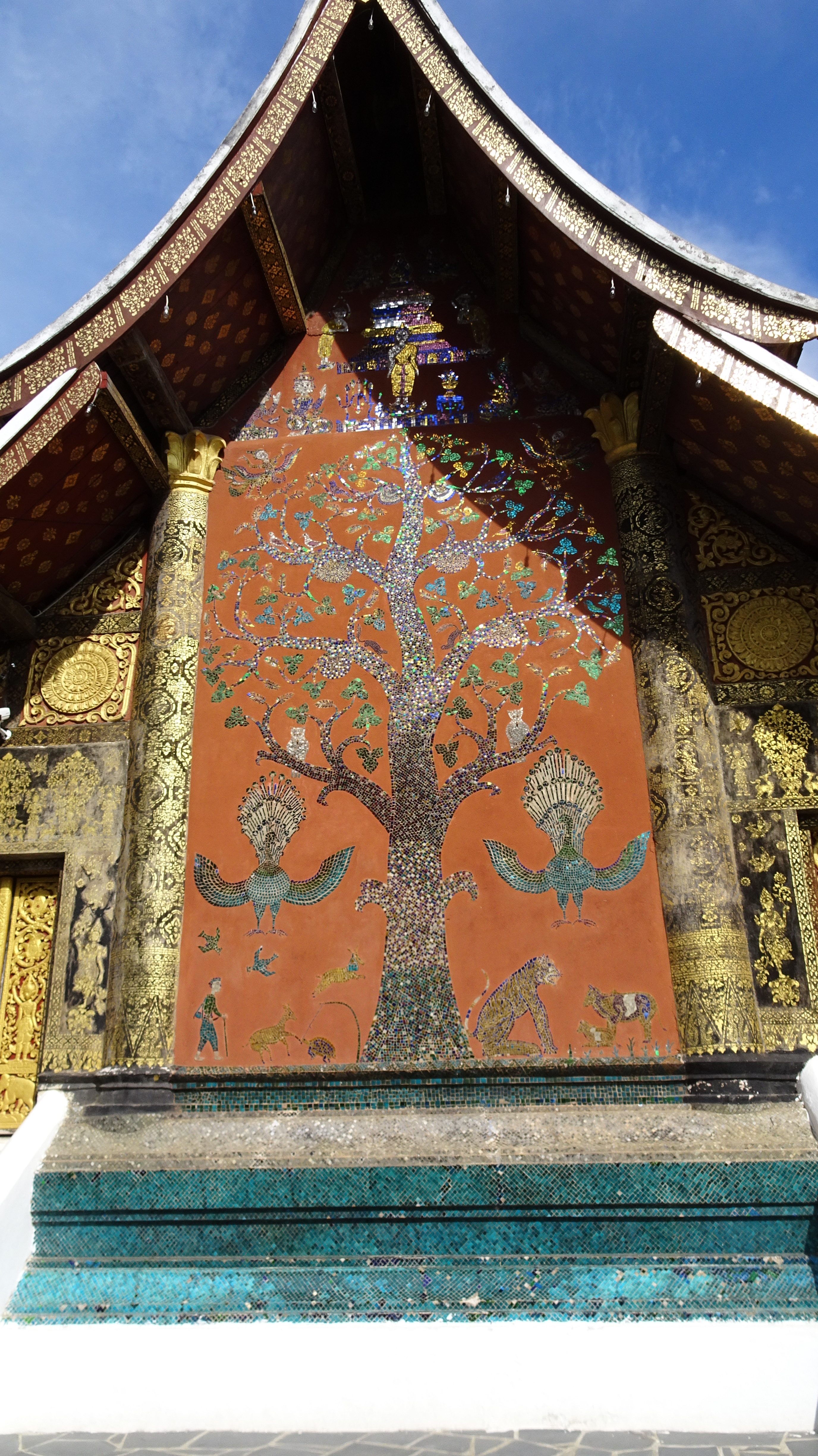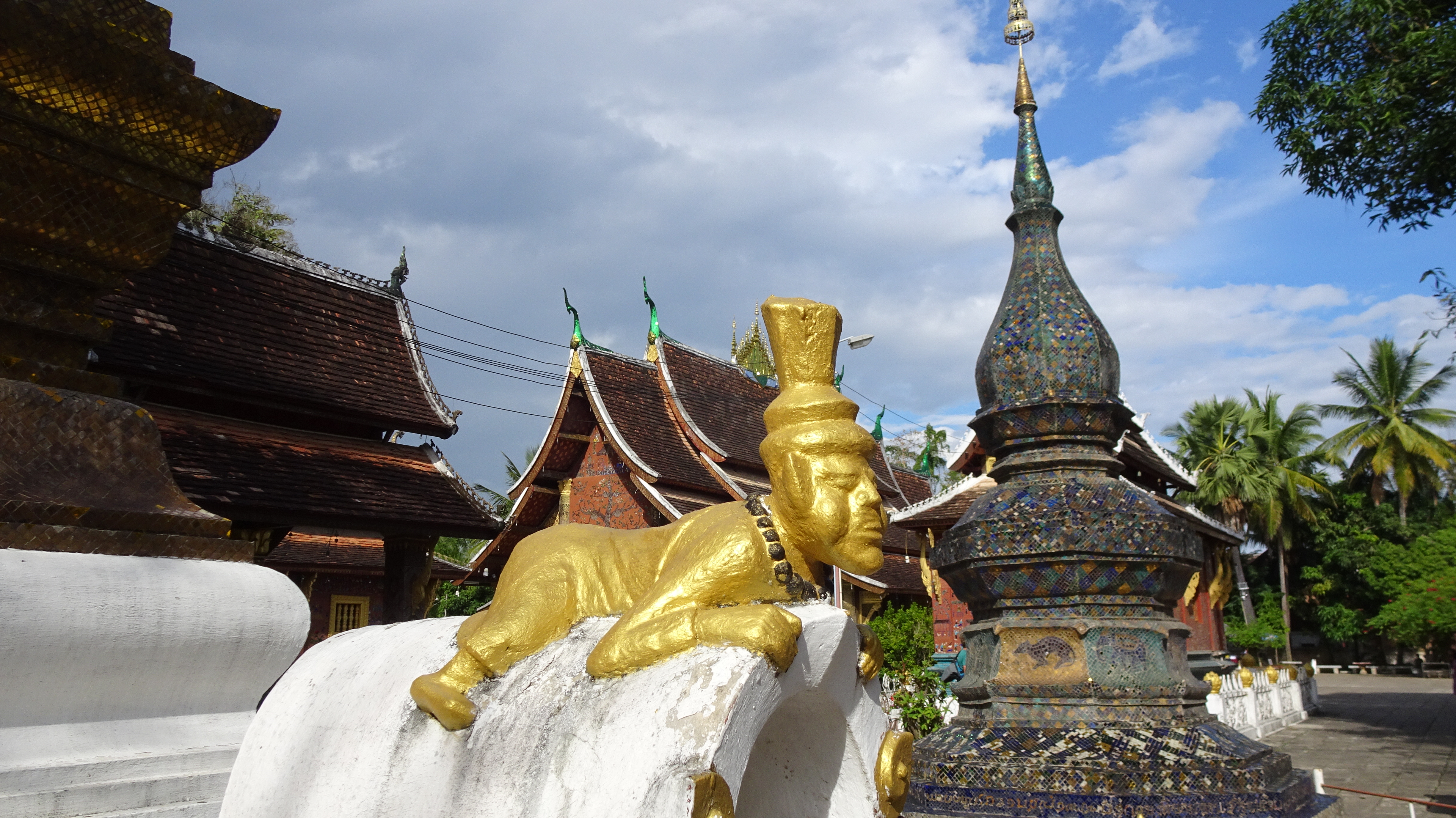 Weiter mit dem „Tuk-Tuk“ zum Vat Xienthong (auch Wat Xieng Thong), einer sehr besonderen Tempelanlage am Mekong, die 1560 unter König Setthathirath erbaut und 1960–1962 restauriert wurde. Als einziger Tempel der Stadt überstand er die Plünderung von 1887 unversehrt. Der Baustil mit dem fast bis auf den Boden reichenden Dach ist typisch für das nördliche Laos.