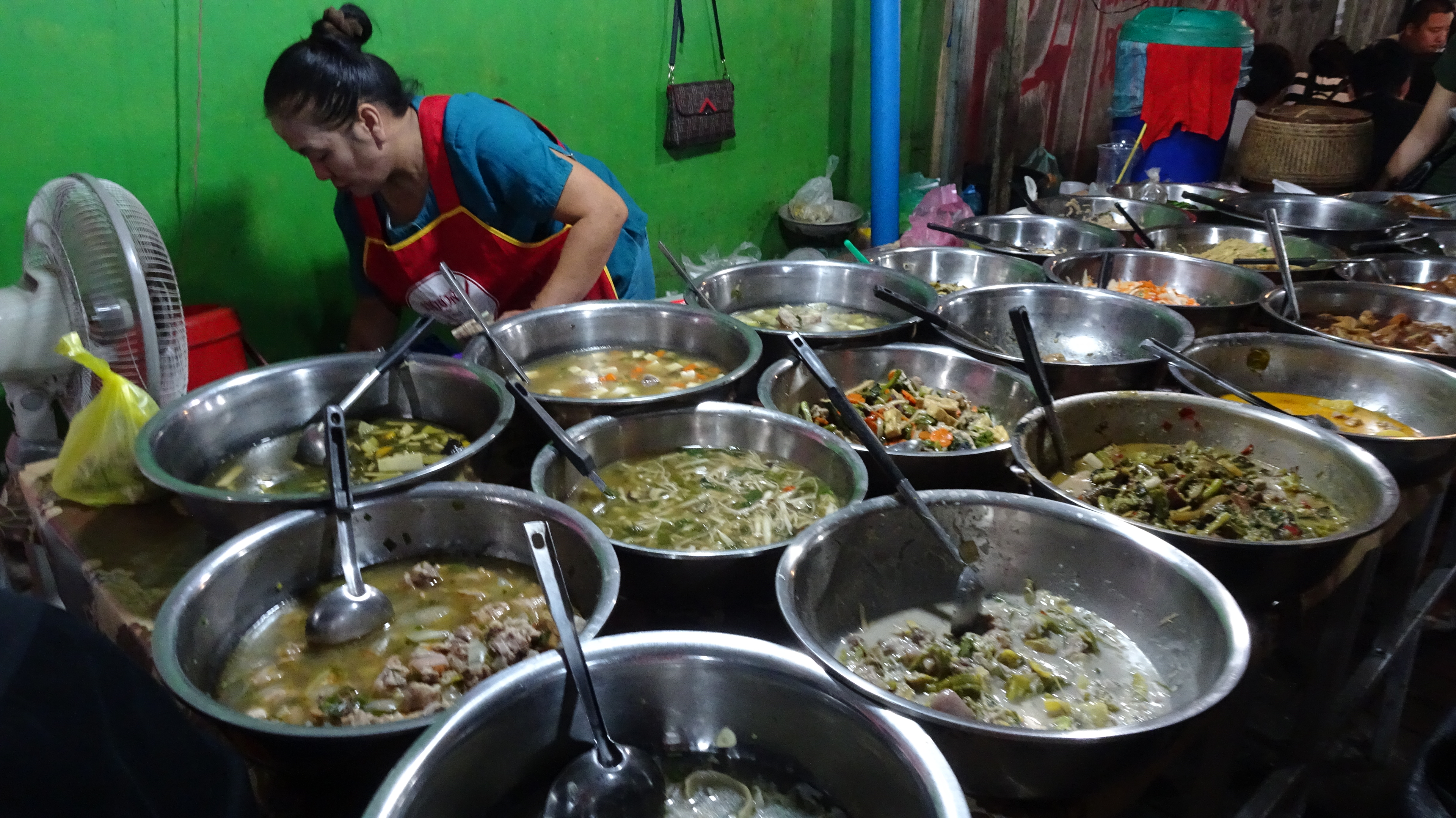 Wir sind jetzt in Laos. Das Essbesteck besteht jetzt aus Löffel und Gabel und es lässt sich jetzt richtig schaufeln. 🤪. Zum Frühstück gibt es jetzt Kaffee, Eier, Brot und Konfitüre. Ich frage nach einem Messer. Nein das gibt es nicht in Laos. Ich nehme den Löffel und streiche Butter und Konfitüre auf‘s Brot. Alternativ gäbe es noch Stäbchen, aber damit lässt sich auch kein Brot streichen.