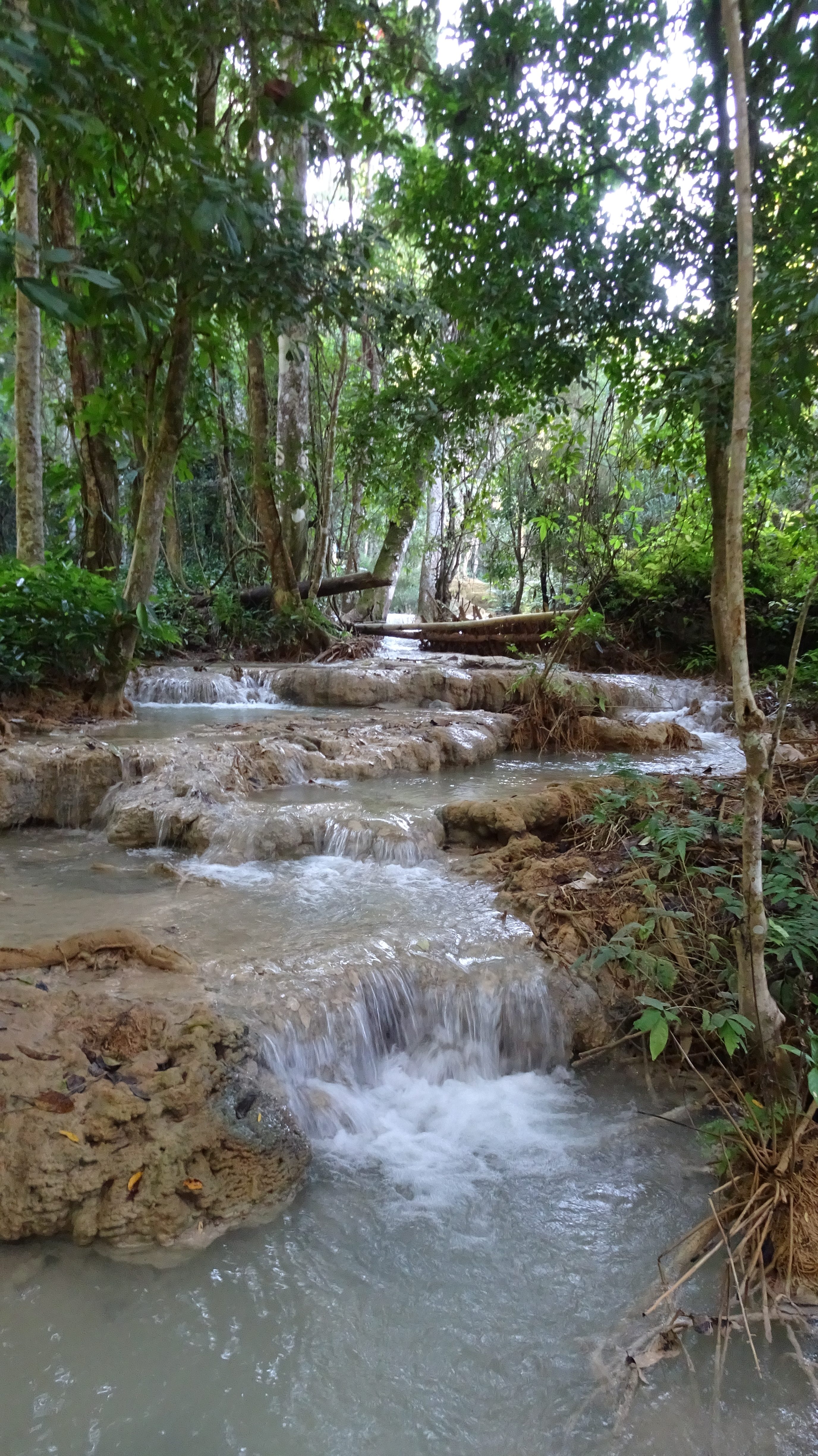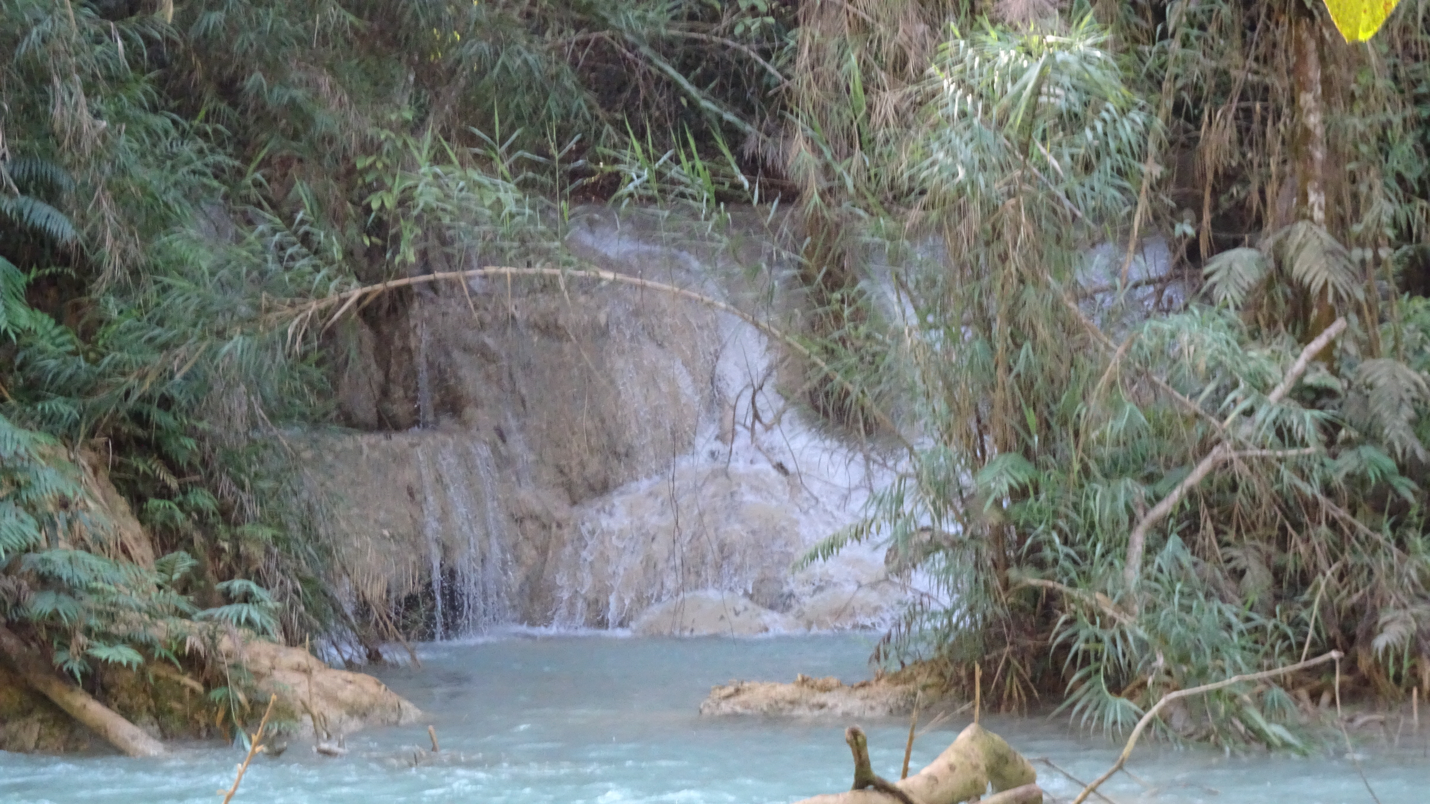 Der Ausflug heute Nachmittag (mit unserem Begleitauto) zum Kuang-Si-Wasserfall war ein weiterer Höhepunkt. Der nämliche fällt etwa 30 km / 1 Auto-Stunde von Luang Prabang entfernt herab.