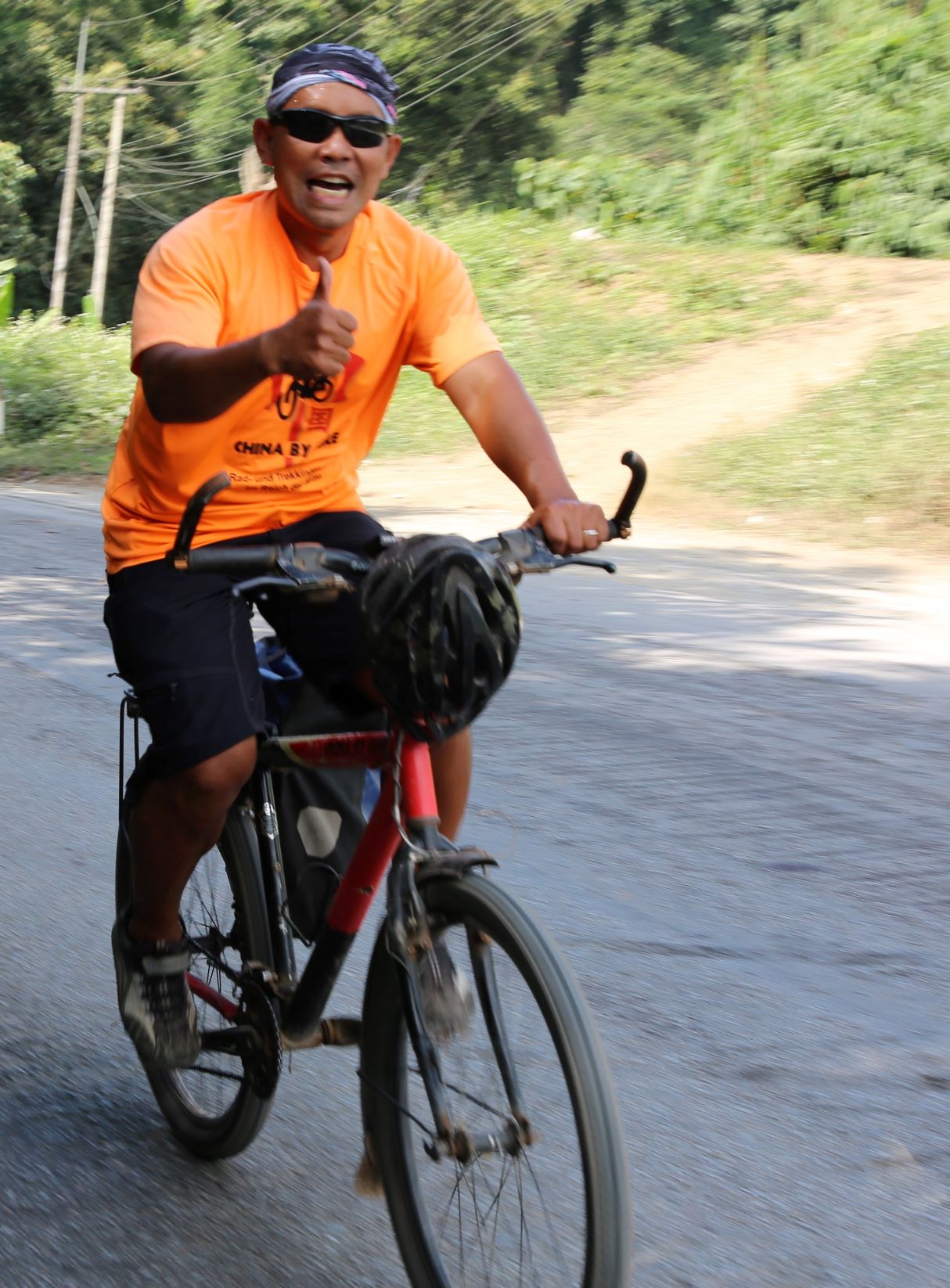 Die heftigen Bergetappen in China haben uns Weltradler stark gemacht. Wir sind jetzt gut trainiert und fahren ein zügiges Tempo. Eine echte Herausforderung für jeden Reiseleiter, der neu zur Gruppe hinzustösst. Nicht so bei Oliver, er pendelt bei den Etappen von vorne nach hinten und fährt mit einer Leichtigkeit die Berge rauf und runter. Die heutige Etappe mit 1800 Höhenmeter ist heftig. Die Gruppe kämpft immer noch mit Magen-/Darmproblemen und die Meisten ziehen das Begleitfahrzeug vor. An diesem Tag ist es eher ein Lazarettfahrzeug. Die Radtour mutiert zur Privattour.