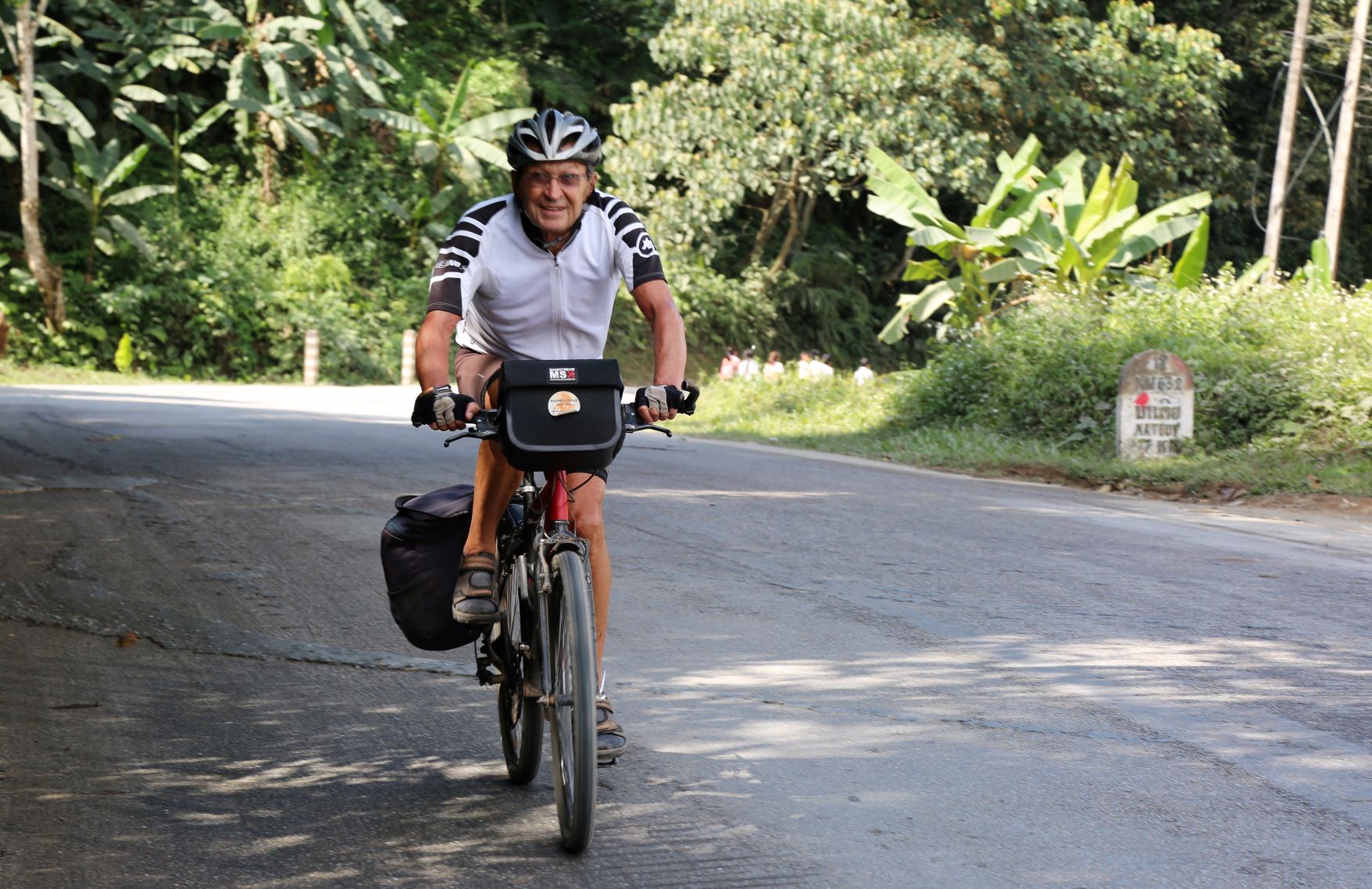 Go South über die Ausläufer des Himalayas. Während 63 Tagen ein ständiges Auf und Ab. Es mussten täglich zwischen 1000 und 2000 Höhenmeter überwunden werden. Ich bin abends im Hotel angekommen und war fix und fertig, wie ich es bisher noch gekannt habe. Jemand hatte mal gesagt, wenn ich das gewusst hätte, hätte ich diese Reise nicht gebucht. Zum Glück habe ich es nicht gewusst!