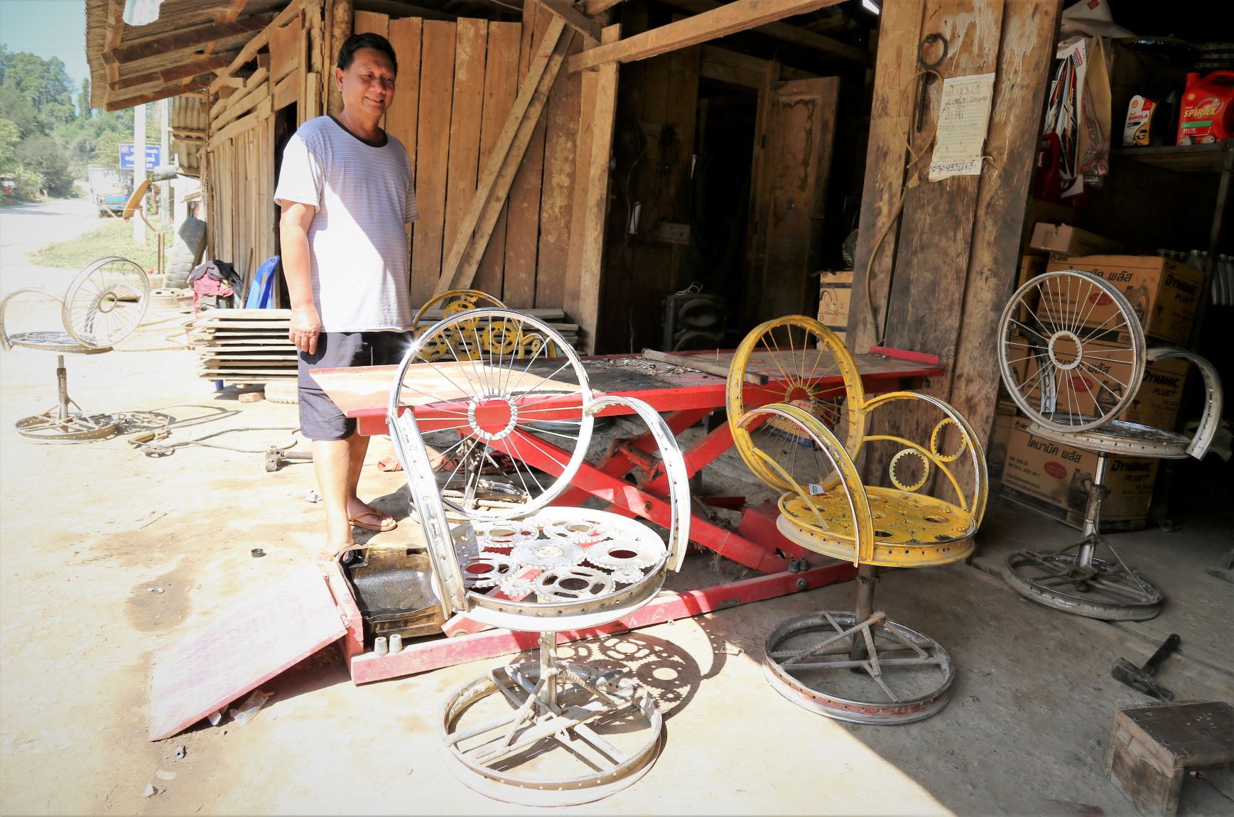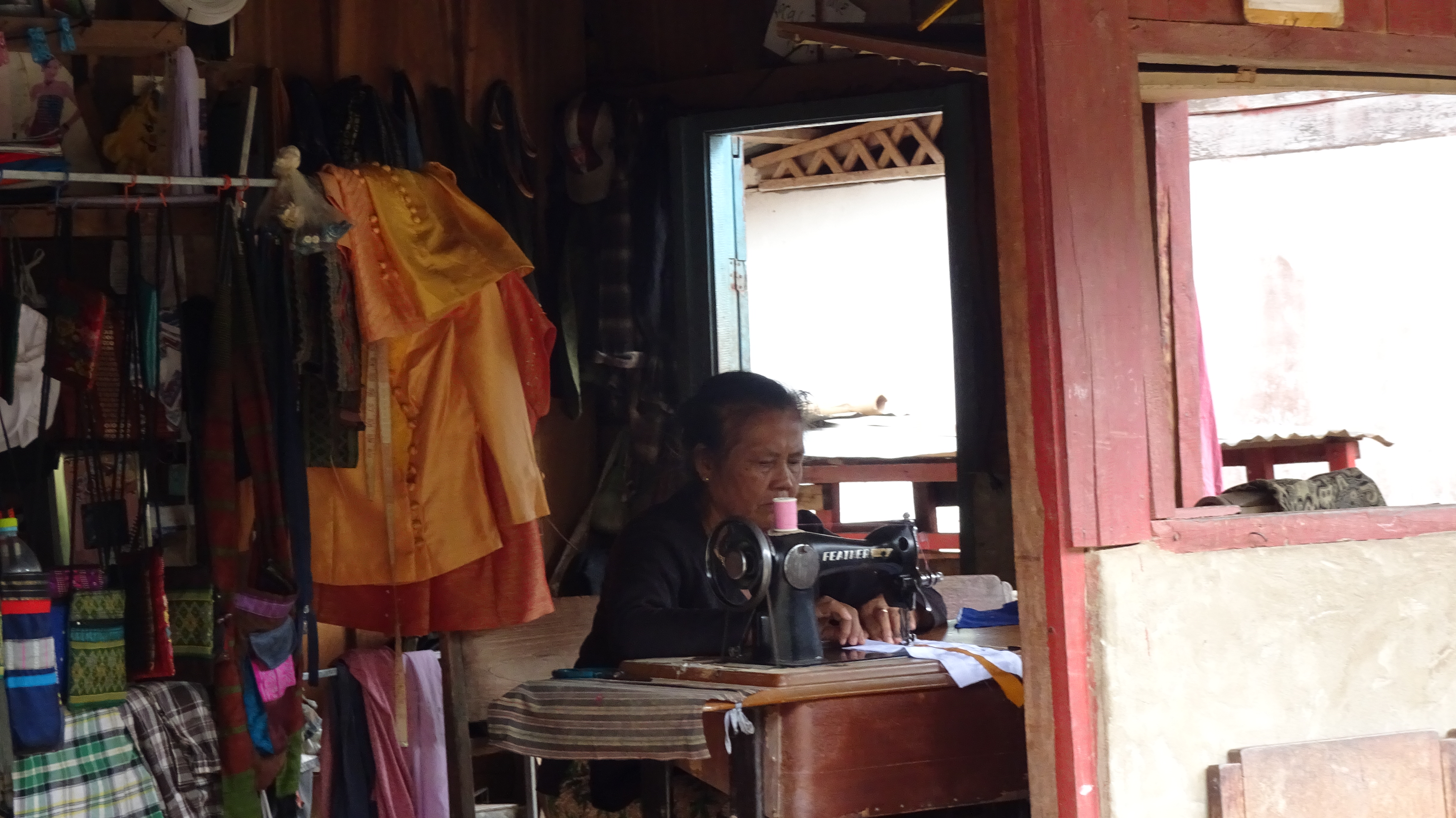Im Handicraft Center – letzter Stopp 😉 – gibt es vielfältige Informationen zur Region und hier bieten die Handwerker/innen ihre Arbeiten zum Verkauf an. Auch wir kaufen hier gern ein. Meine neue Stofftasche kostet mich stolze 35.000 Kip (ca. 3,60 €).