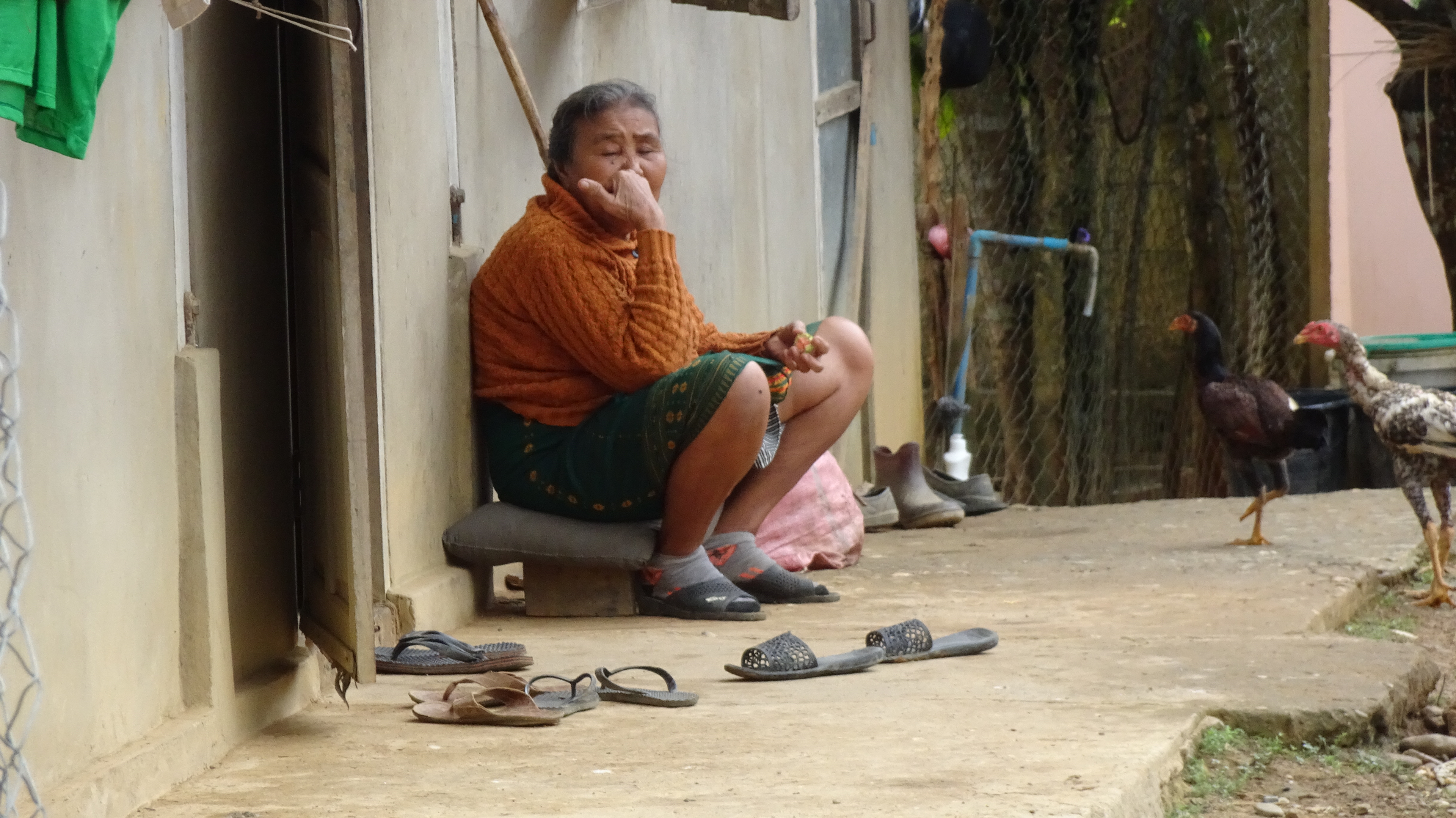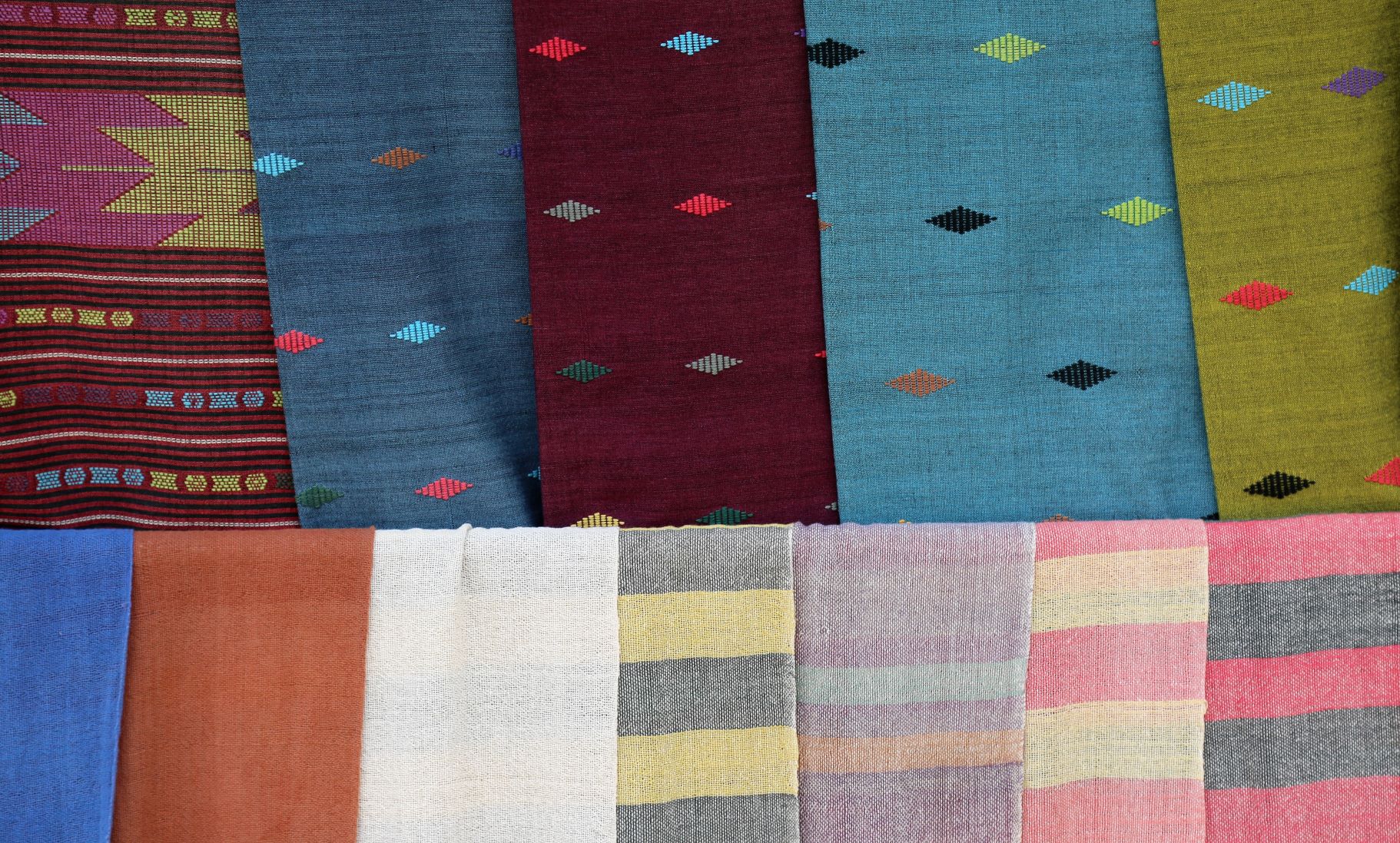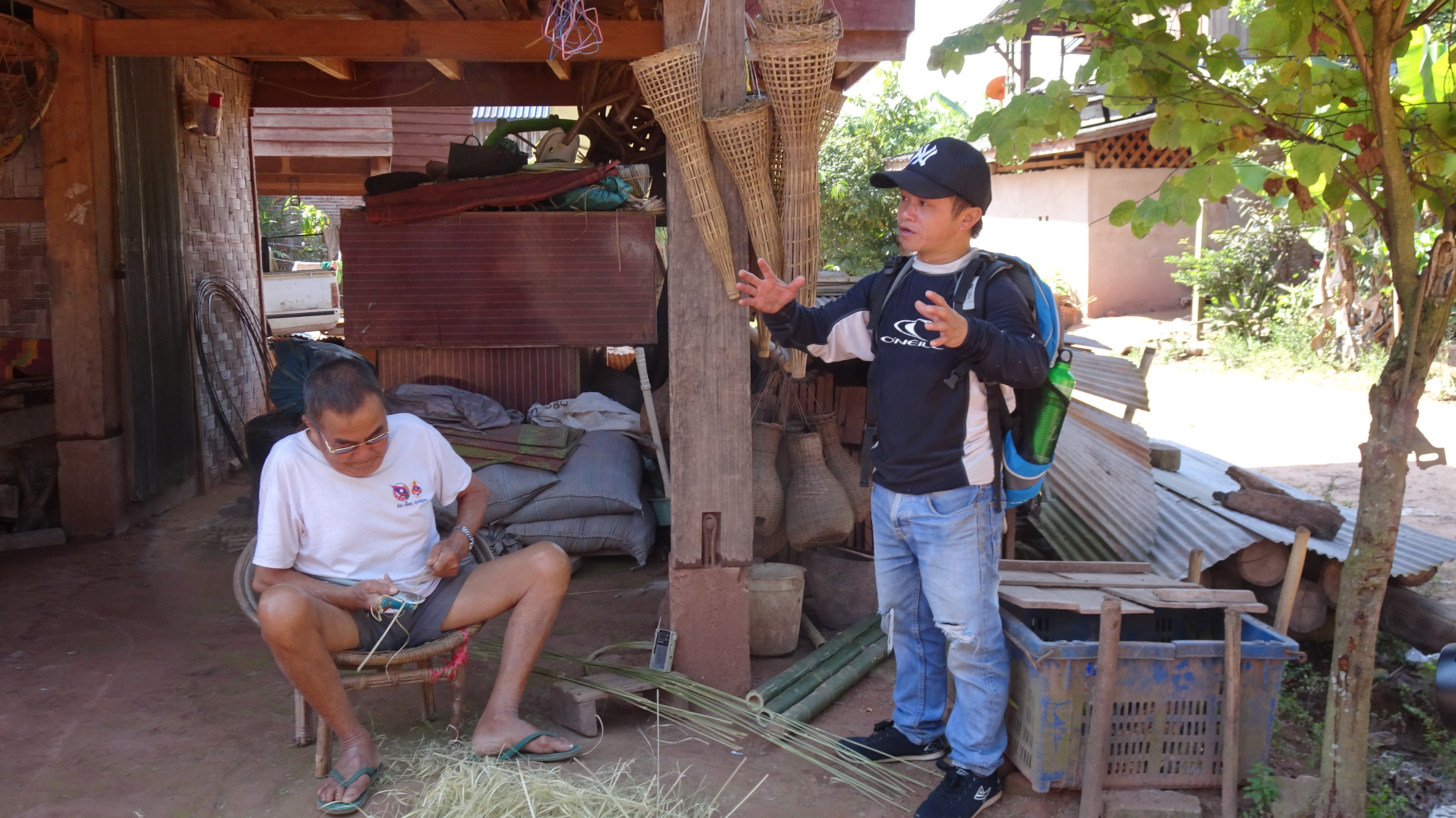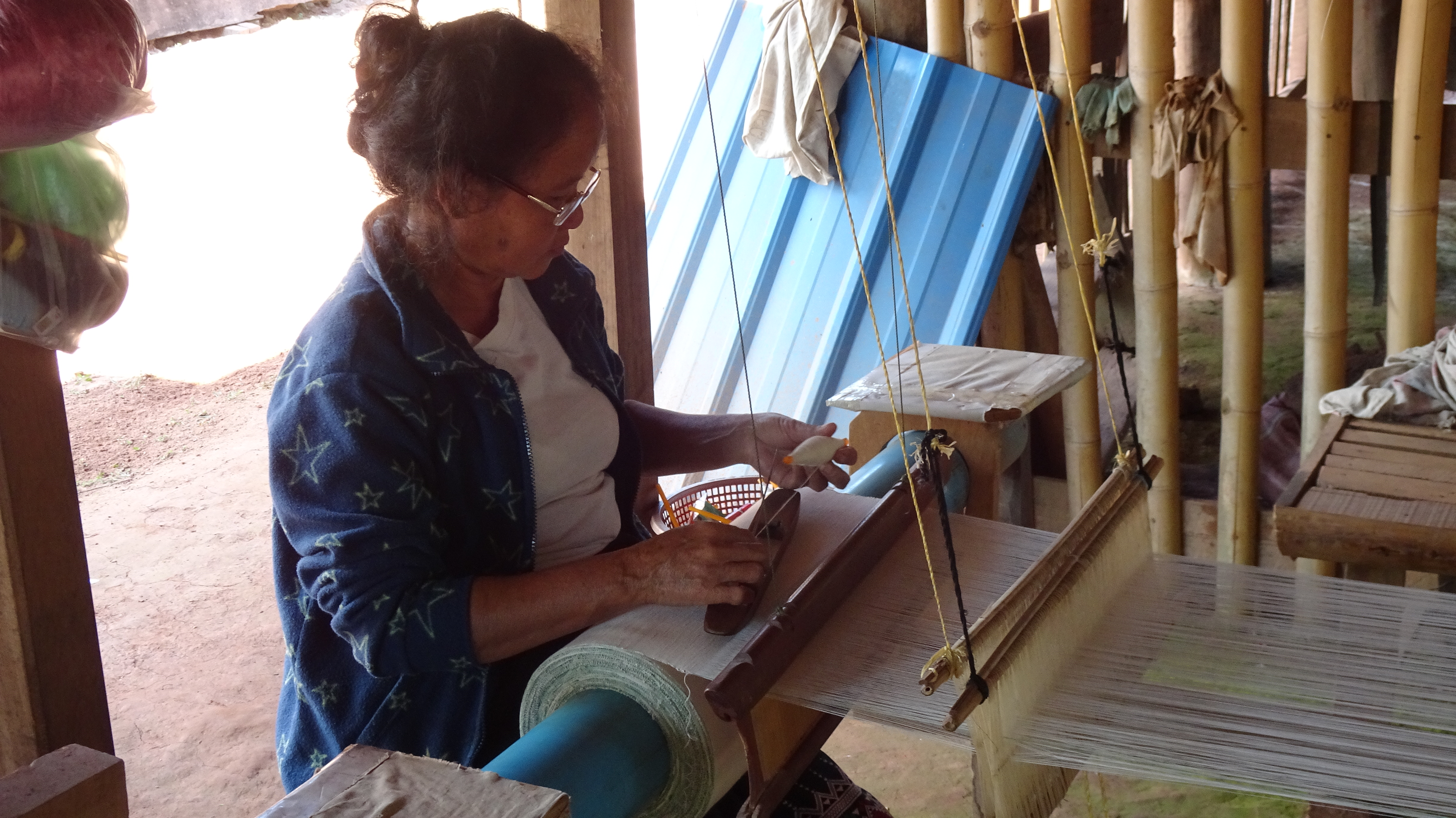 Vom Hügel, auf dem die Stupa steht, ist schon das Dorf Ban Nam Ngaen zu sehen. In ihm leben Familien der Tai Dam und der Tai Daeng. Diese sind keine gläubigen Buddhisten, sondern pflegen ihre Religion individuell in jedem Haus. Ink führt uns kreuz und quer durch die Gassen und Höfe. Wir können zusehen, wie die Frauen an einfachen Webstühlen wunderschöne Muster in Stoffe aus Seide und Baumwolle „zaubern“.