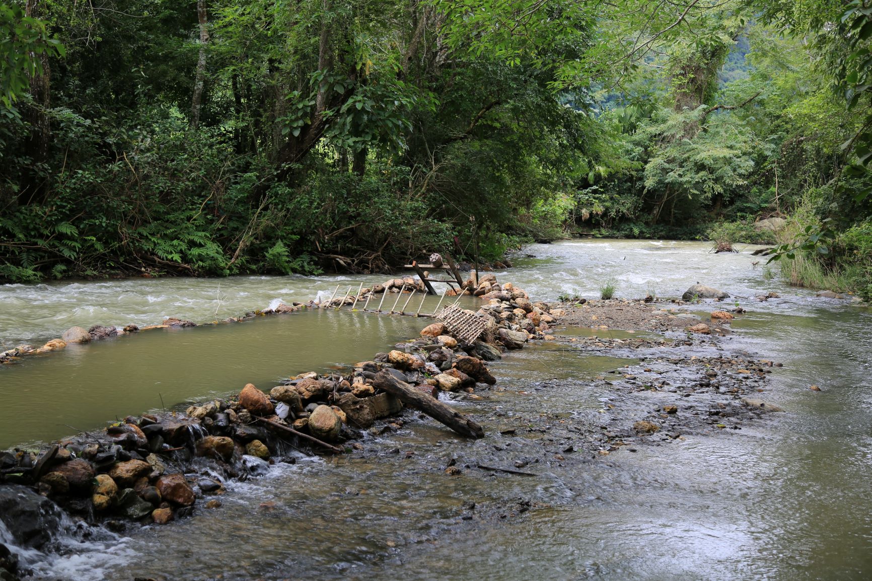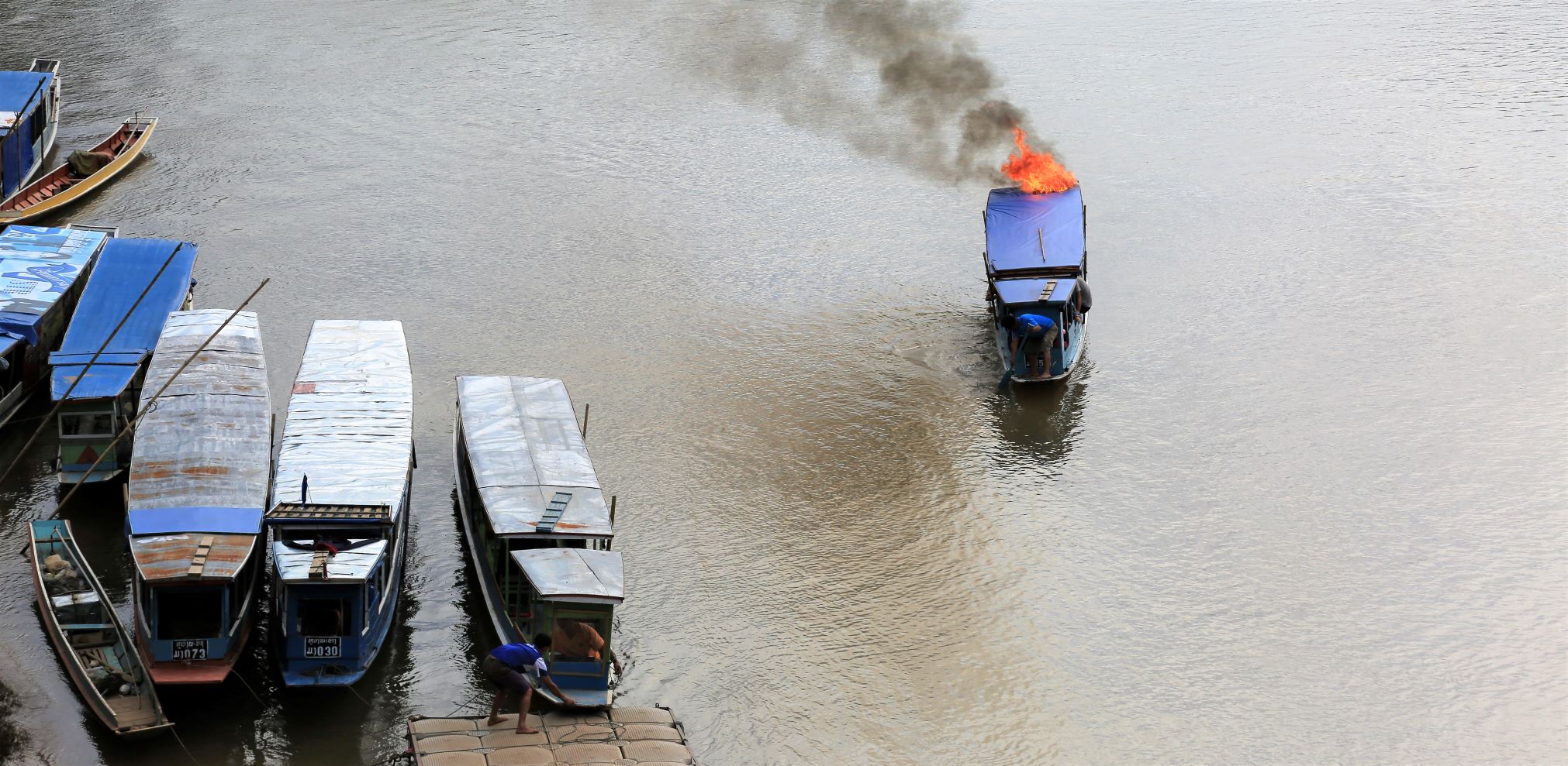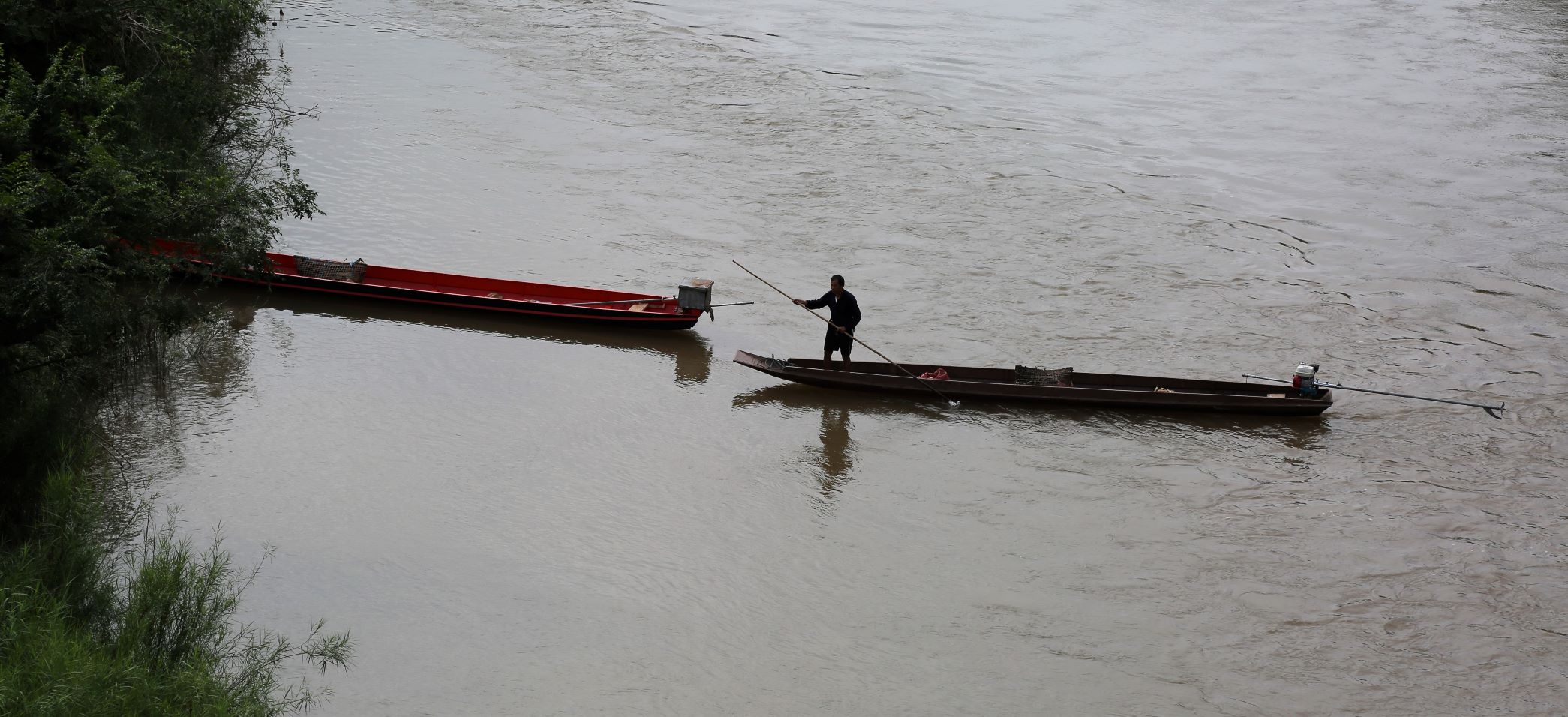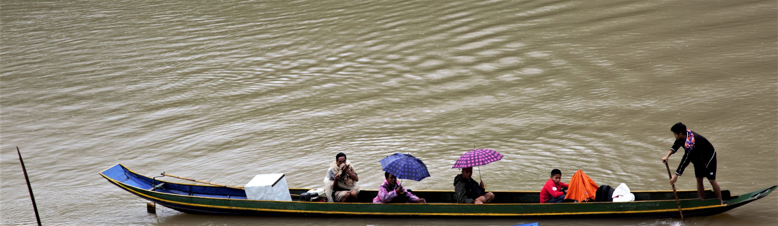 Die Wälder über den trüben, sedimentreichen Fluß, Nam Ou hängen in tiefen Wolken als wir am Vormittag unser Boot gen Muang Ngoy besteigen. Vorbei an kleinen abgelegenen Dörfern, steilen Reisfeldern, scheinbar endlosen Kautschukplantagen, Büffelherden die am Ufer grasen und badenden Kindern geht es in rasanter Fahrt bis zu einem neuen Stauseeprojekt in der Nähe des Dorfes Sopkhan. Fünf neue Staudämme werden in den nächsten Jahren am Nam Ou entstehen um den Hunger nach Elektrizität zu stillen, vor allem in den südlichen chinesischen Provinzen, die Hauptabnehmer des gewonnen Stromes. Die Geldgeber der Großprojekte kommen ebenfalls aus China, am Nam Ou investieren sie immerhin bis zu 85%.