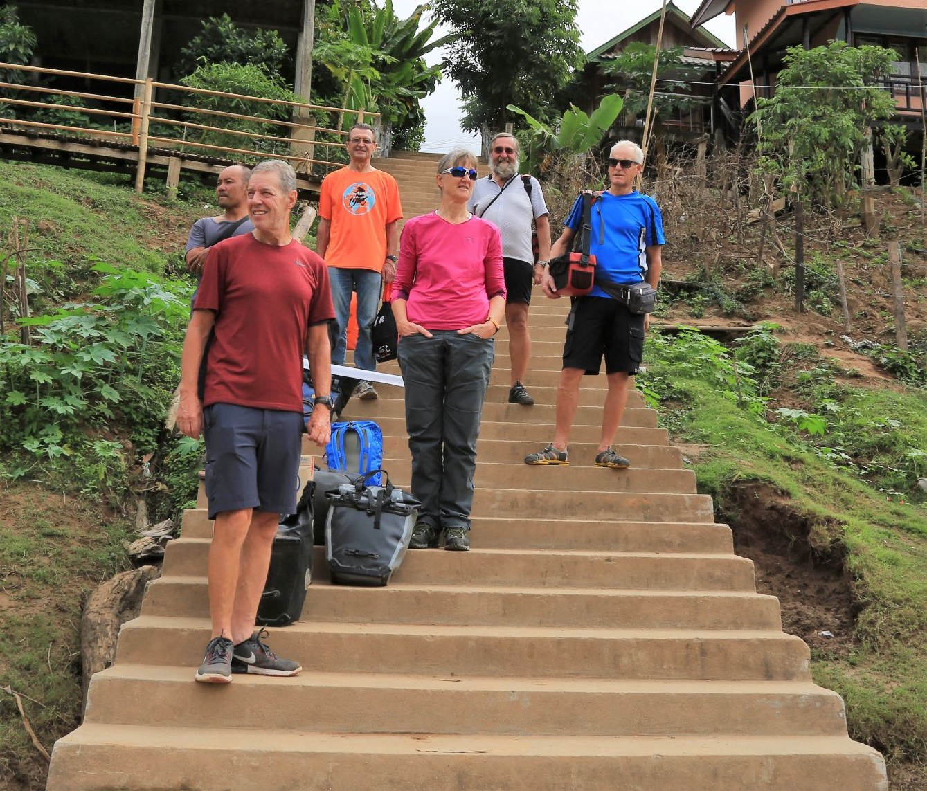 Erwartungsvoll stiegen wir die Treppenstufen von der Anlegestelle hinauf und waren also im nächsten laotischen „Hotspot“ angekommen.