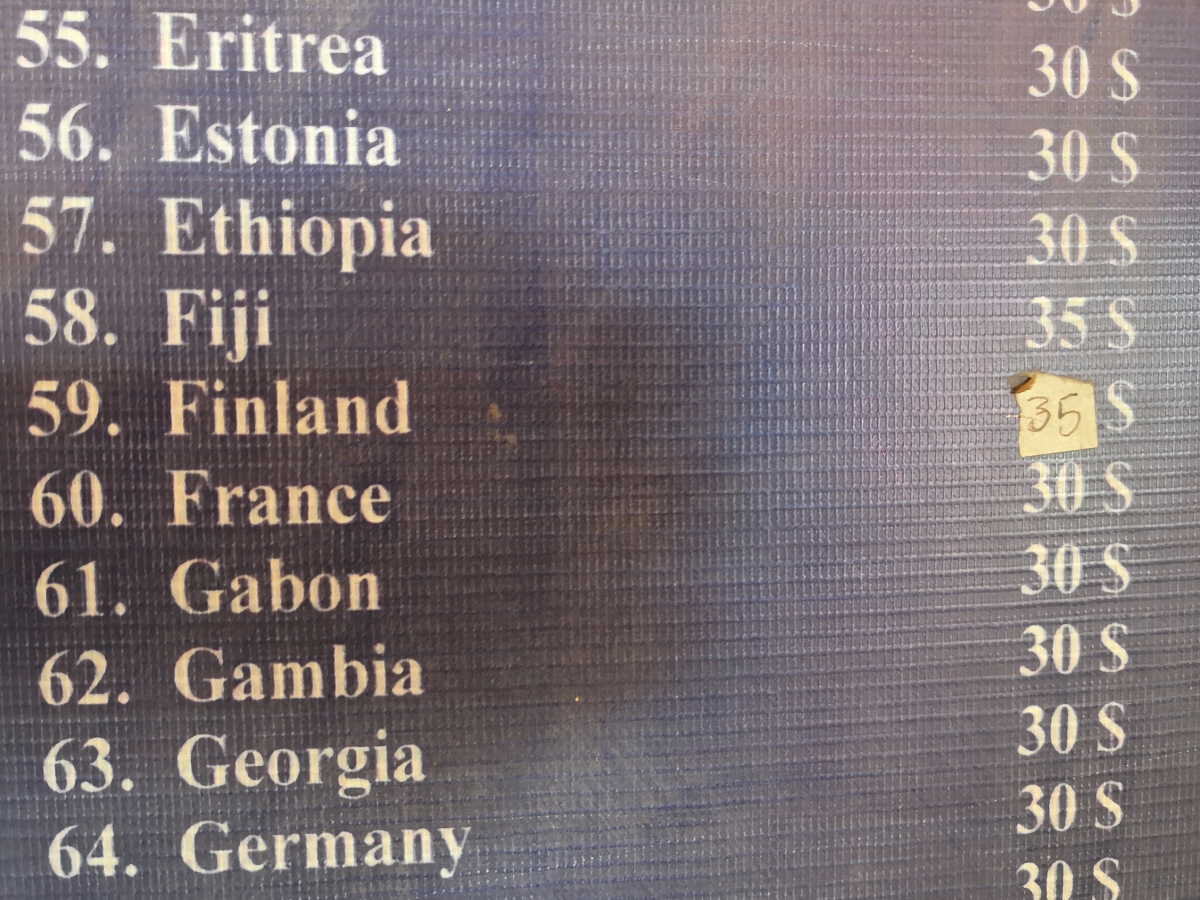 Nach gut fünf Kilometern ebbt dann der Staub ab und auch der Baustellenverkehr bleibt grenznah. Was wir allerdings nicht herausfinden konnten, ist, warum Menschen aus Fiji und Finnland 5 USD mehr für ein Visum bezahlen.